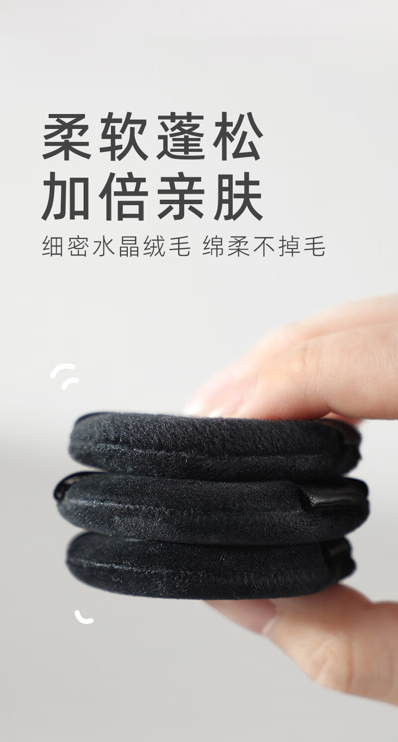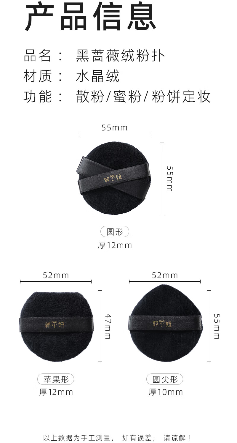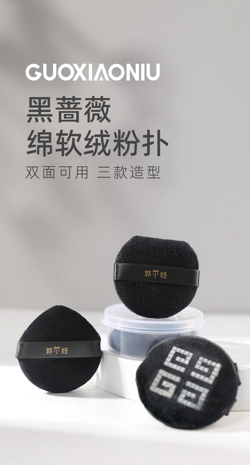 GUOXIAONIU郭小妞黑蔷薇高密植绒粉扑散粉干用面部修容定妆化妆海绵美妆工具 黑蔷薇植绒粉扑 3枚 圆尖形