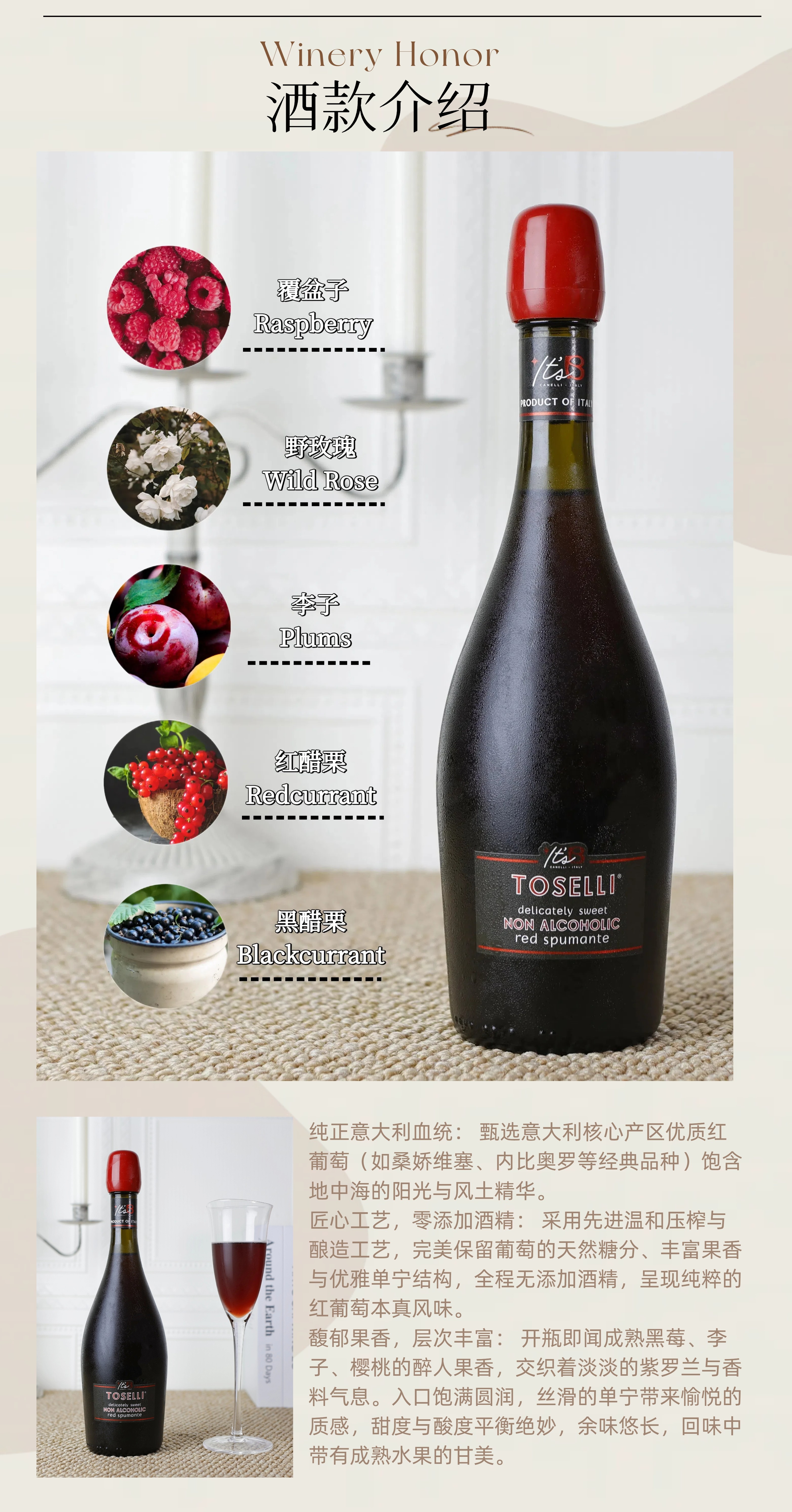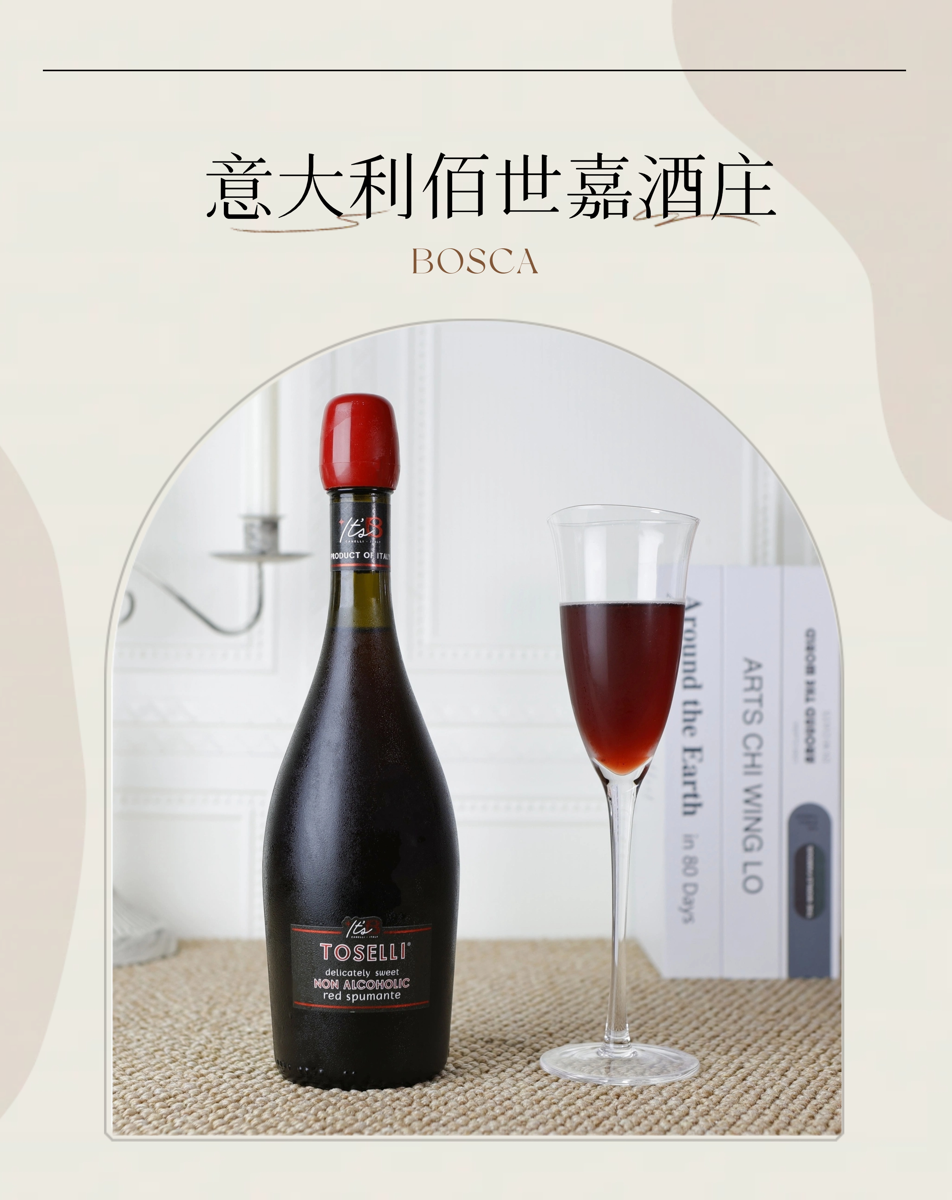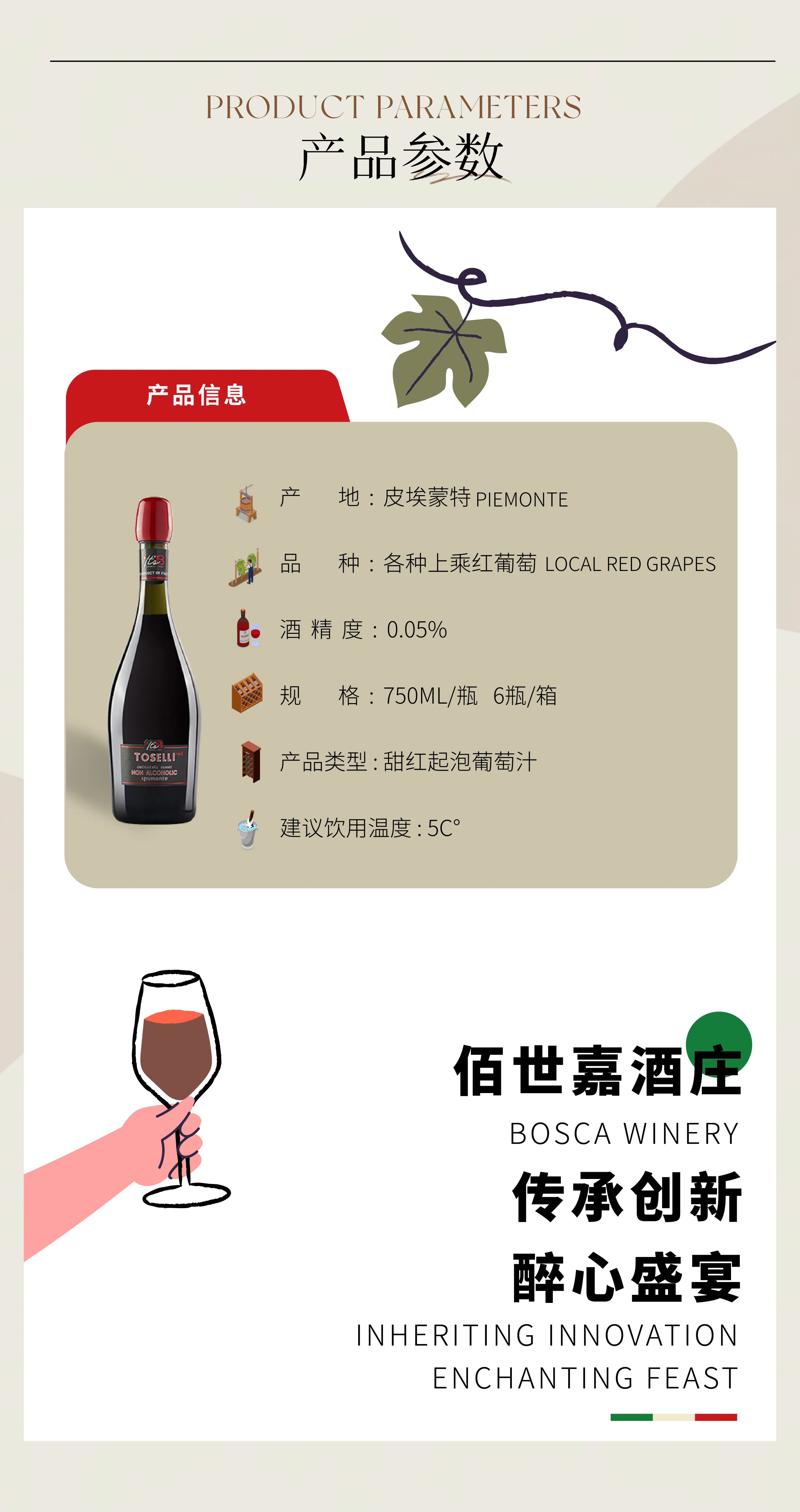 BOSCA佰世嘉桃丝丽零度无醇起泡意大利原装进口葡萄汁甜红起泡酒750ml 【送双支皮礼袋】桃丽丝红750ml*2瓶