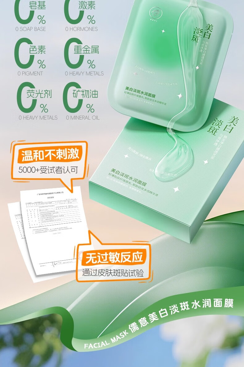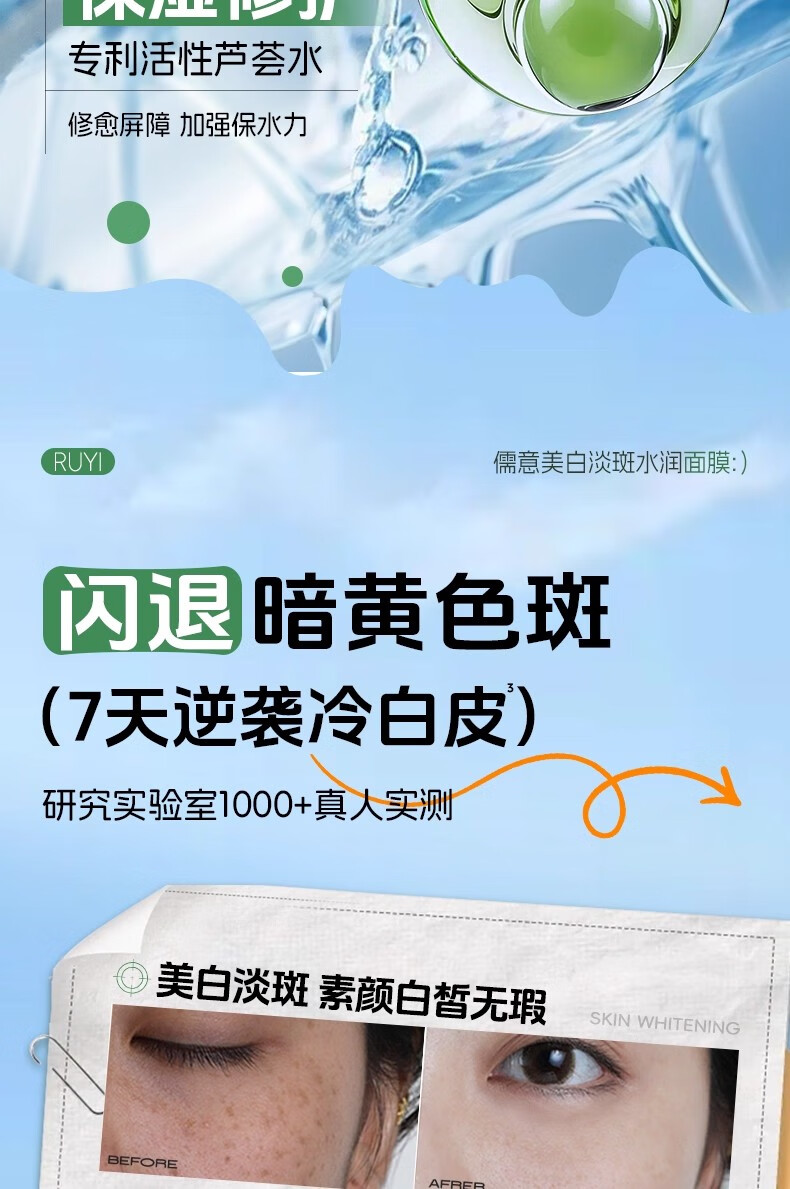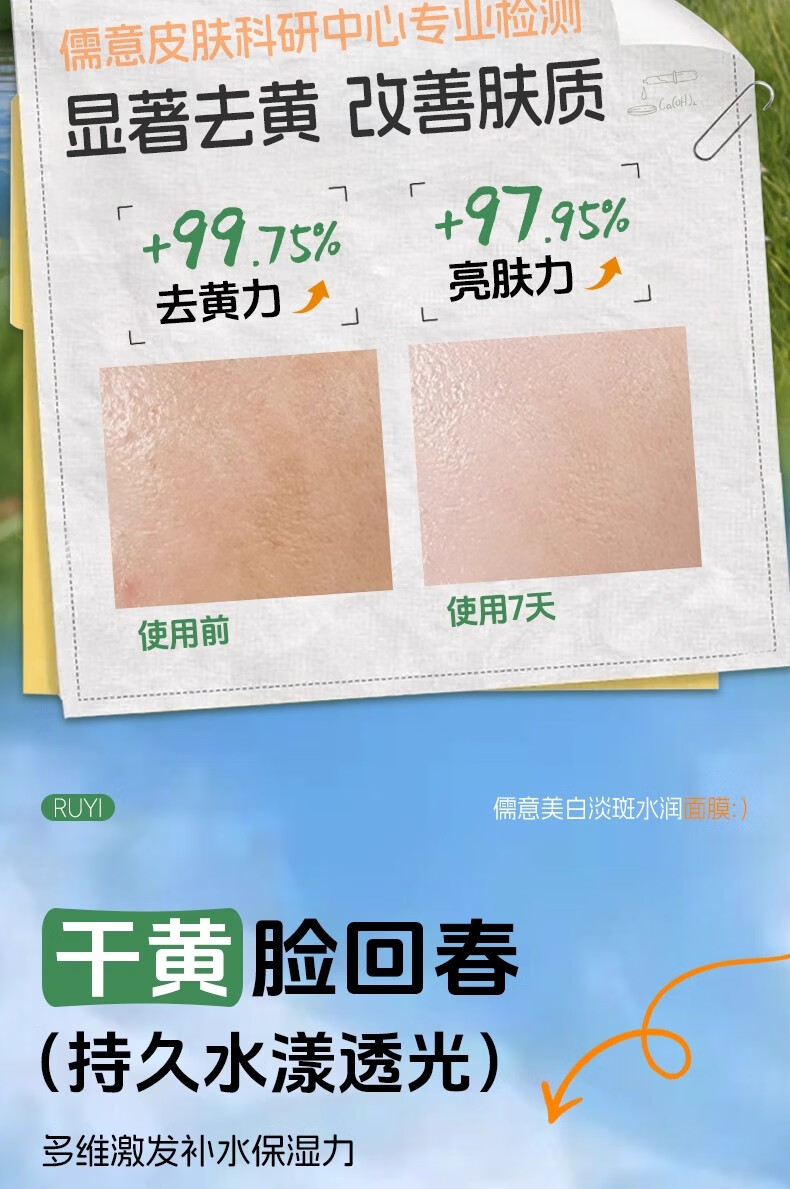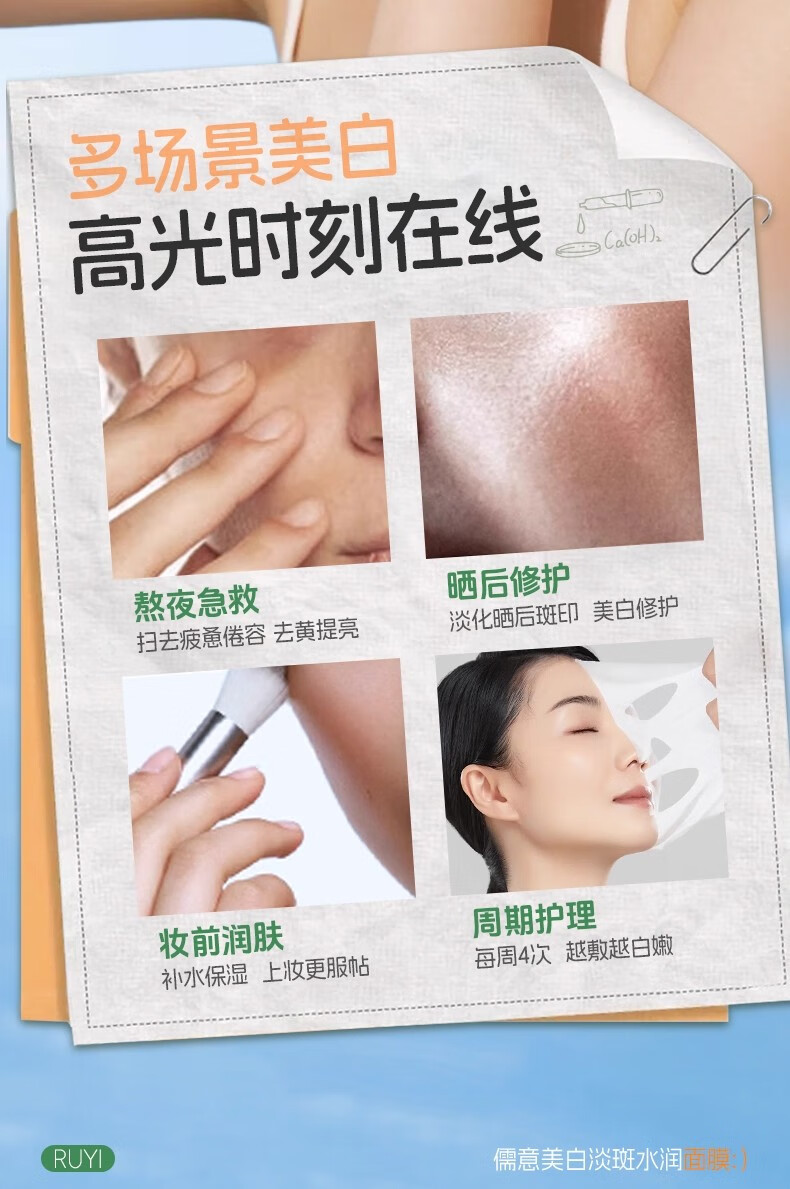 儒意面膜美白淡斑补水去黄提亮肤色控油毛孔收缩女明星推荐新年礼物 1片【美白专用 持证美白】