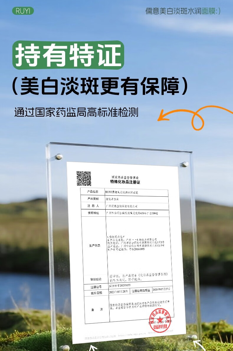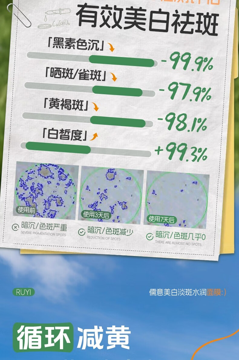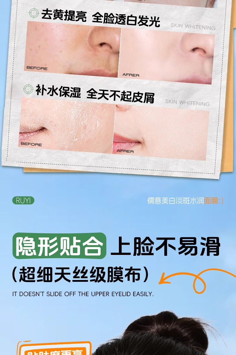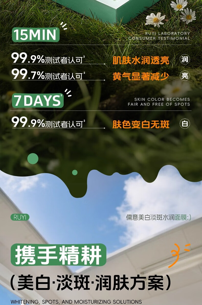 儒意面膜美白淡斑补水去黄提亮肤色控油毛孔收缩女明星推荐新年礼物 1片【美白专用 持证美白】