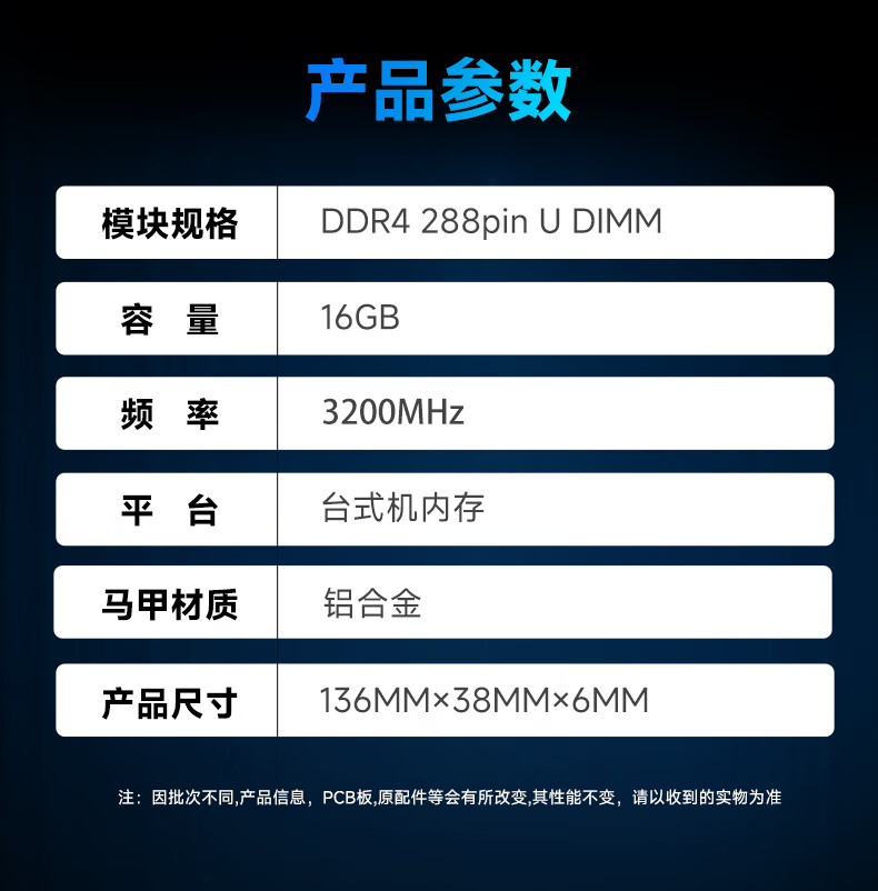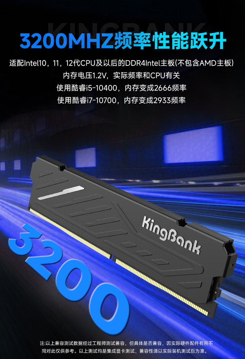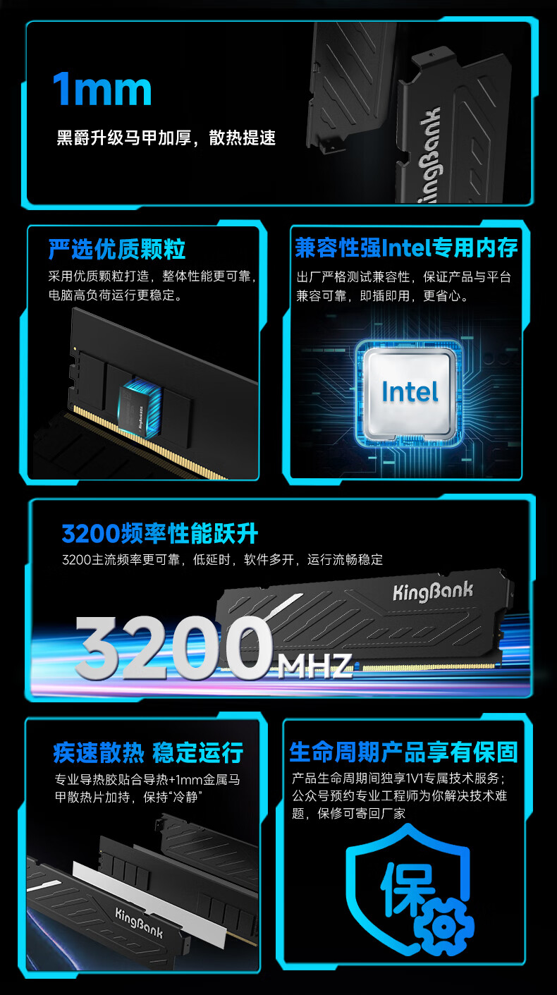 金百达(KINGBANK)16GB DDR4 3200 台式机内存条 intel专用条 黑爵
