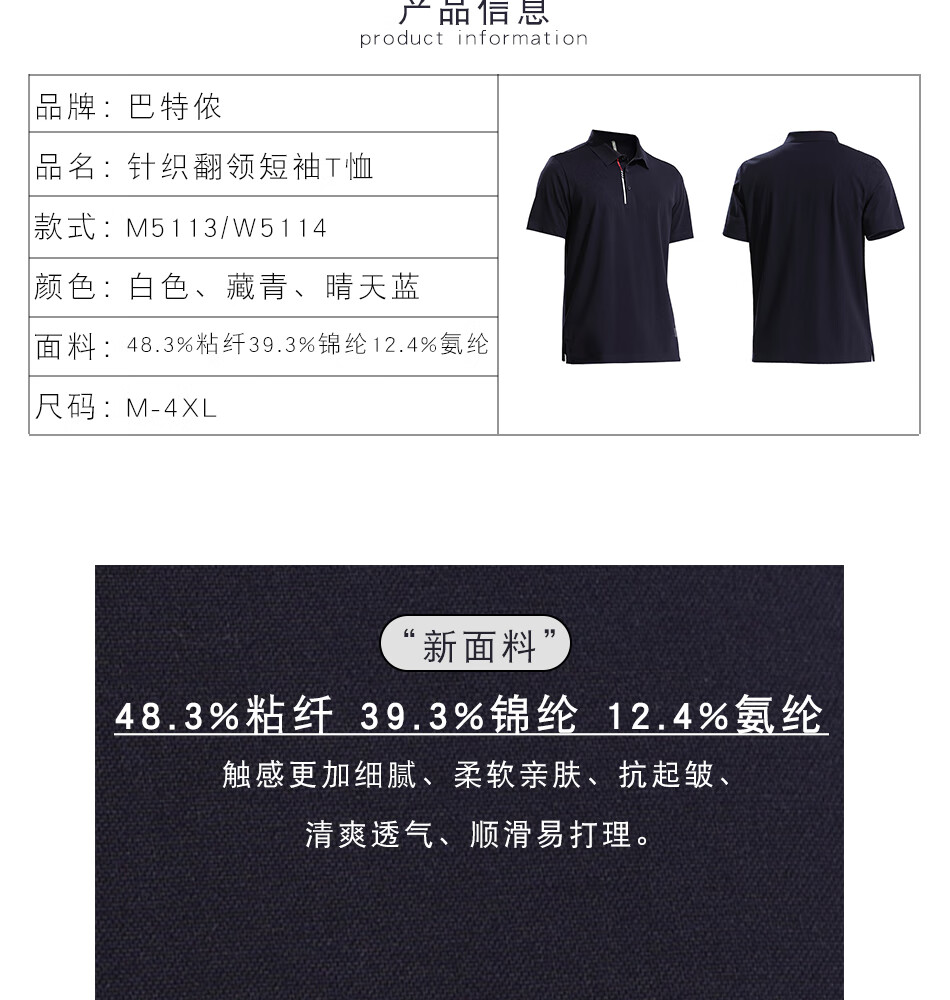 巴特侬运动针织翻领短袖T恤男女夏季运动上衣M5113/W5114