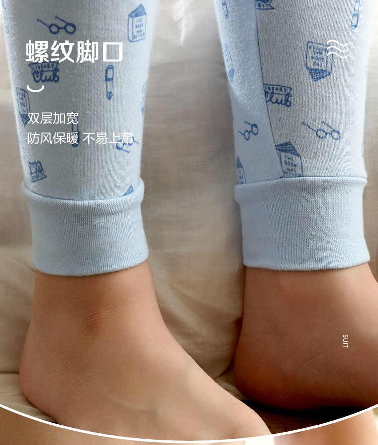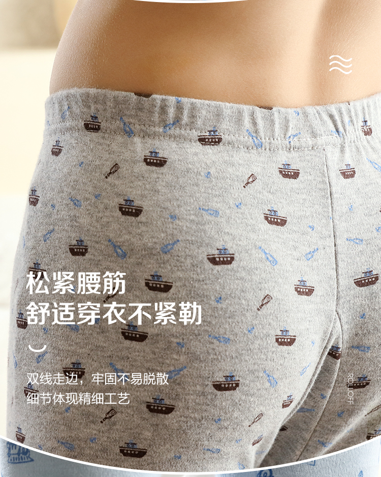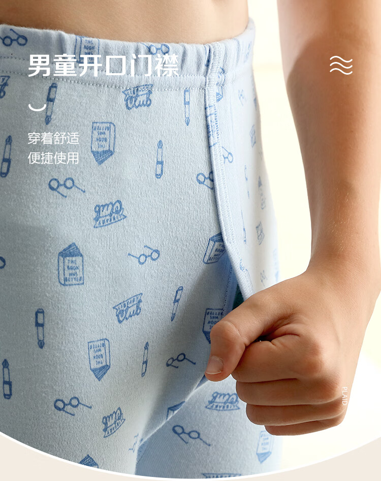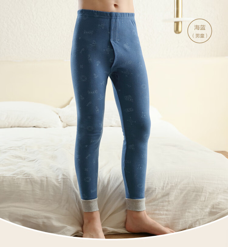 红豆居家(Hodohome)儿童秋裤纯棉男童棉毛裤中大童男孩保暖裤衬裤睡裤199海蓝160