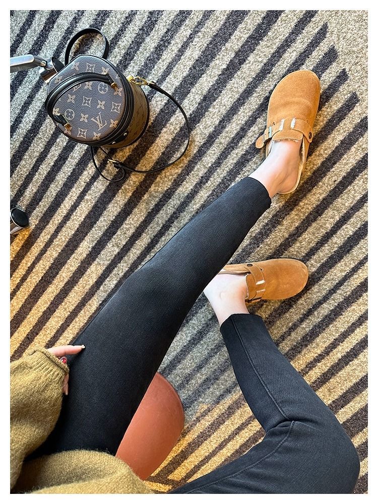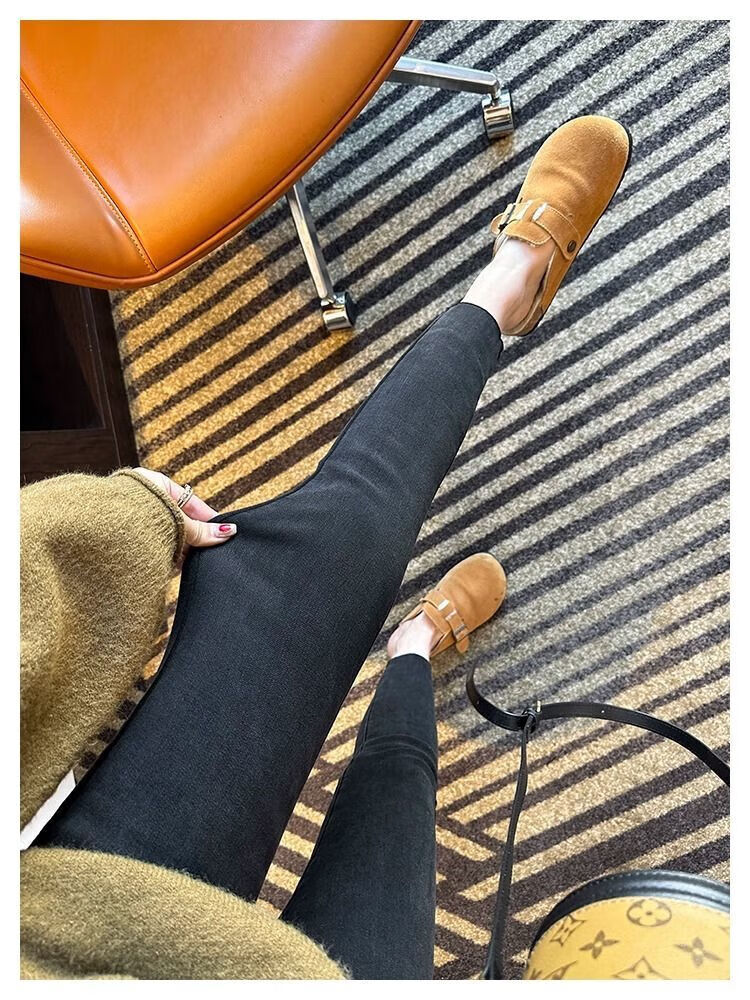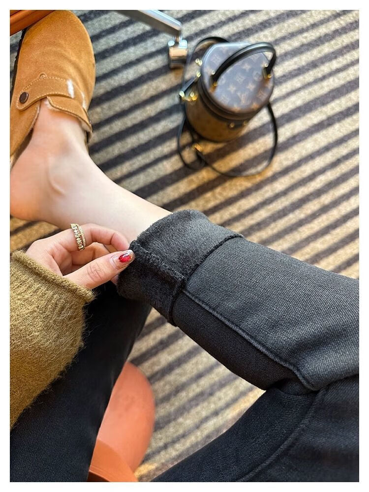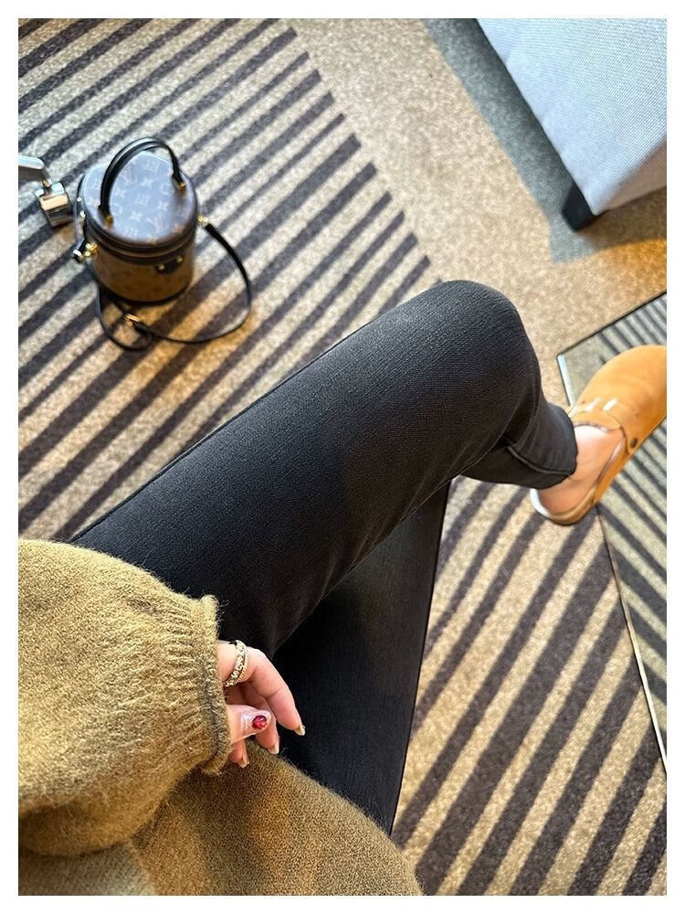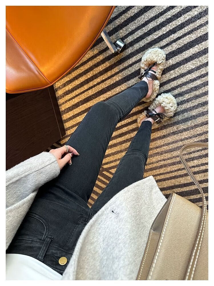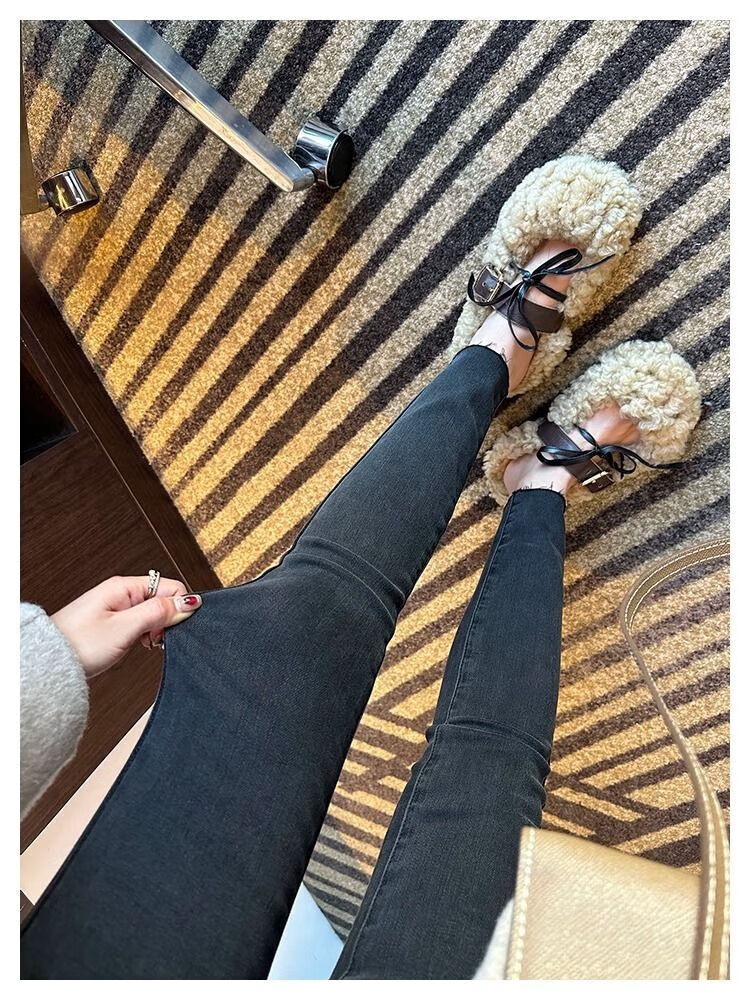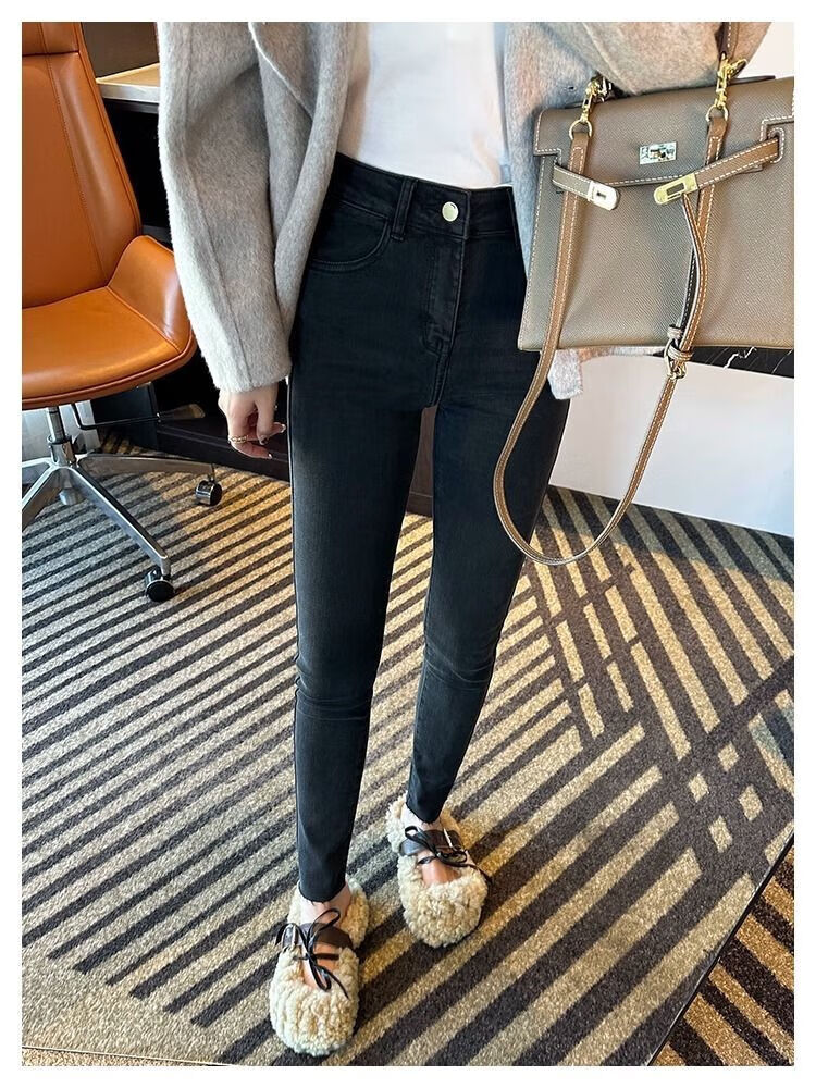 苜戈小脚牛仔裤女2025秋季修身弹力加绒高腰显瘦修身铅笔裤子冬季 黑色(八分单裤) 25 建议75-85斤