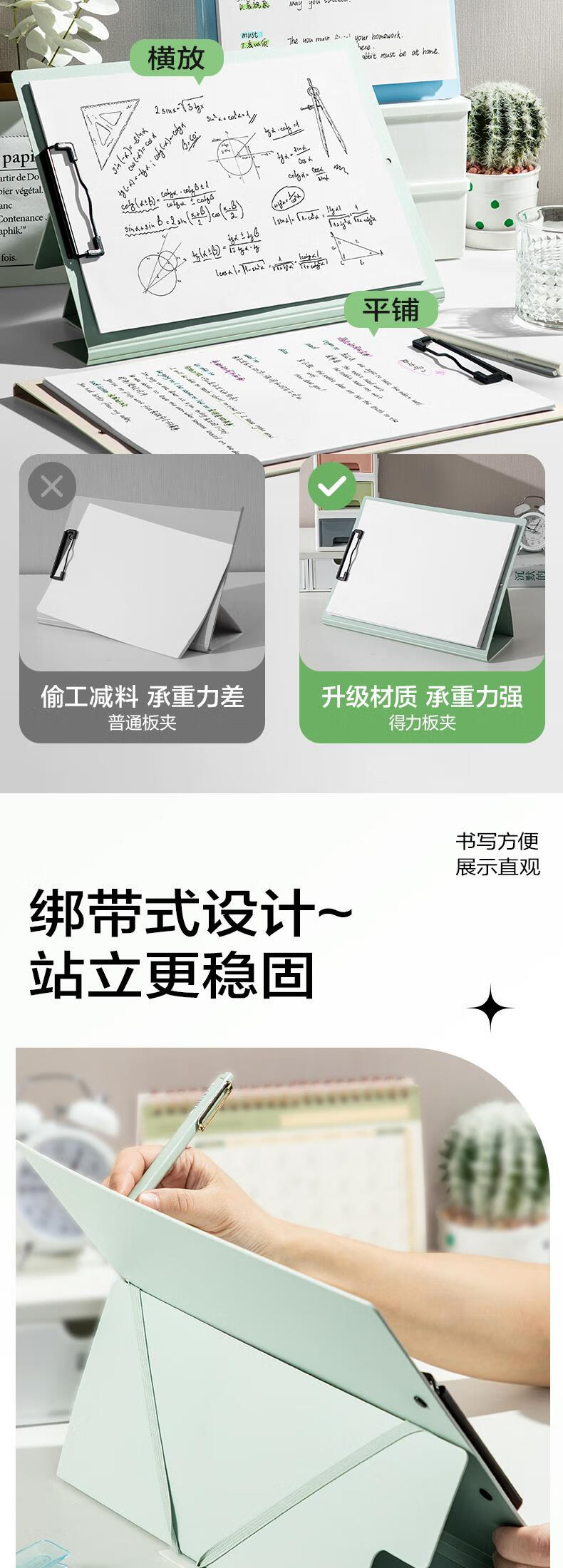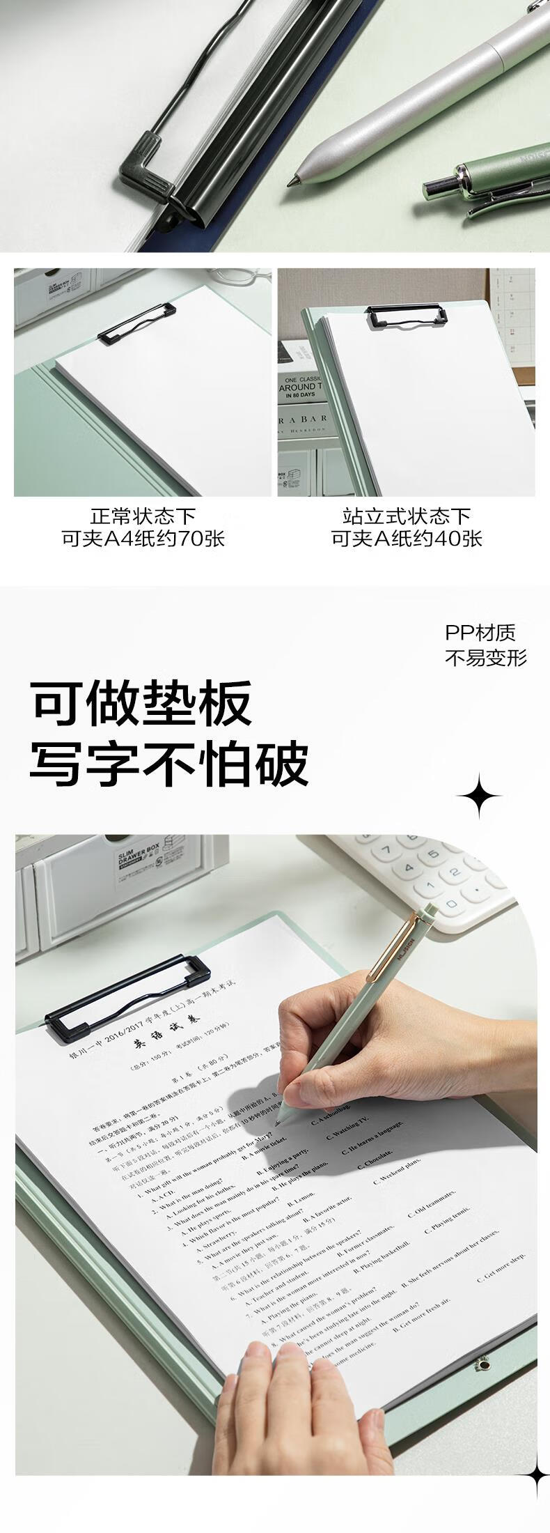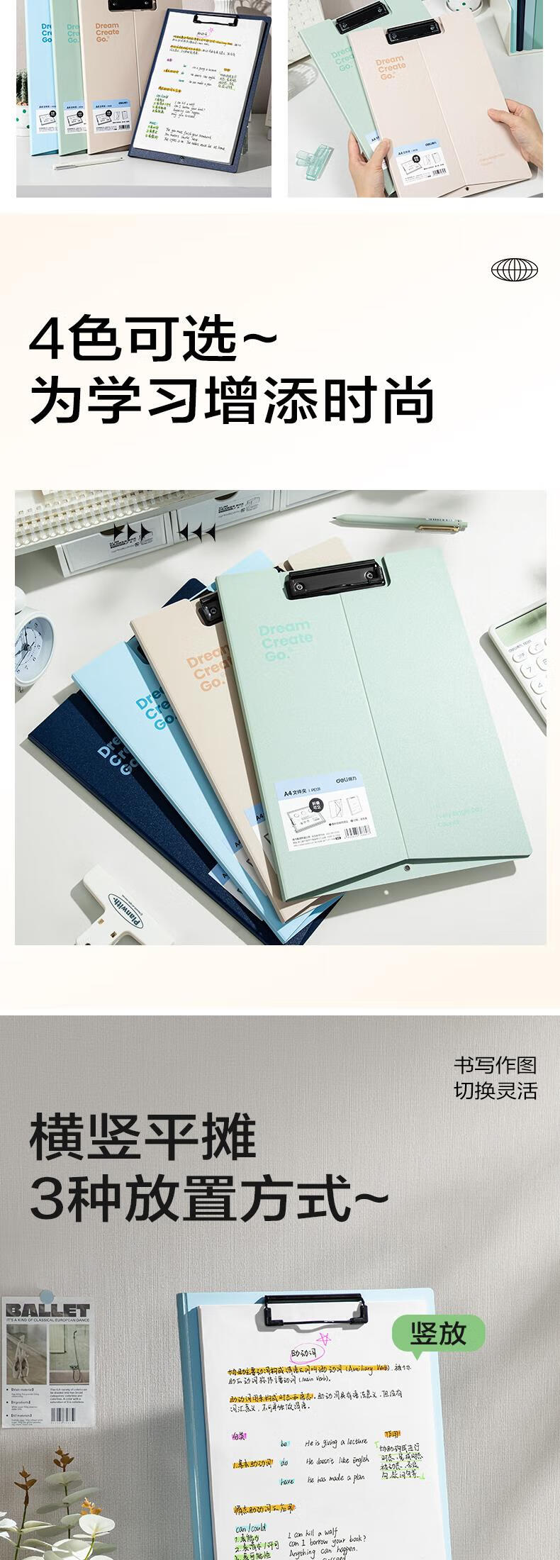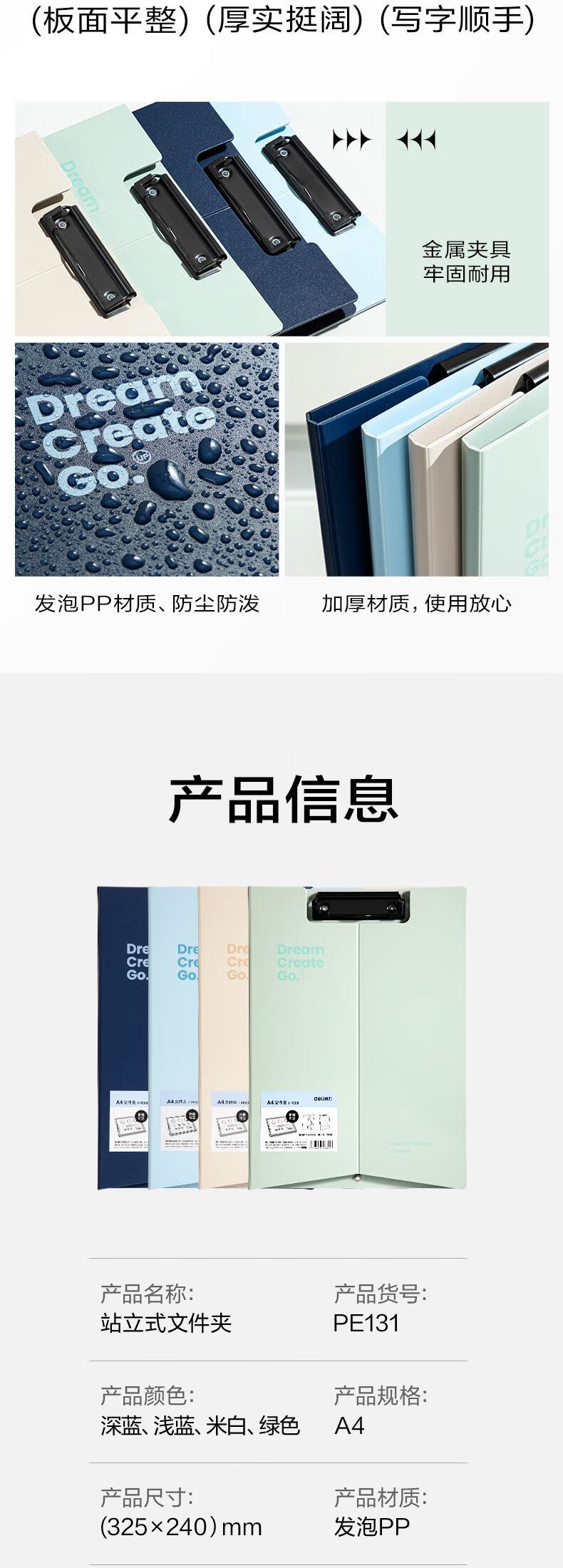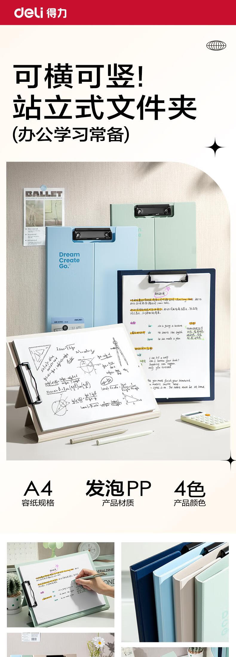 得力(deli)A4站立式文件夹 书写板夹垫板朗诵写字硬板夹 试卷资料收纳夹考试专用 学生办公用品PE131浅蓝色