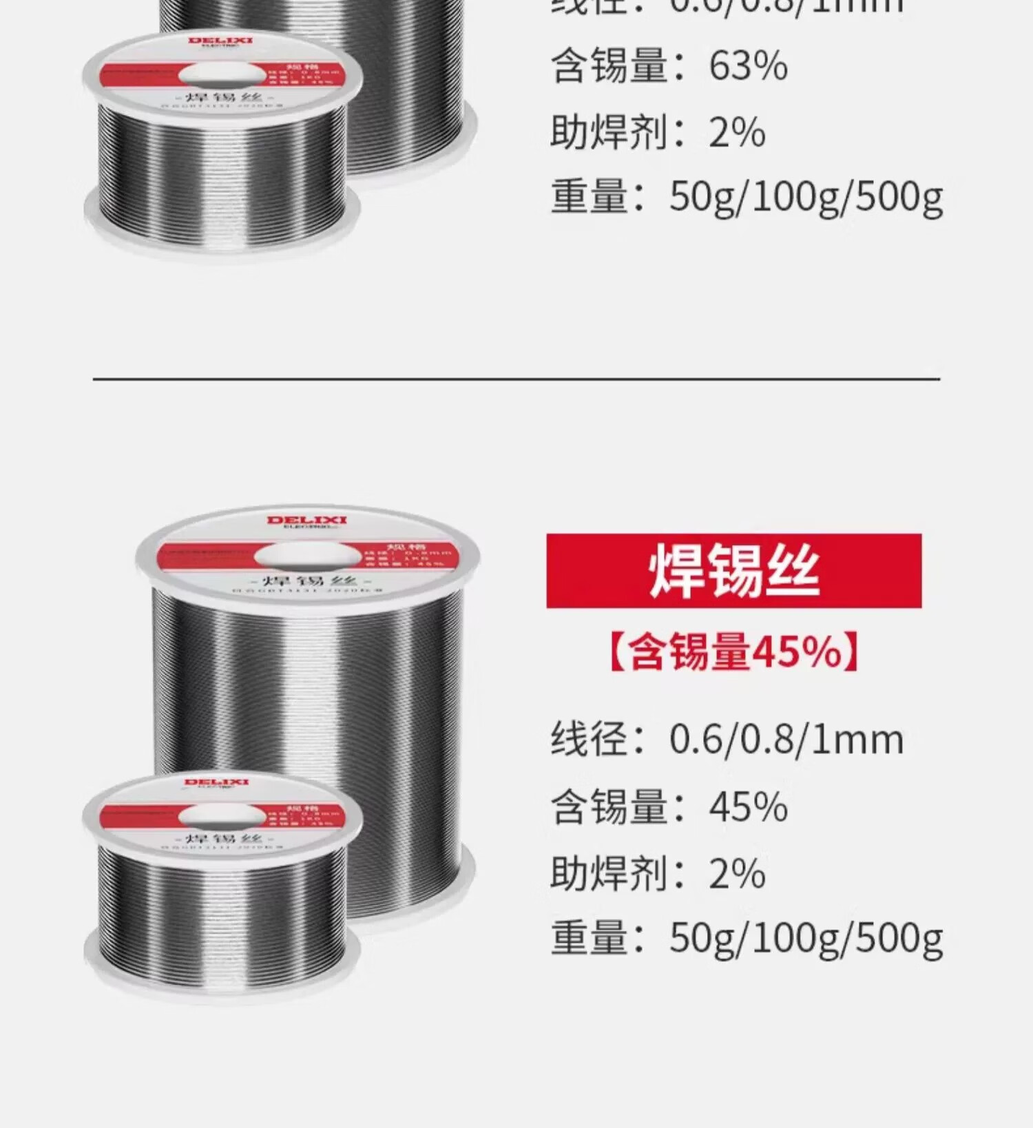 德力西焊锡丝高纯度带松香锡条焊丝锡线打火机低温环保锡丝