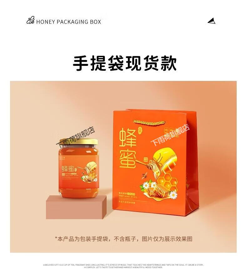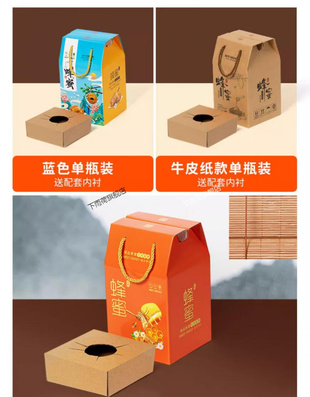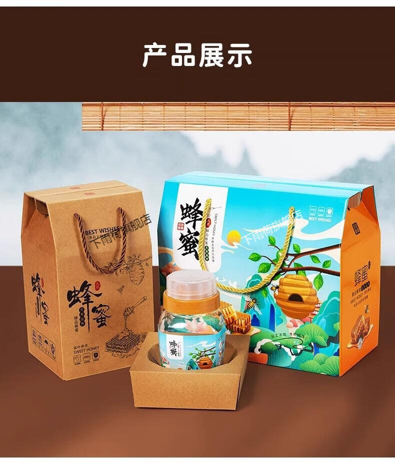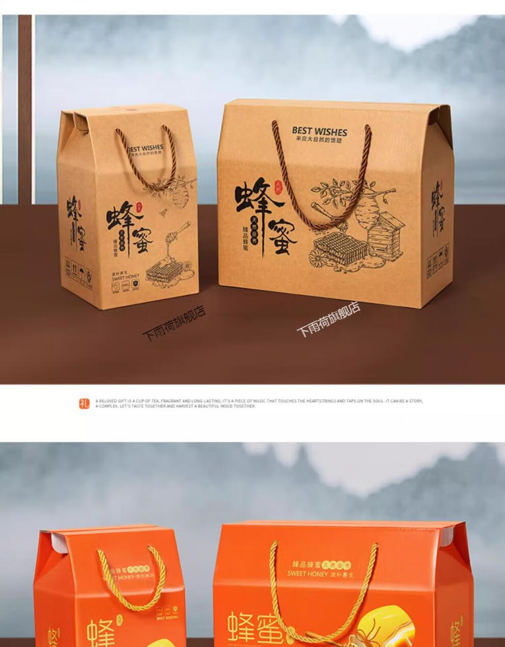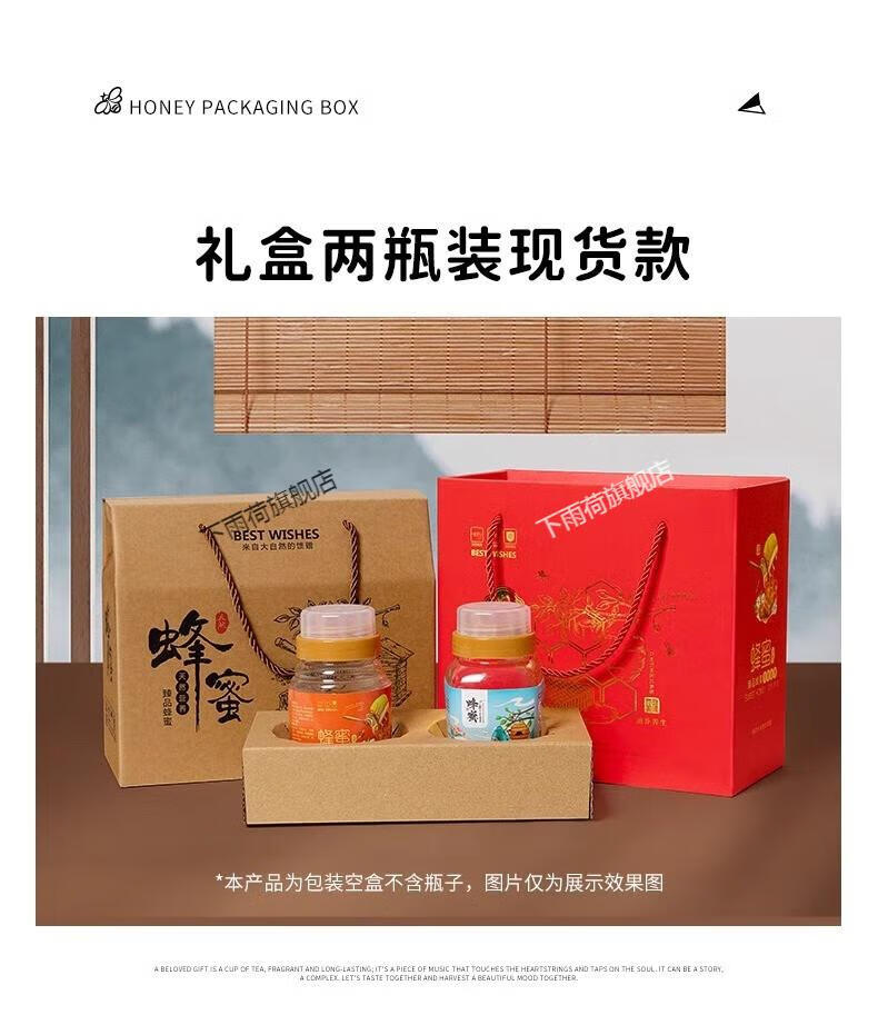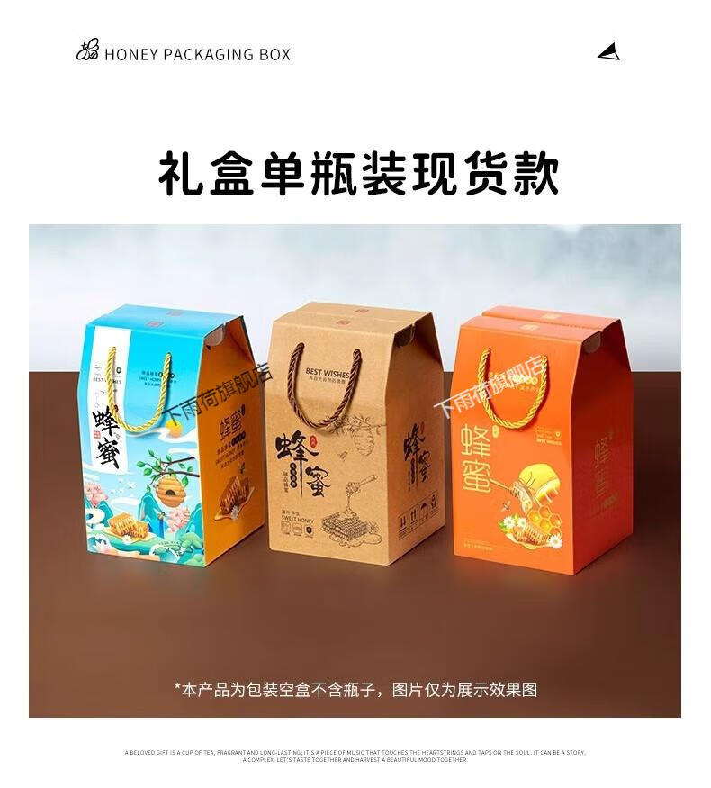 下雨荷 蜂蜜包装盒空盒2-4斤装野生土蜂蜜手提袋高档礼品盒外包装盒定制 水印牛皮-单瓶装礼盒 1个空盒(单款礼盒5个起售)