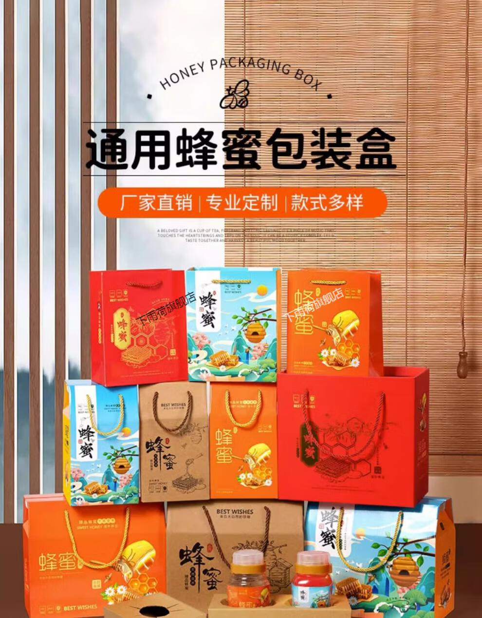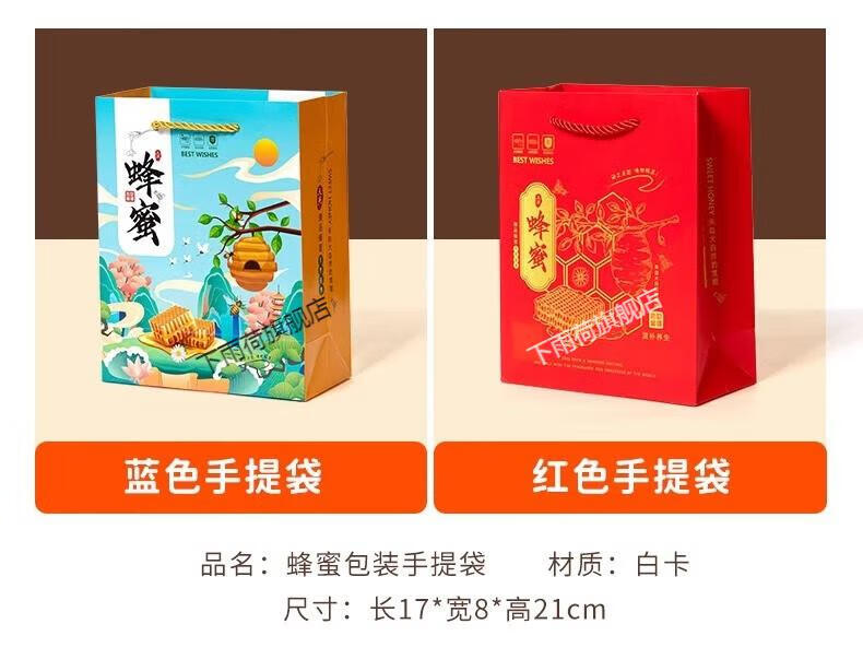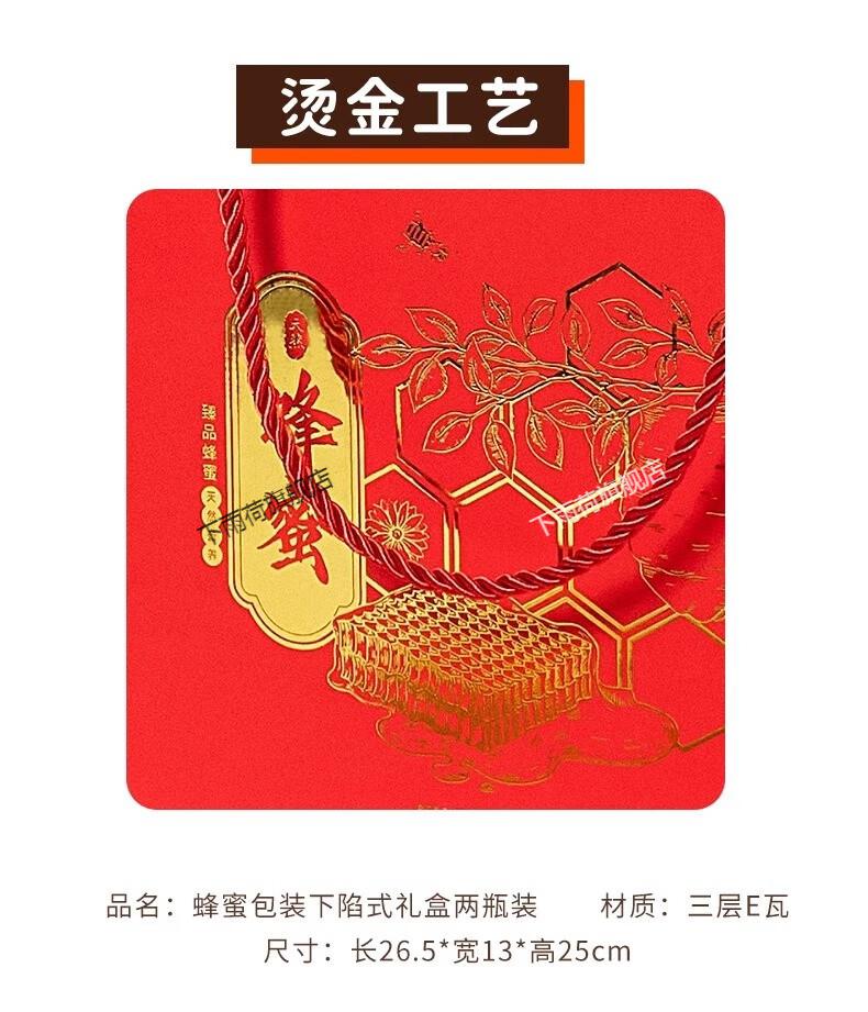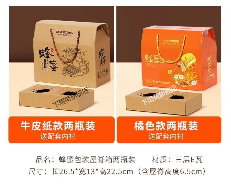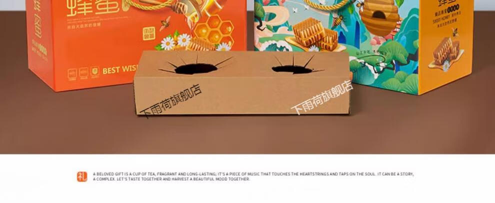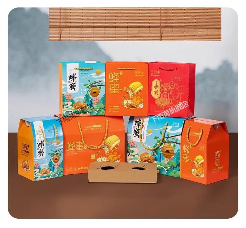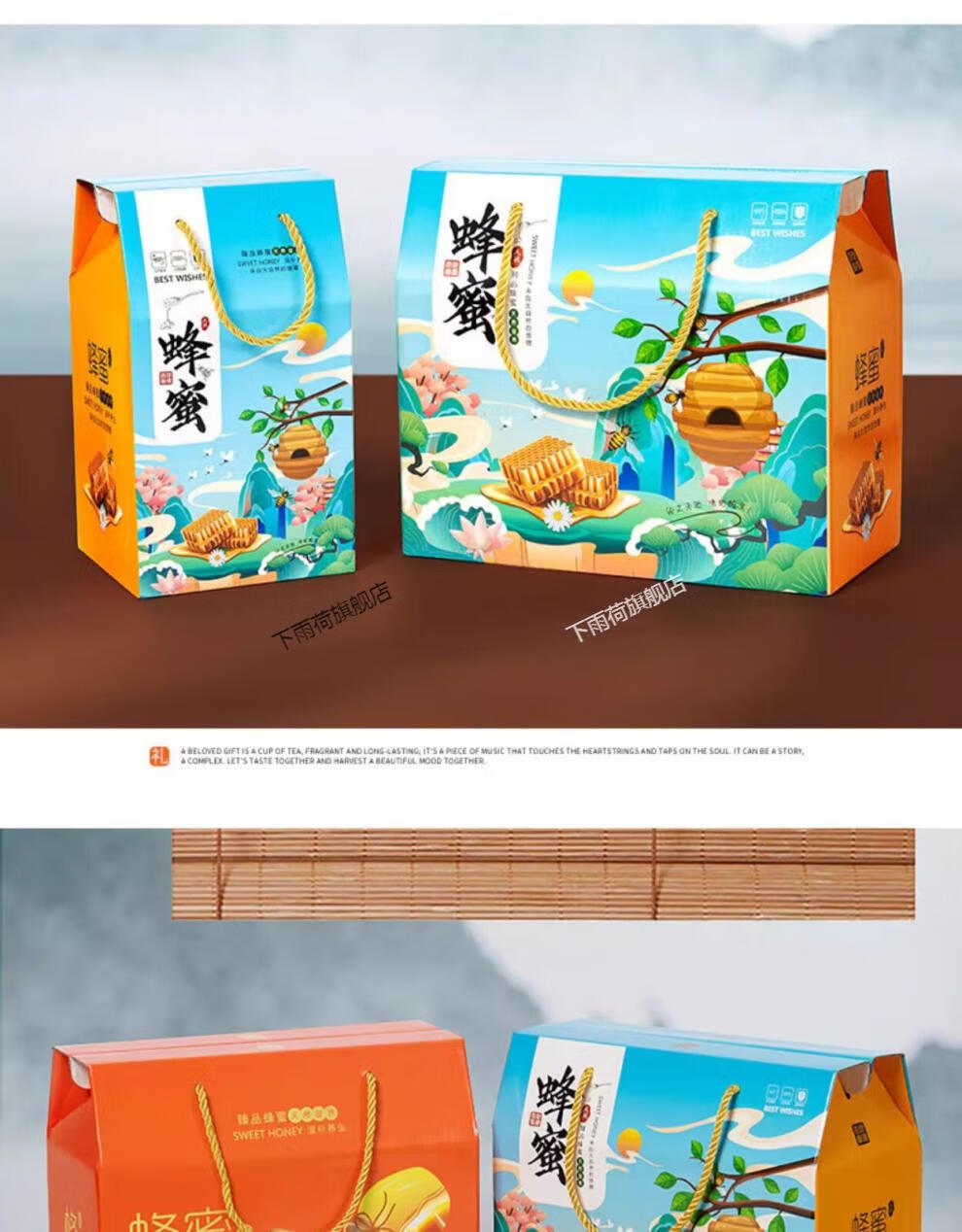 下雨荷 蜂蜜包装盒空盒2-4斤装野生土蜂蜜手提袋高档礼品盒外包装盒定制 水印牛皮-单瓶装礼盒 1个空盒(单款礼盒5个起售)