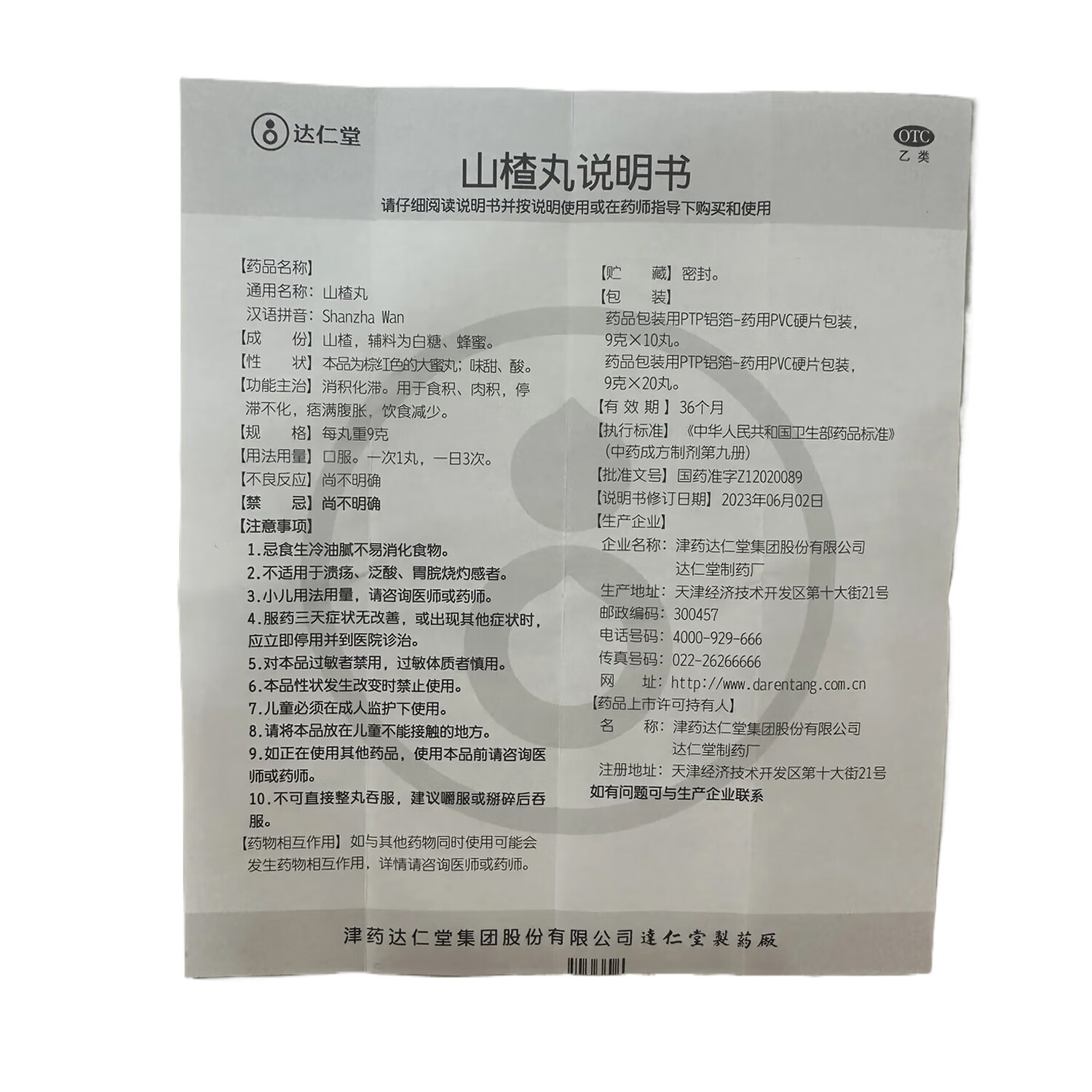 达仁堂 山楂丸 9g*10丸 肠胃消化用药 消积化滞 用于食积肉积停滞不化痞满腹胀饮食减少消化不良