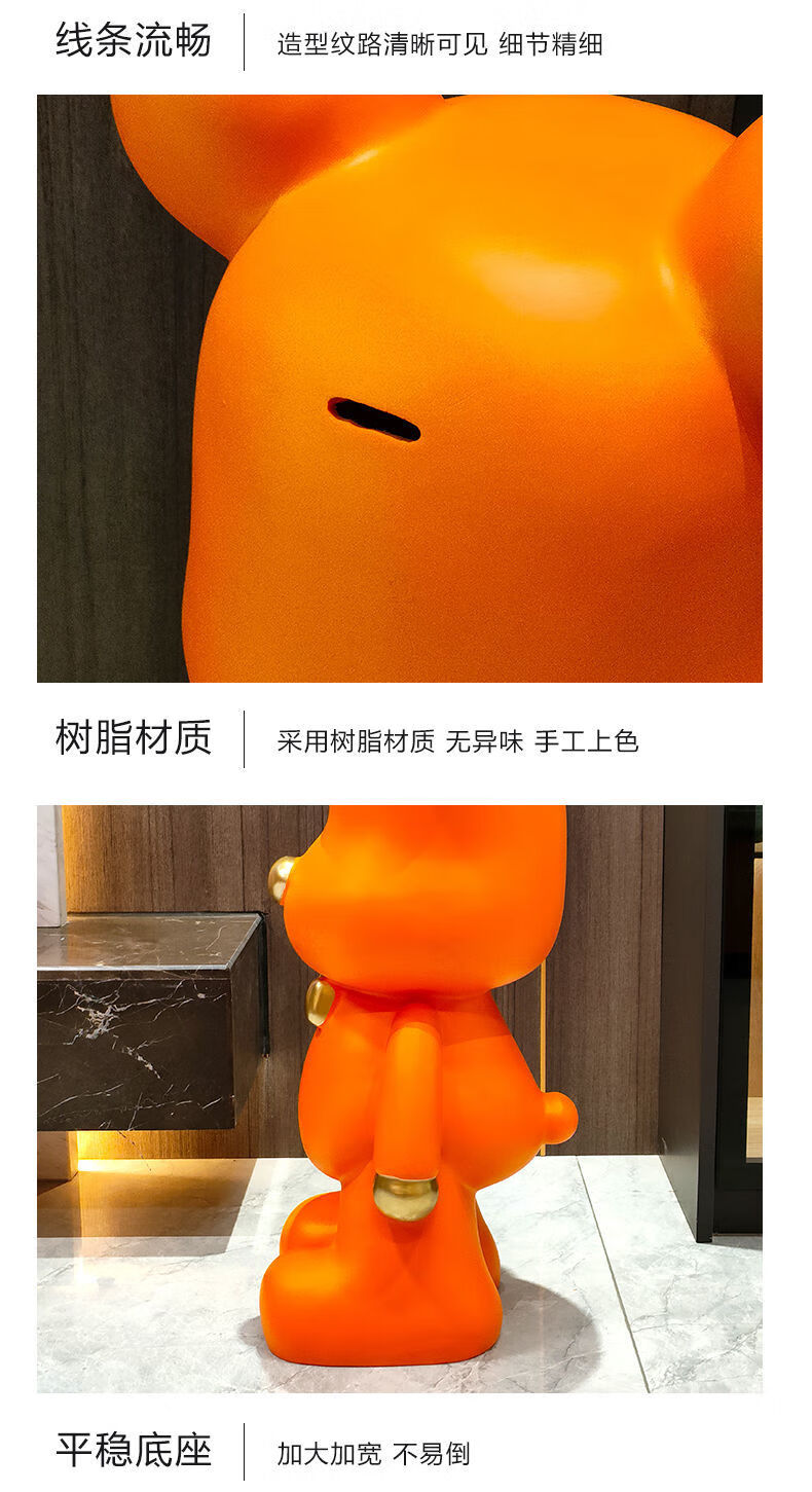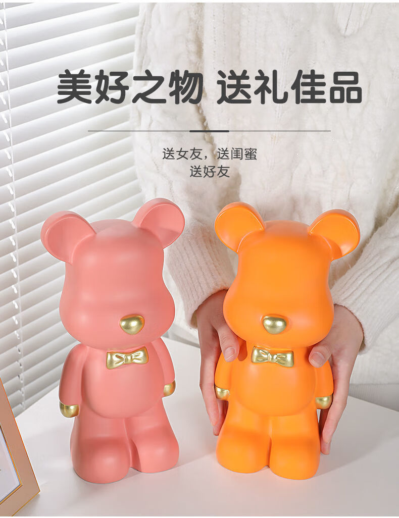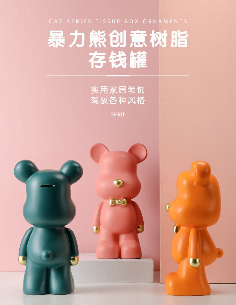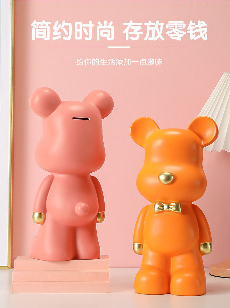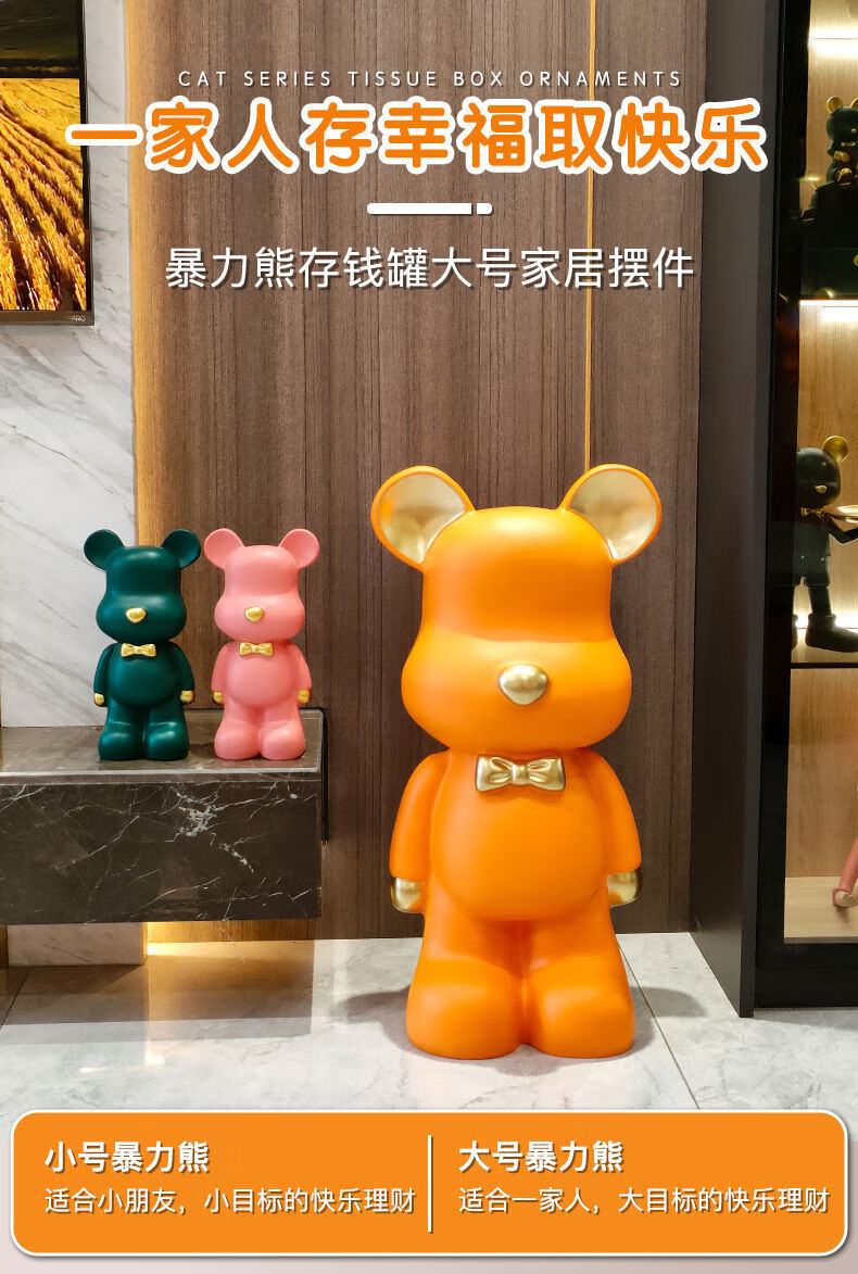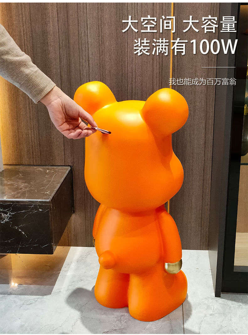 维诺亚暴力熊存钱罐只进不出2025年新款客厅创意大号落地儿童女孩摆件 38厘米橙色可取