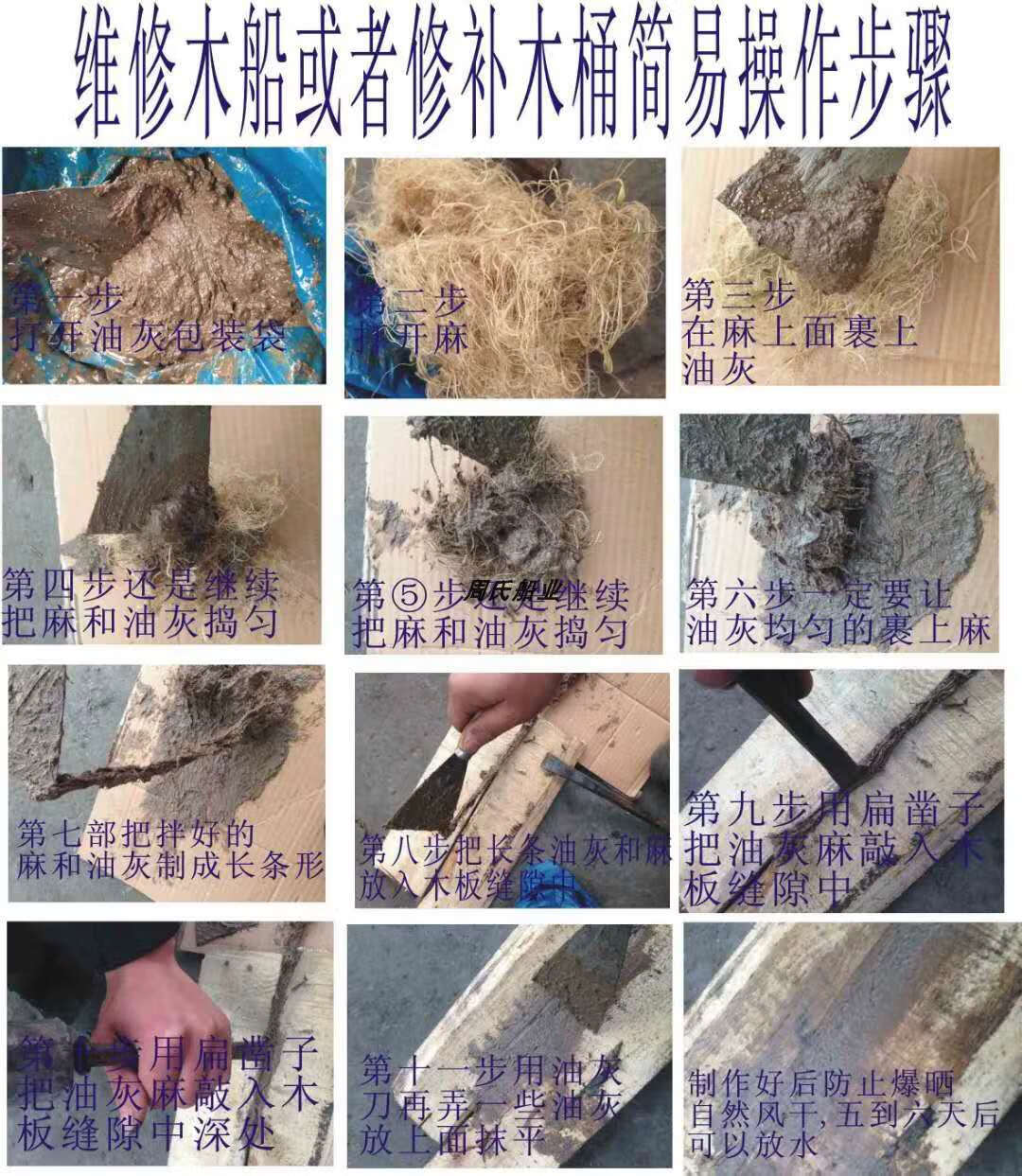 接运猫修船桐油灰加工船灰油灰木船专用油灰油腻子木板水泥补缝好帮手 桐油灰0点5斤配麻5g
