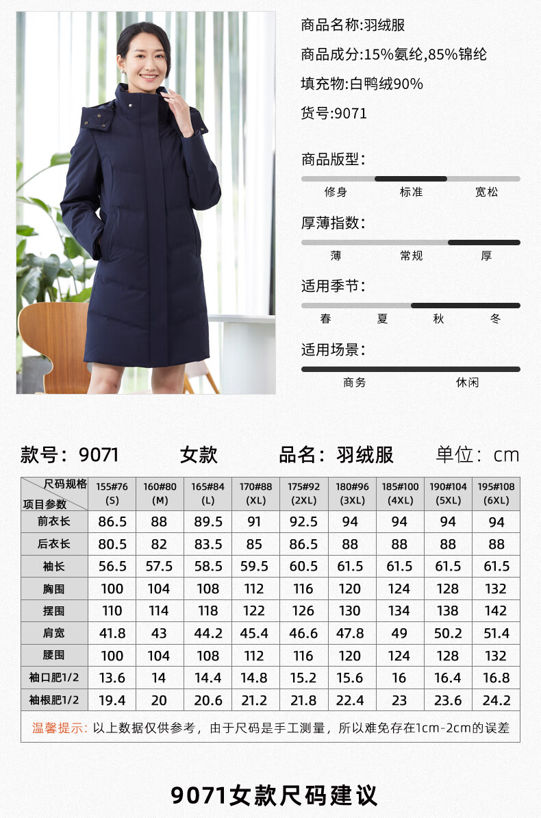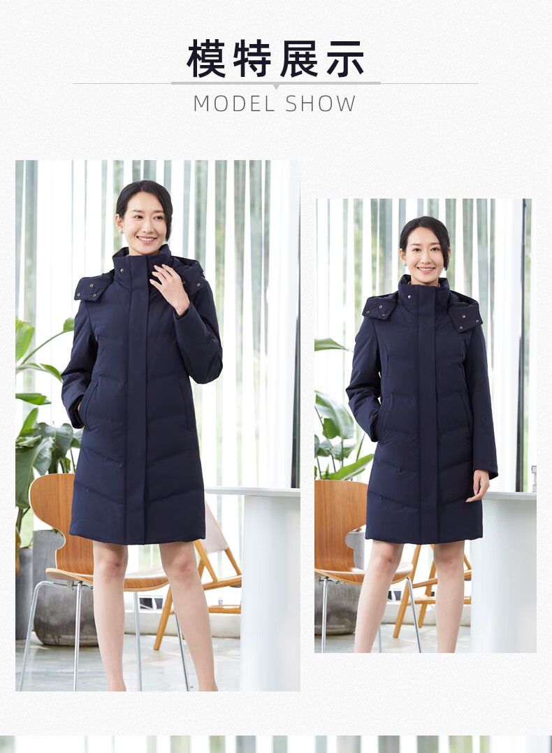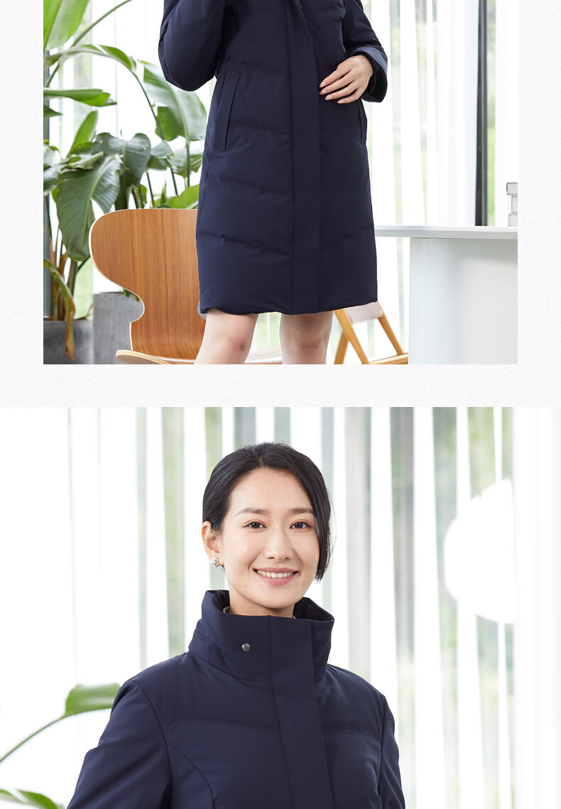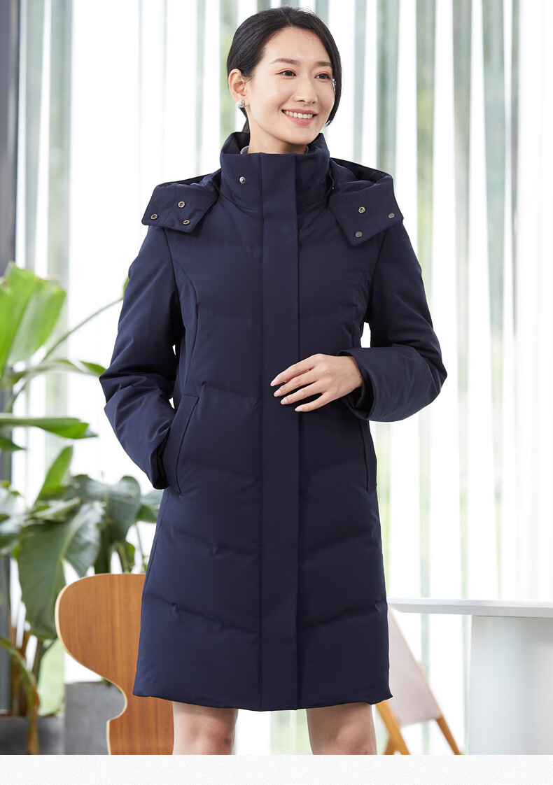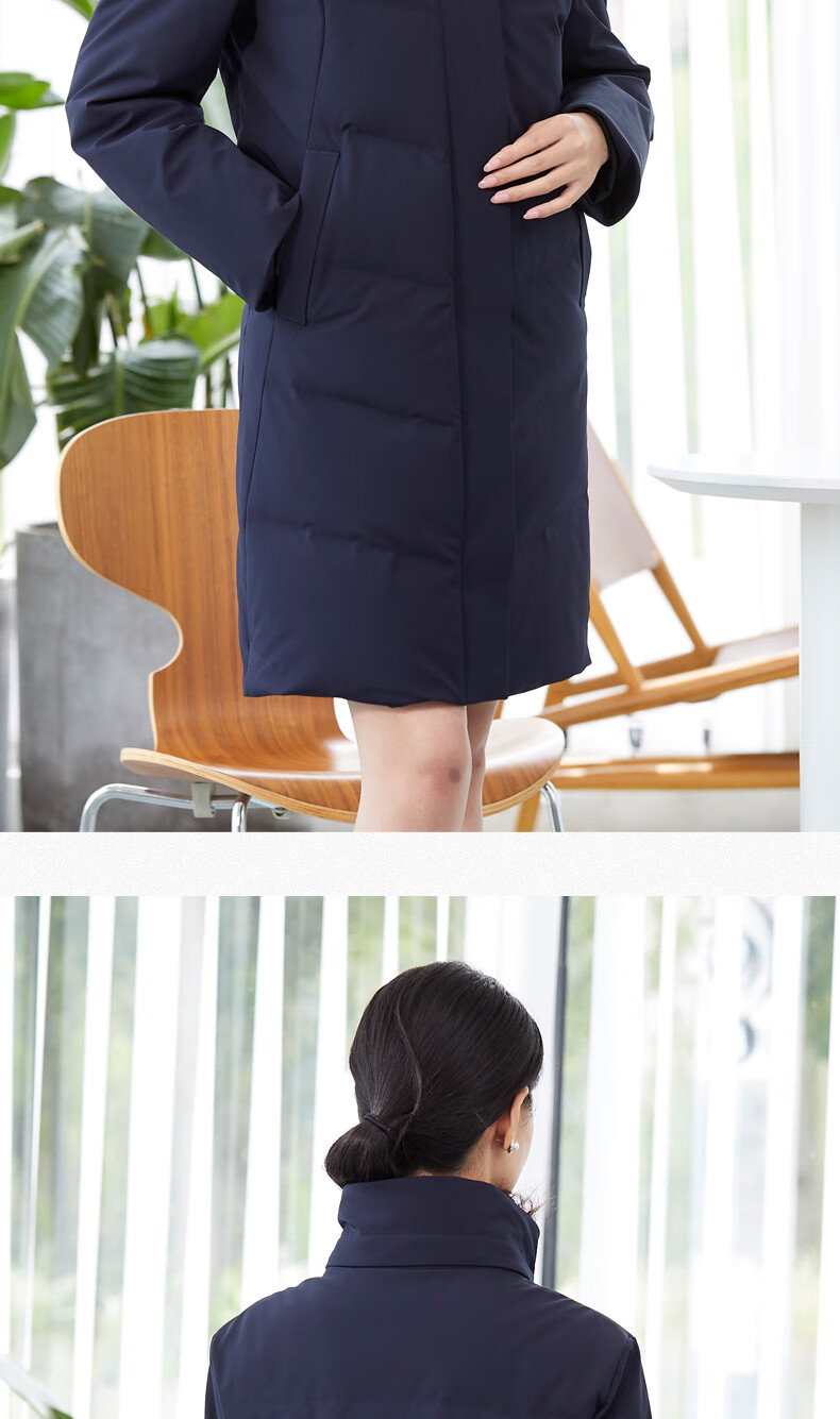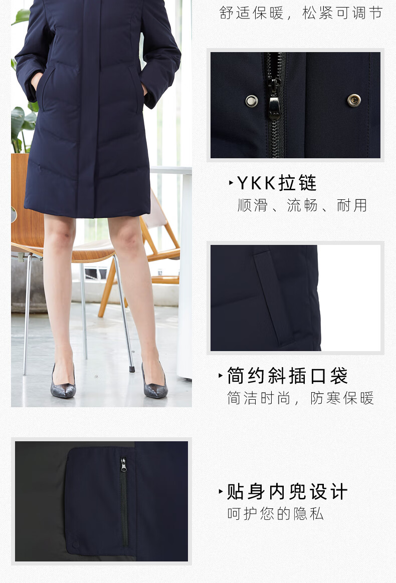 译欧时羽绒服90%白鸭绒羽绒服女中长款可脱卸帽商务定制工服职业装外套 藏蓝色(9071女款) 3XL(身高175-180 体重145-160)