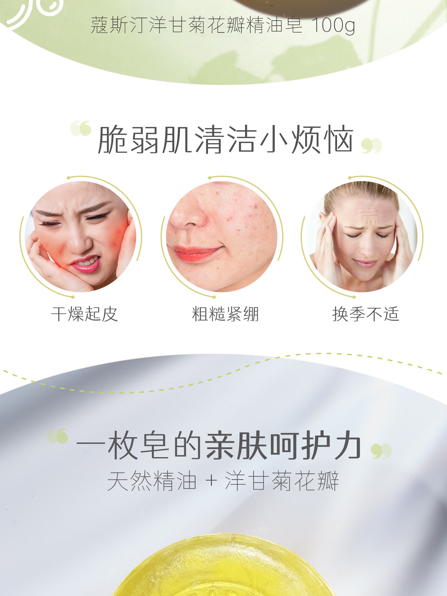 蔻斯汀洋甘菊花瓣精油皂100g除螨洁面沐浴洗脸洗手洗澡香皂一皂多用