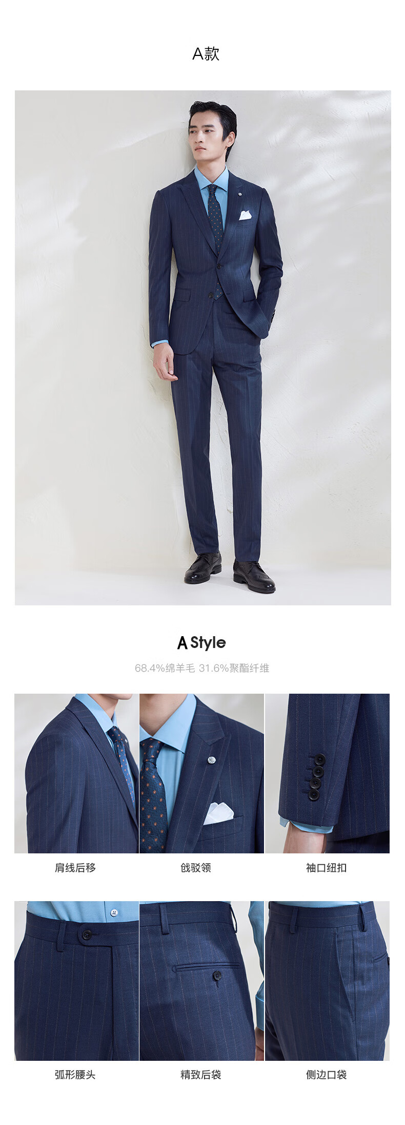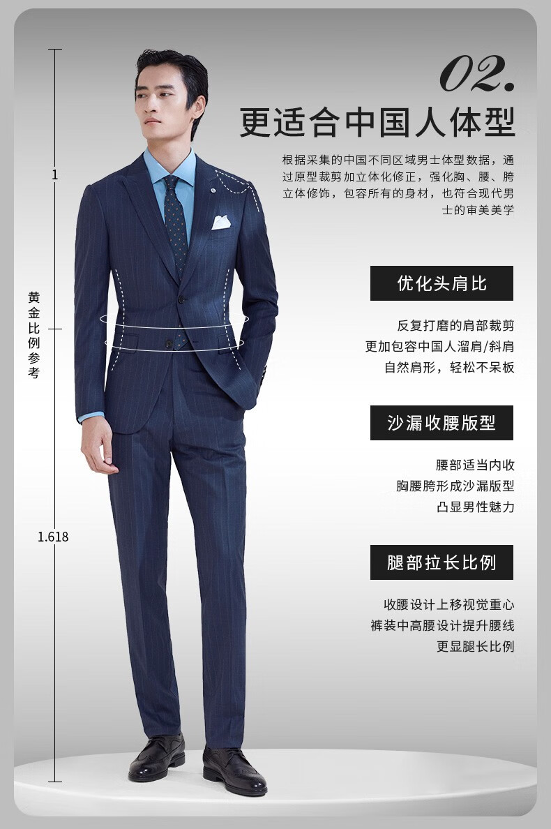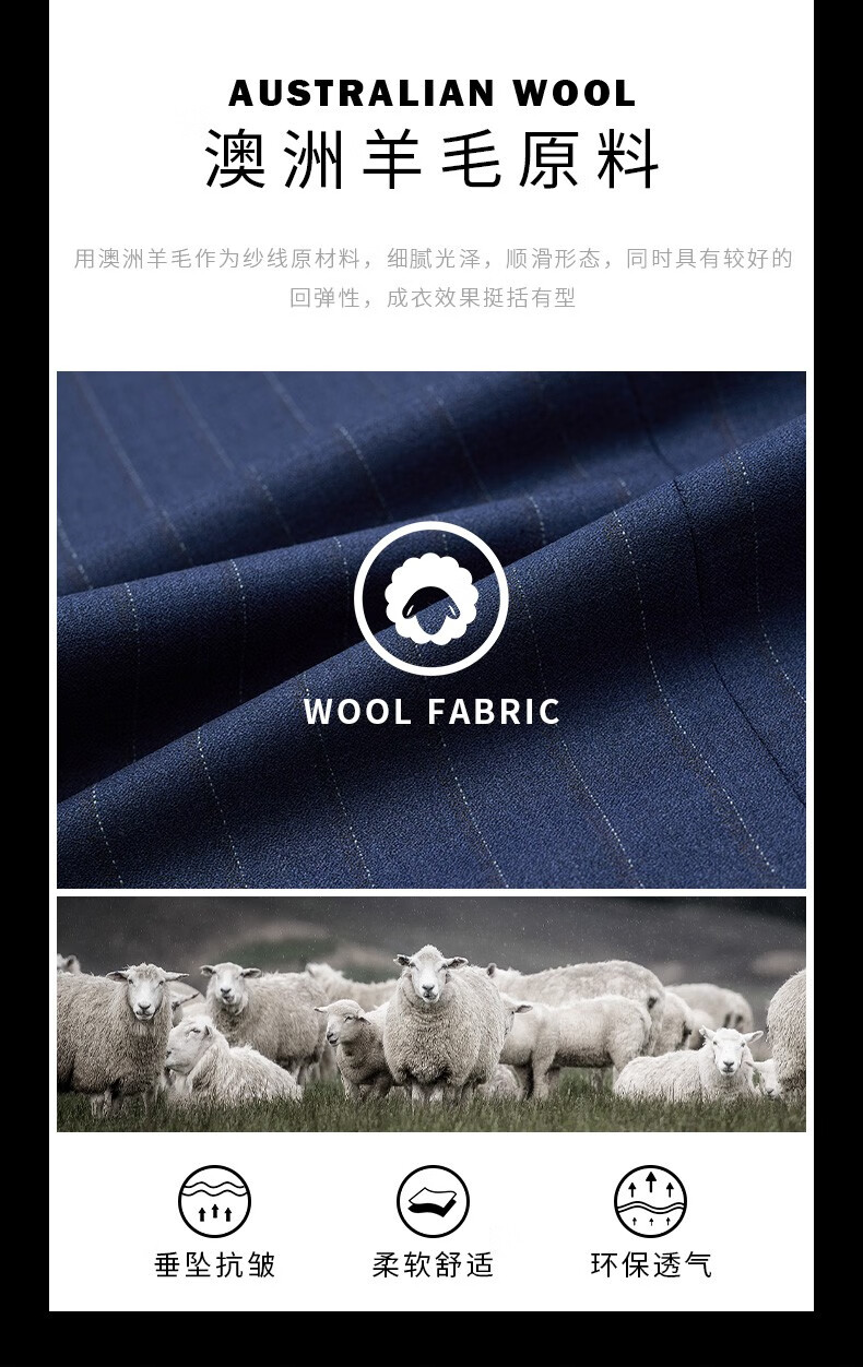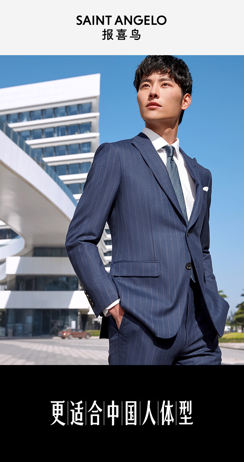 报喜鸟西装男装(单上衣)【澳洲羊毛】轻商务休闲西服羊毛职业装外套男 藏蓝条纹-修身(A款单上衣) 48 A(175/96)