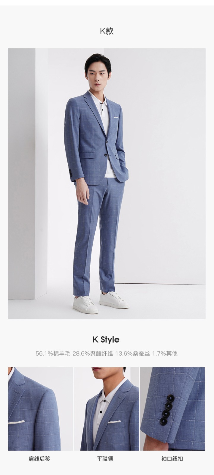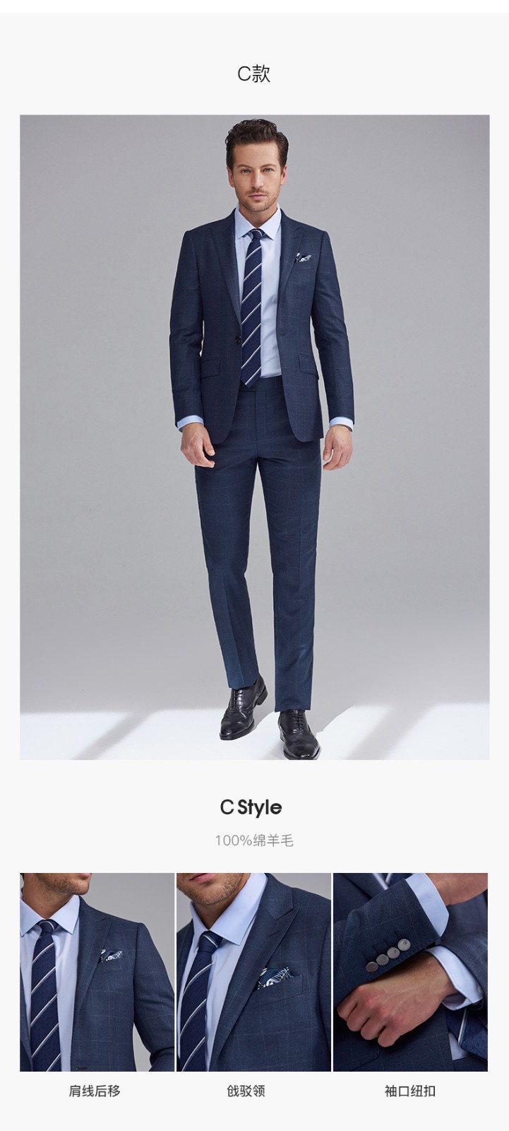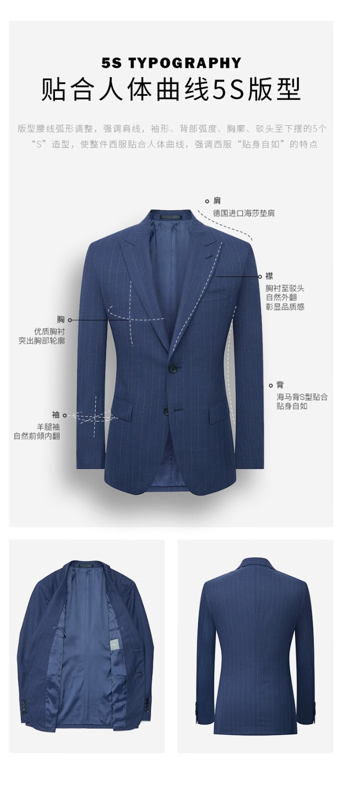 报喜鸟西装男装(单上衣)【澳洲羊毛】轻商务休闲西服羊毛职业装外套男 藏蓝条纹-修身(A款单上衣) 48 A(175/96)