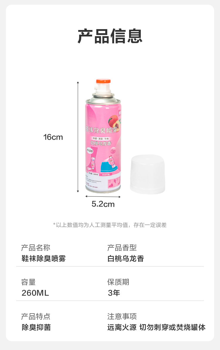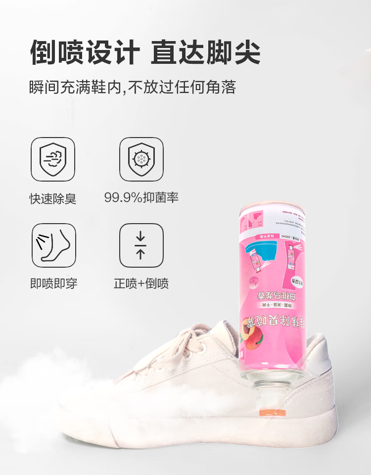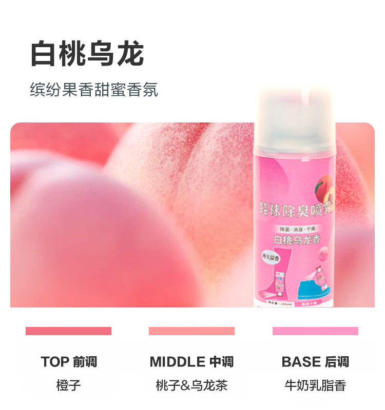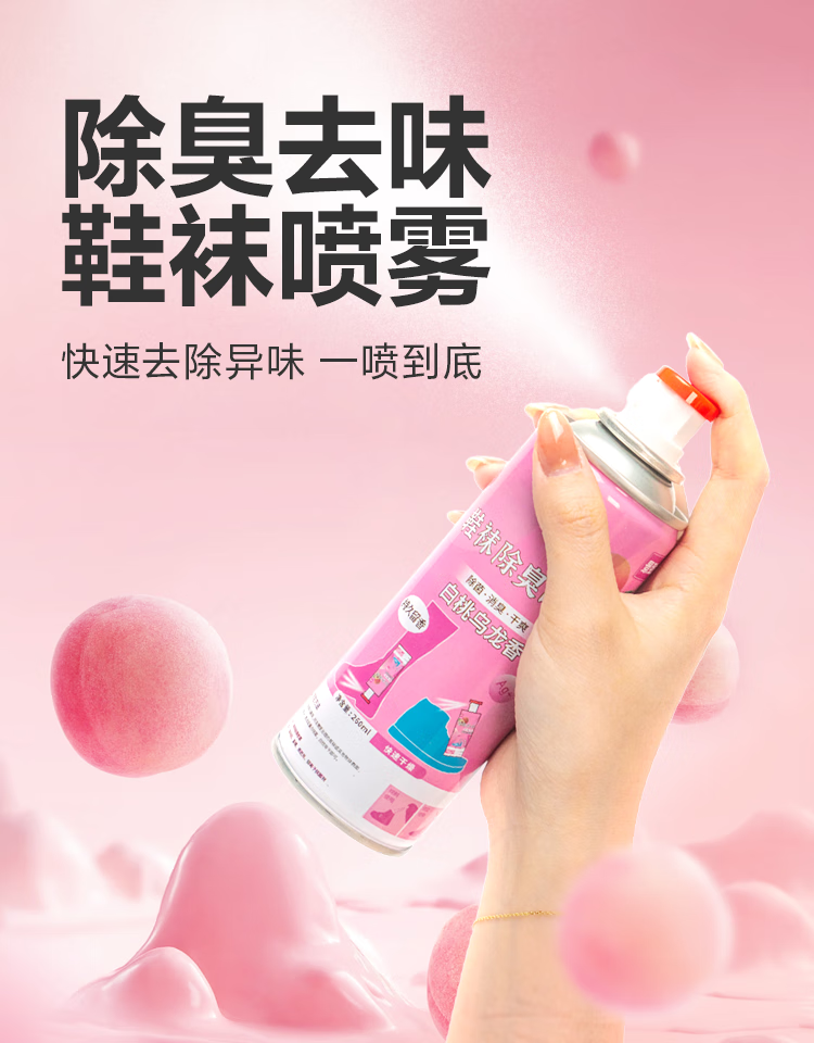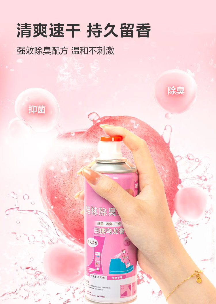 【已售万瓶】鞋袜除臭喷雾银离子鞋子除异味清新球鞋抑菌防脚臭汗 白桃乌龙香鞋袜喷雾【260ml*1】