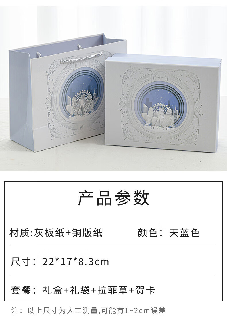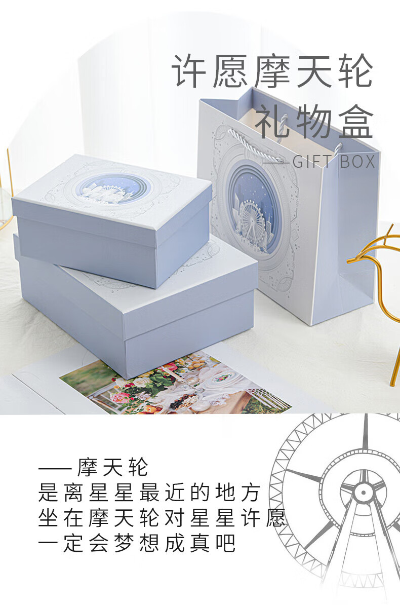 皓梵洁礼物盒礼盒空盒礼品包装新年礼盒大号高级感拉菲草生日礼物送女生 摩天轮礼盒 22*17*8.3cm 带拉菲草+贺卡