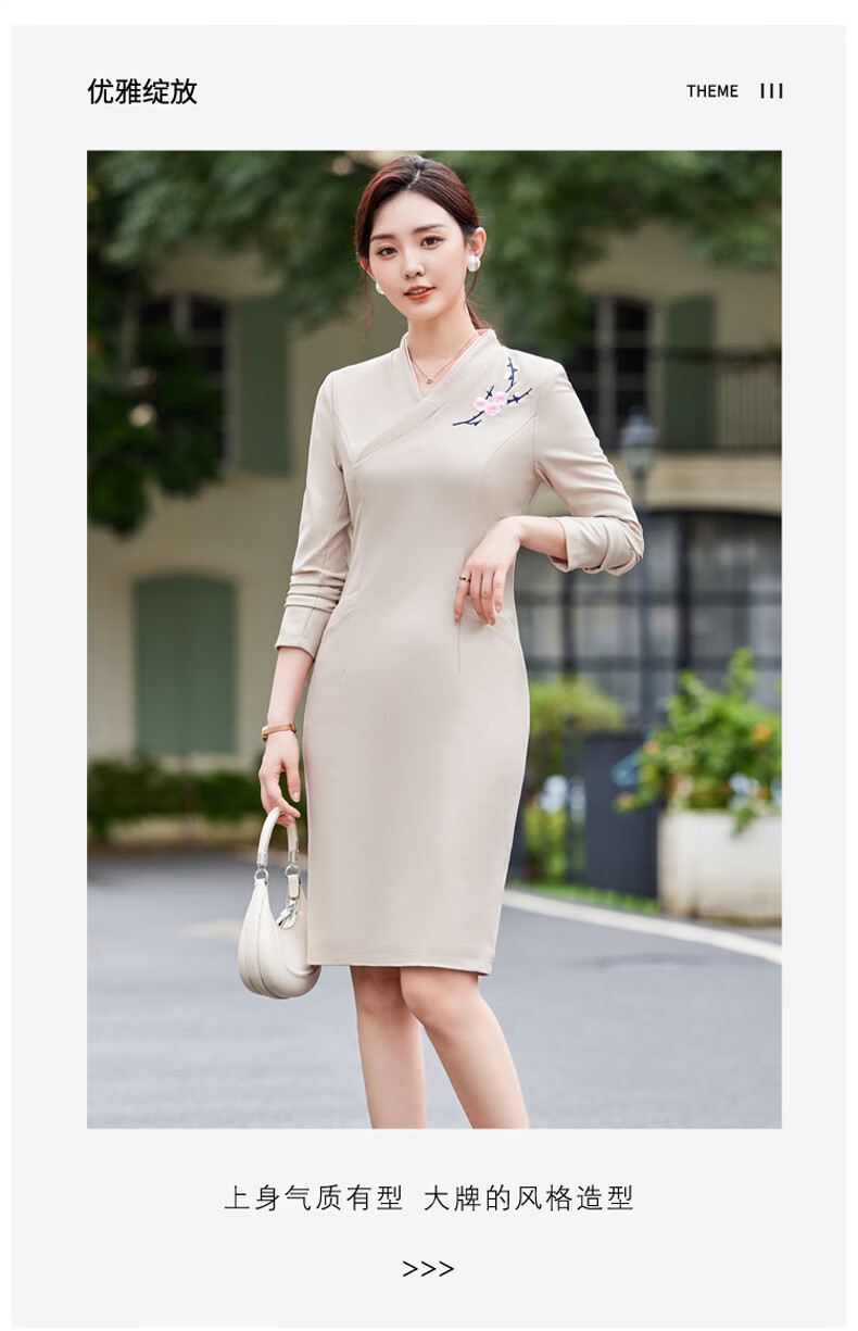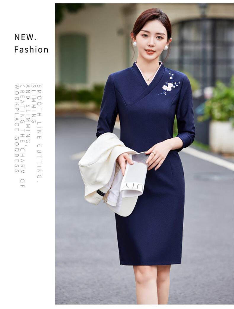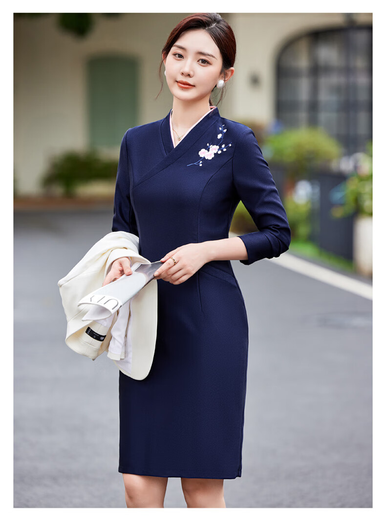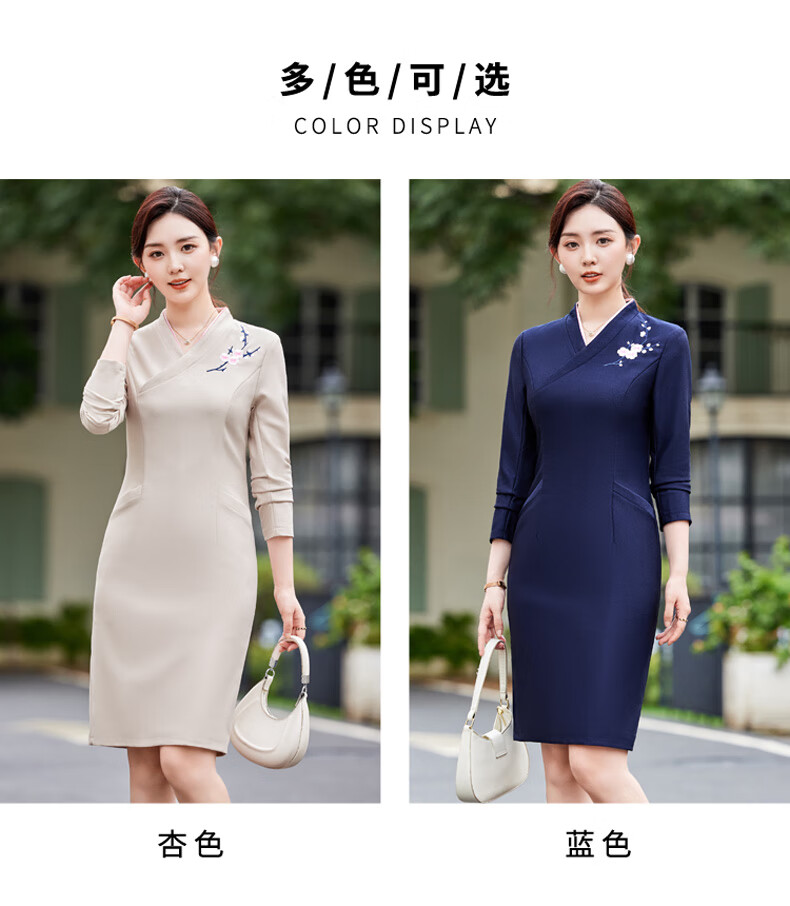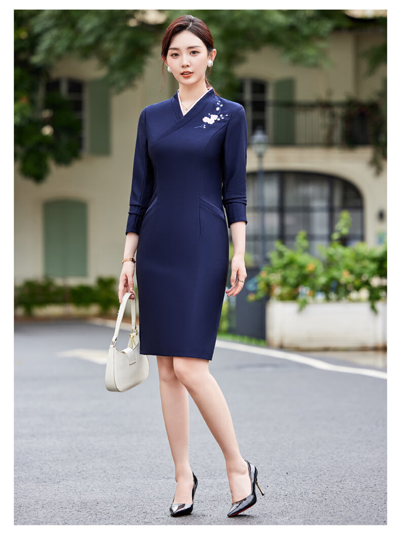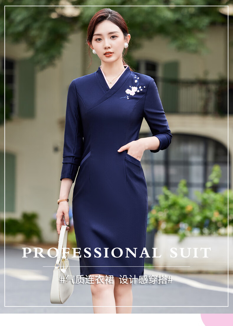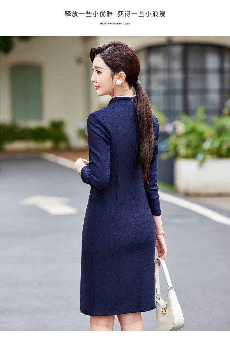 魅菲梵国风连衣裙女2025春秋新款女神范中长款气质修身职业装连衣裙女 蓝色连衣裙 S