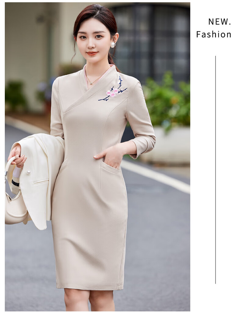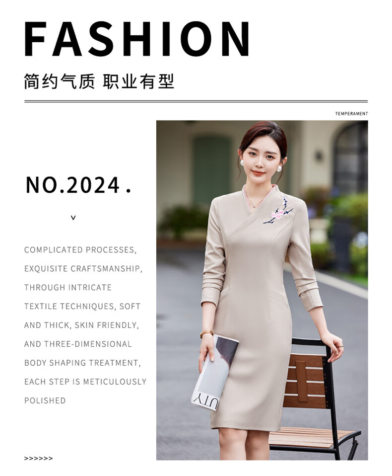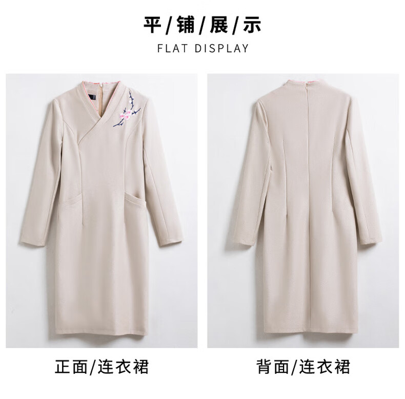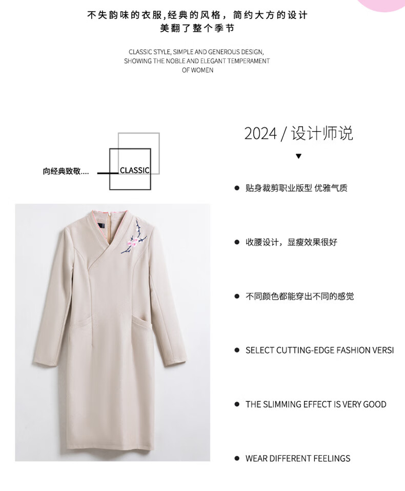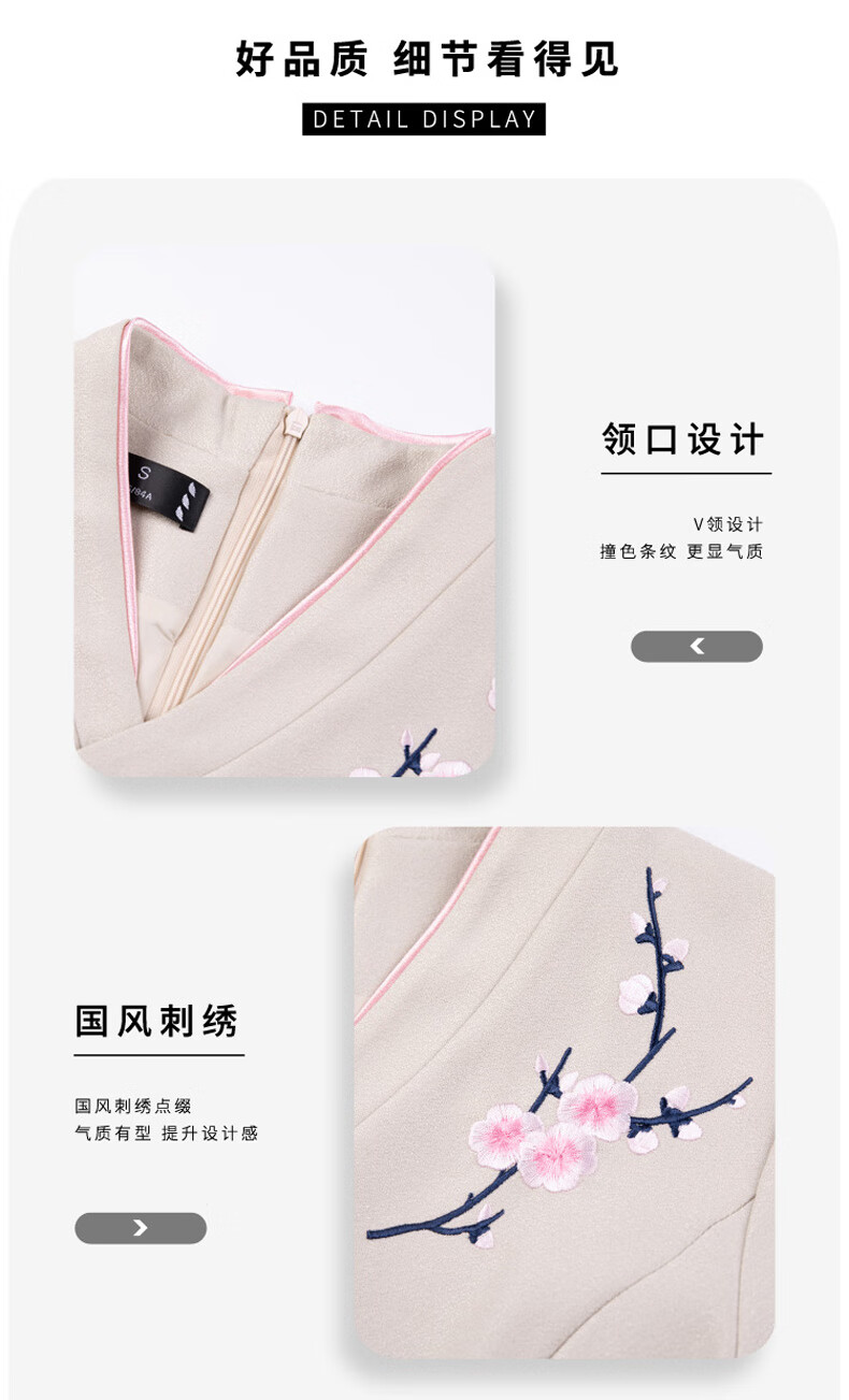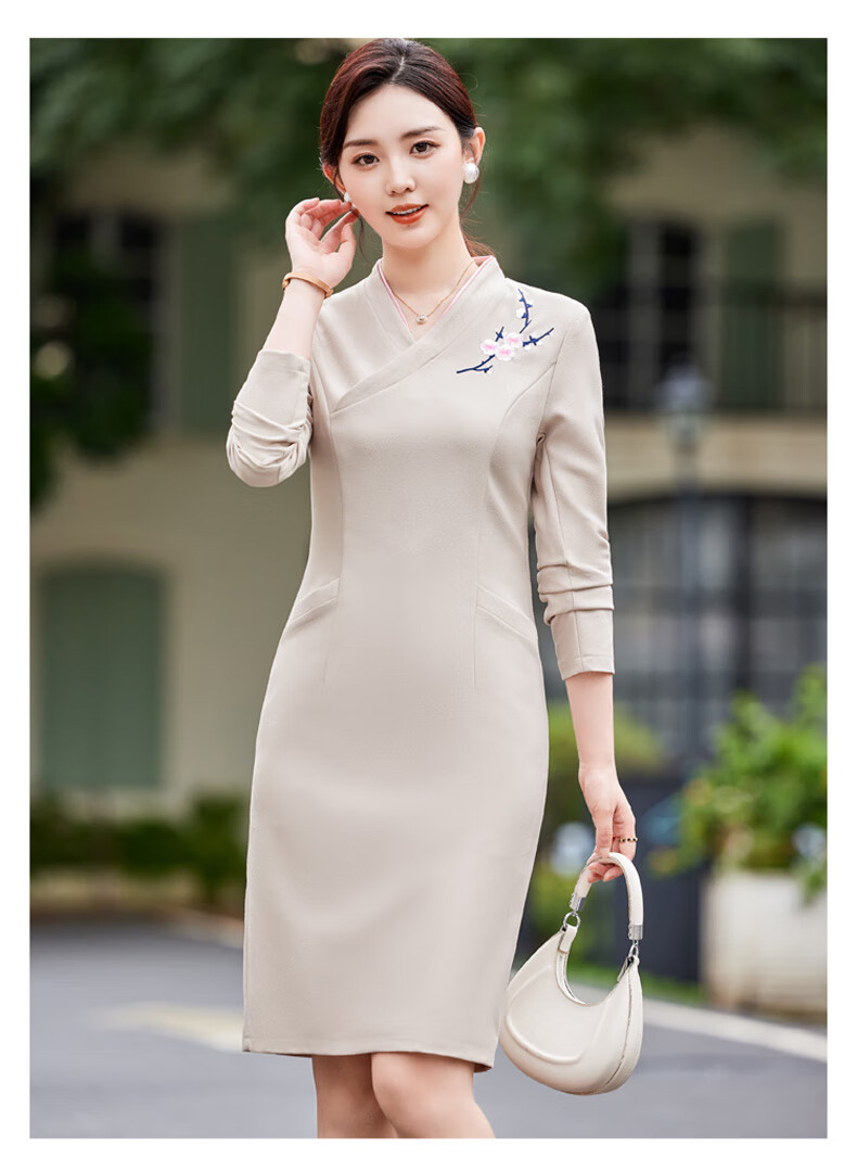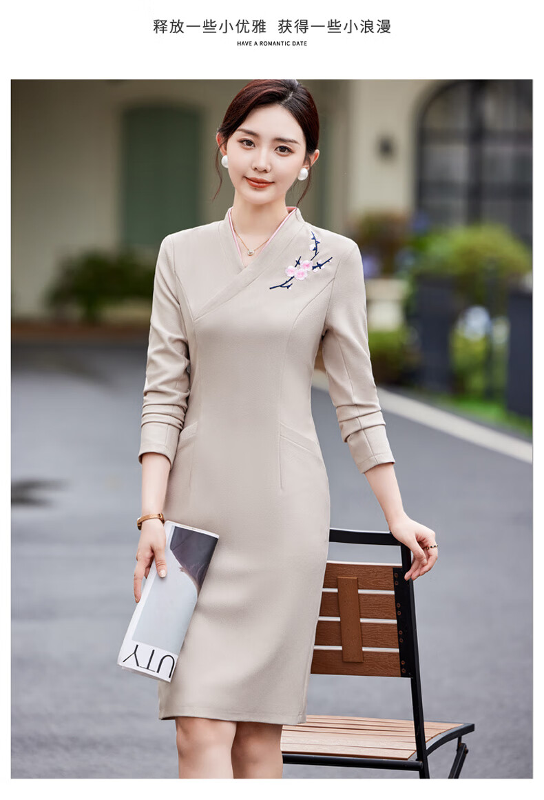 魅菲梵国风连衣裙女2025春秋新款女神范中长款气质修身职业装连衣裙女 蓝色连衣裙 S