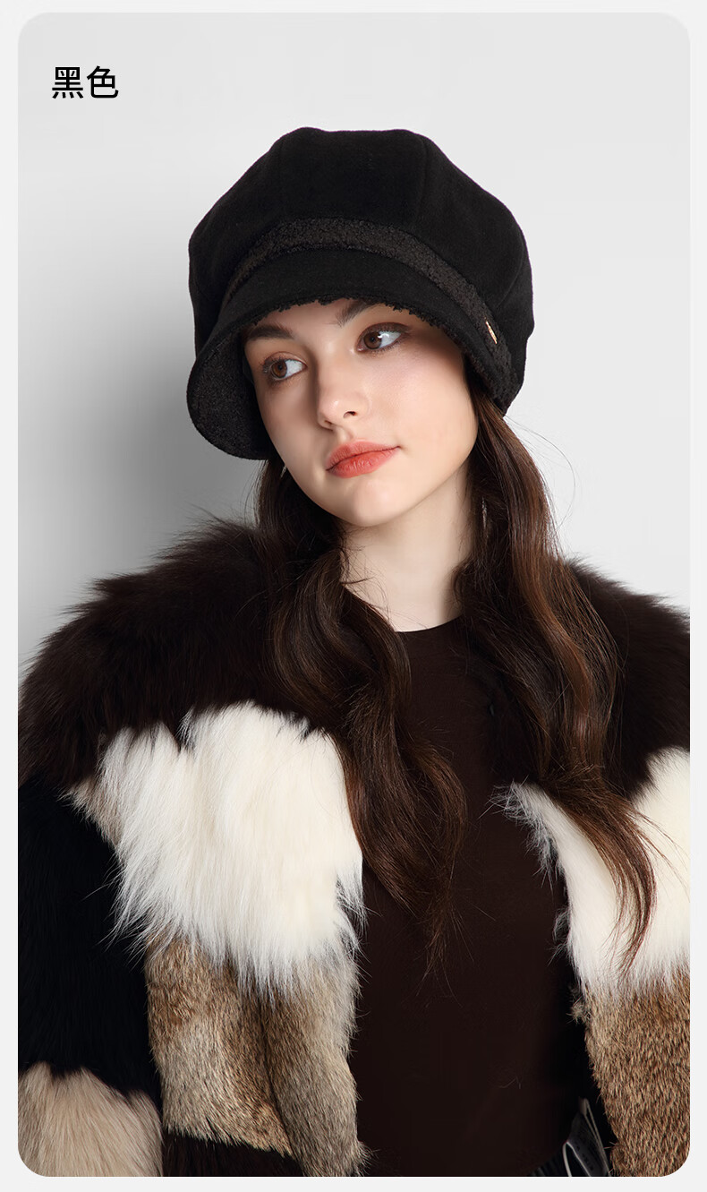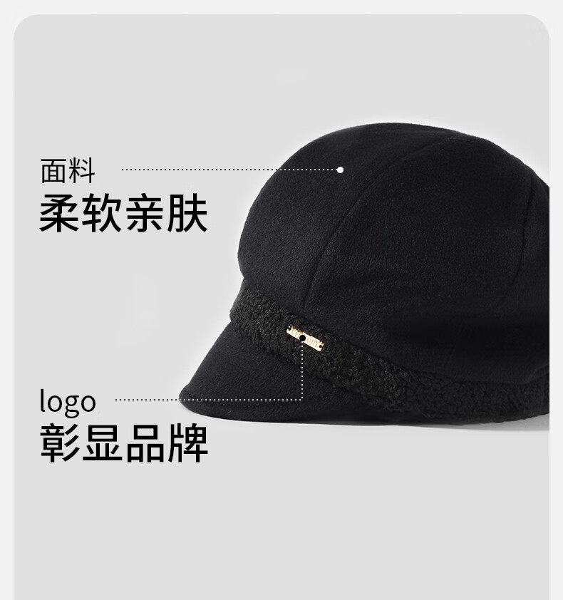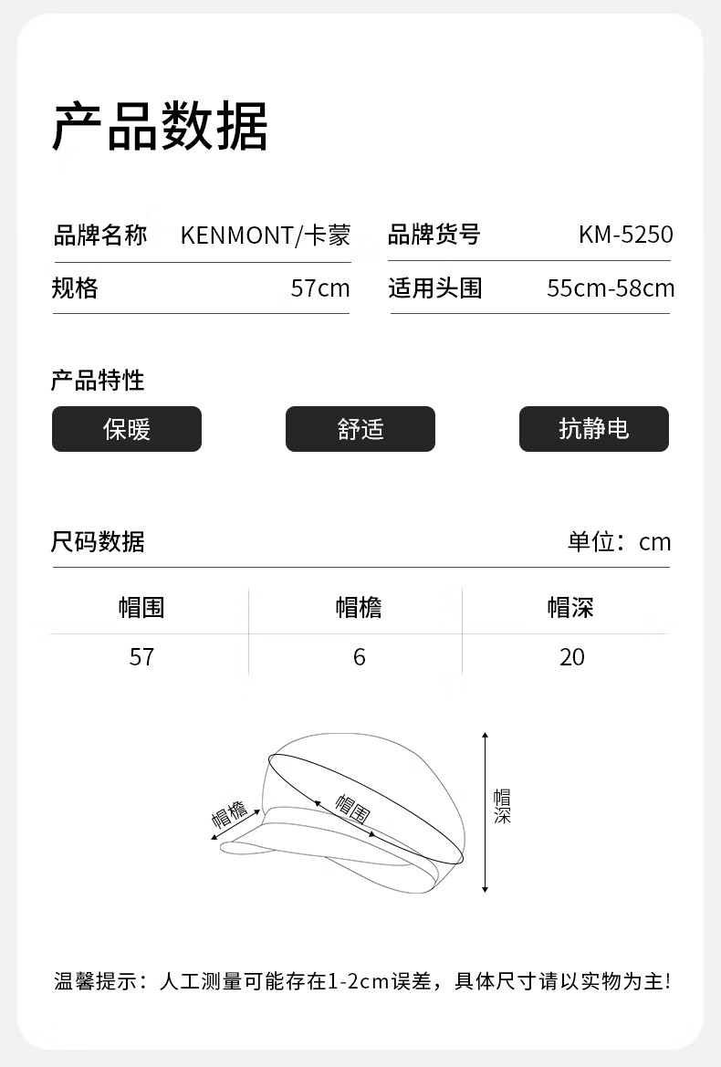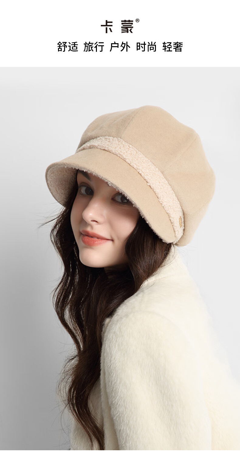 卡蒙(Kenmont)纯色羊毛呢鸭舌贝雷帽女显脸小圆脸小香风八角画家帽新km-5250
