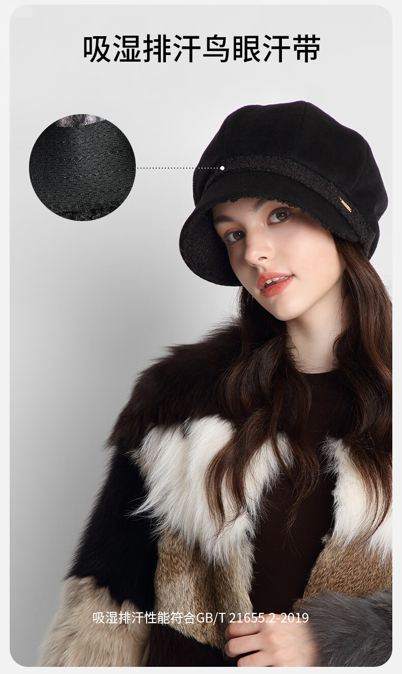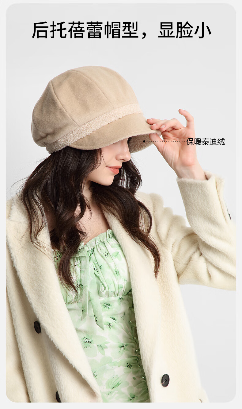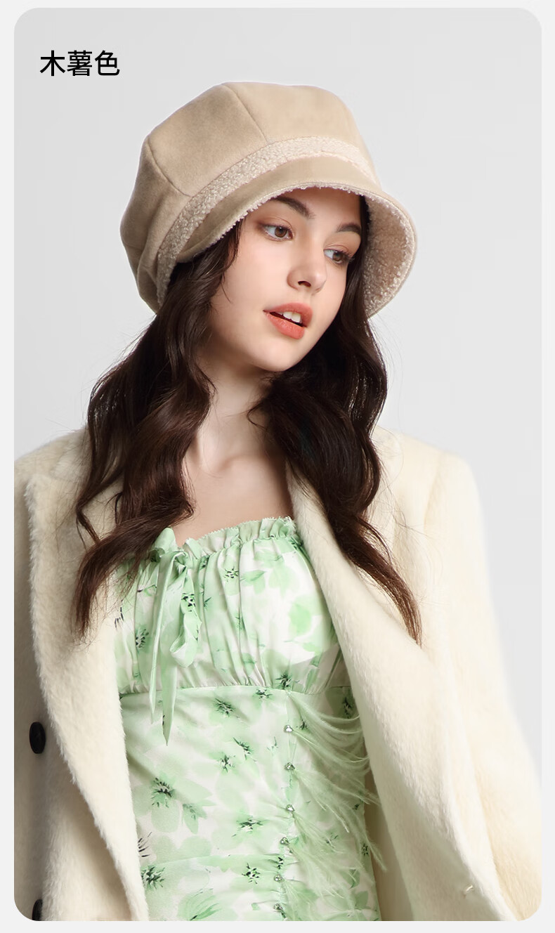 卡蒙(Kenmont)纯色羊毛呢鸭舌贝雷帽女显脸小圆脸小香风八角画家帽新km-5250