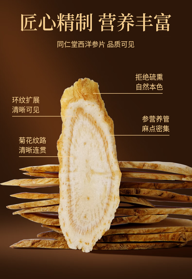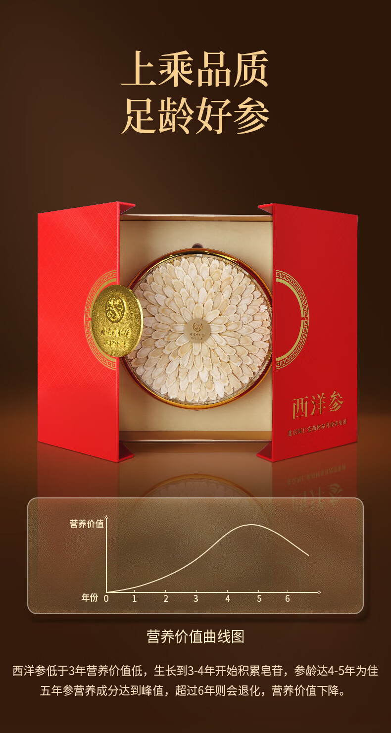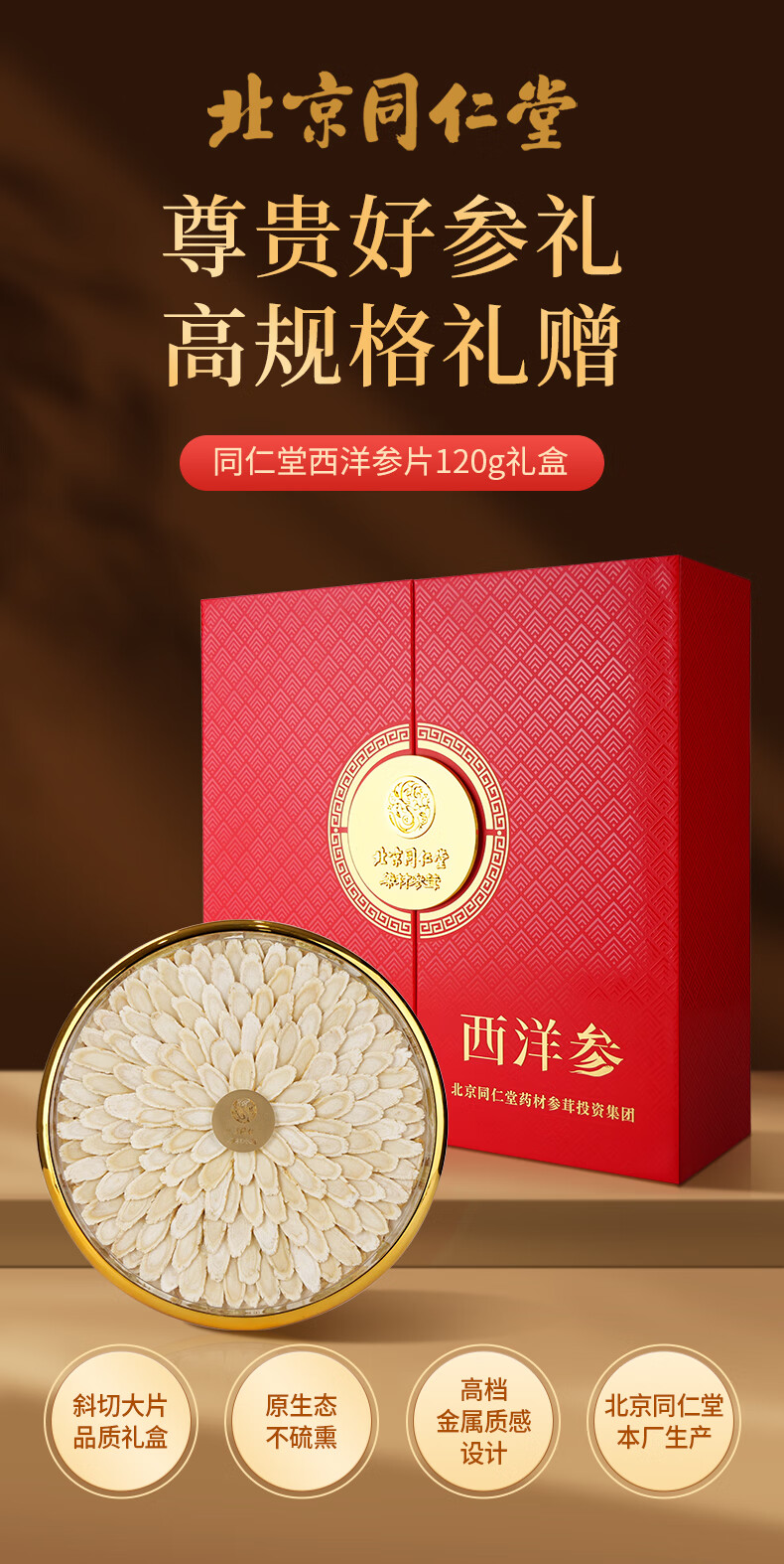 同仁堂西洋参斜片120g高档礼盒套装【年货礼盒】大片送长辈领导年货团购