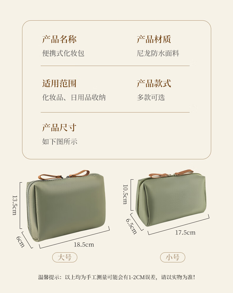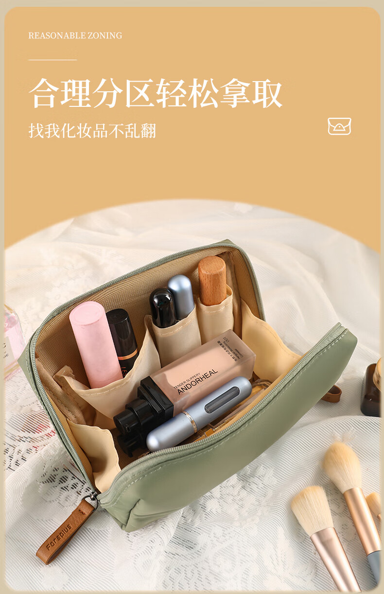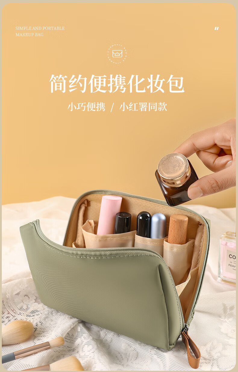 化妆包女新款便携式旅行小号迷你化妆品口红高颜值手提收纳包防水 抹茶绿--小号 无规格