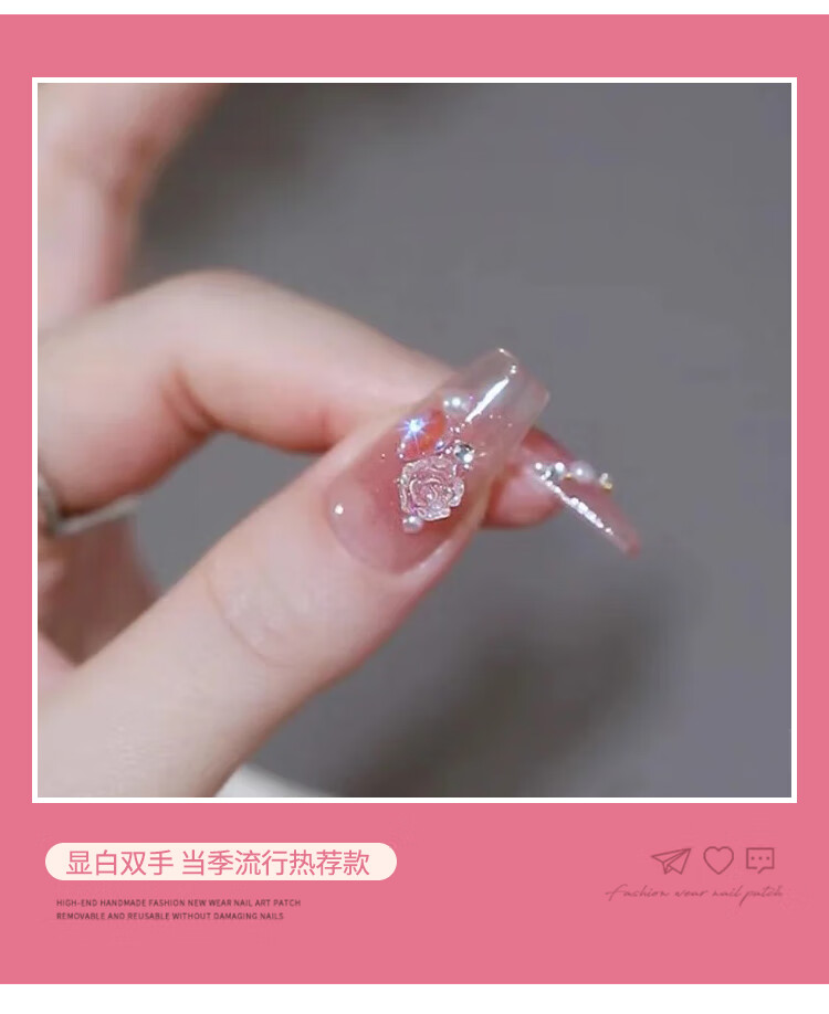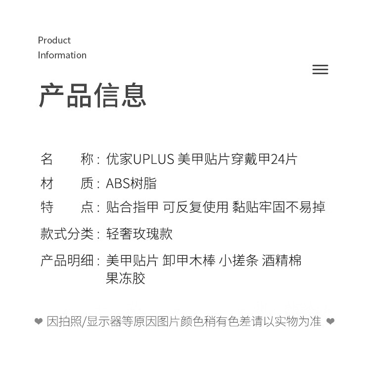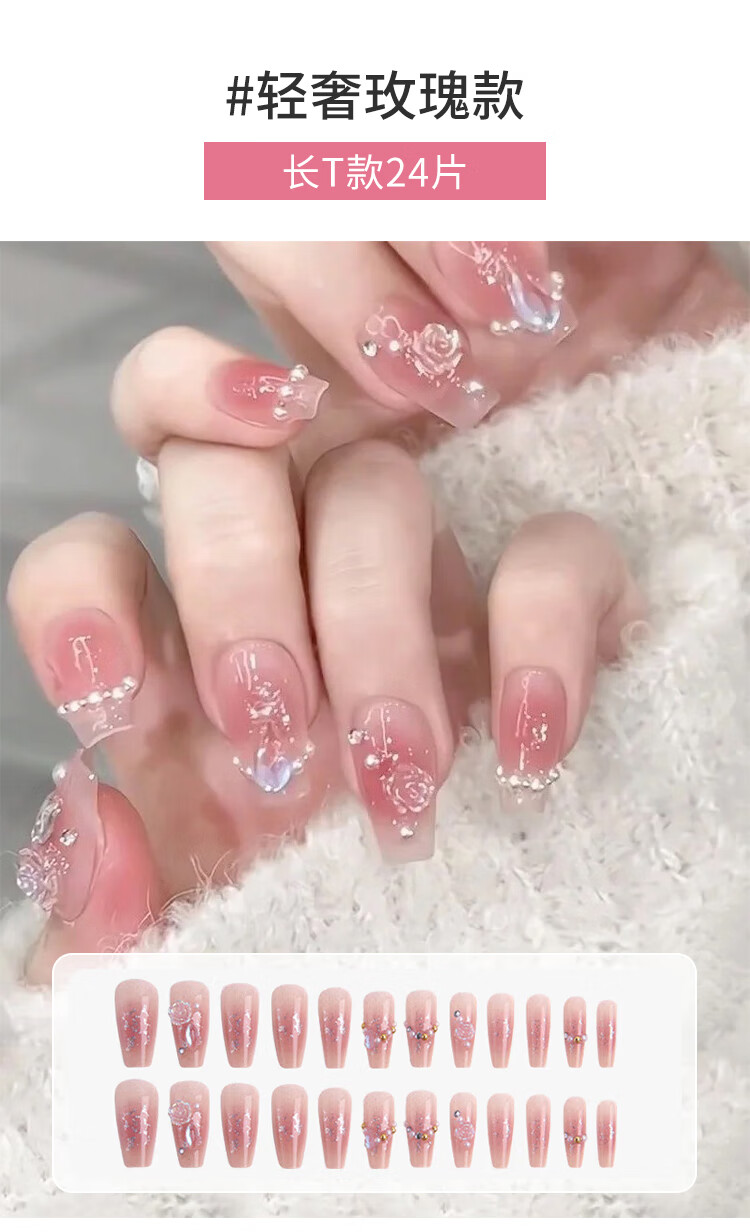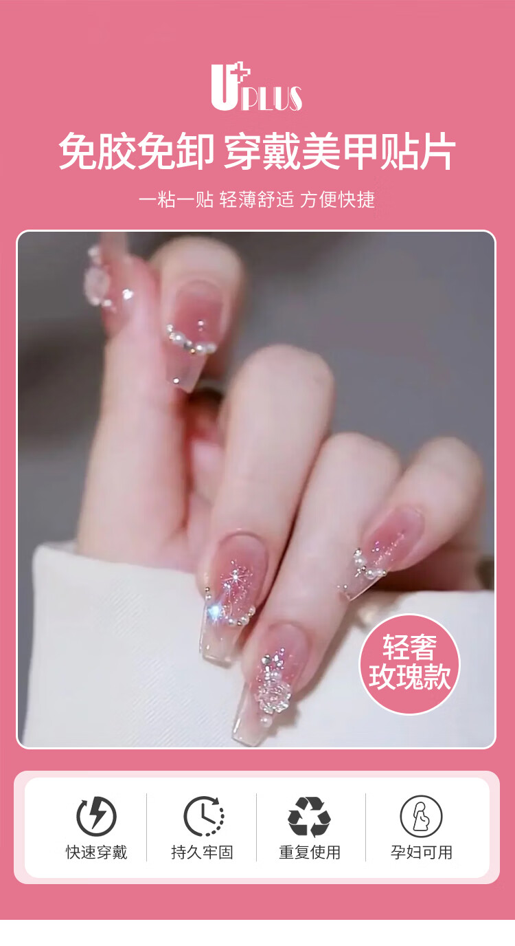 优家(UPLUS)美甲贴片穿戴甲24片(轻奢玫瑰)果冻胶假指甲片女神礼物