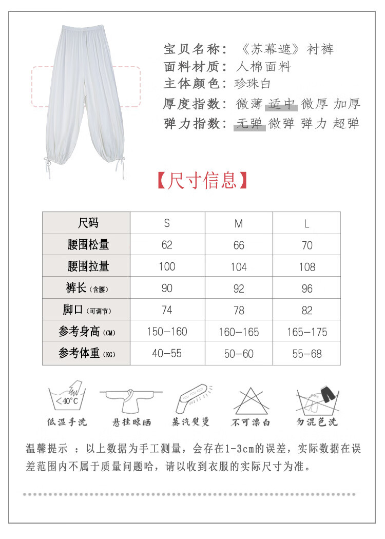 清水溪汉初苏幕遮 清水溪汉服内搭马面裙衬裙白色人棉衬裤打底防走光裙女 清爽白色 准现货 M