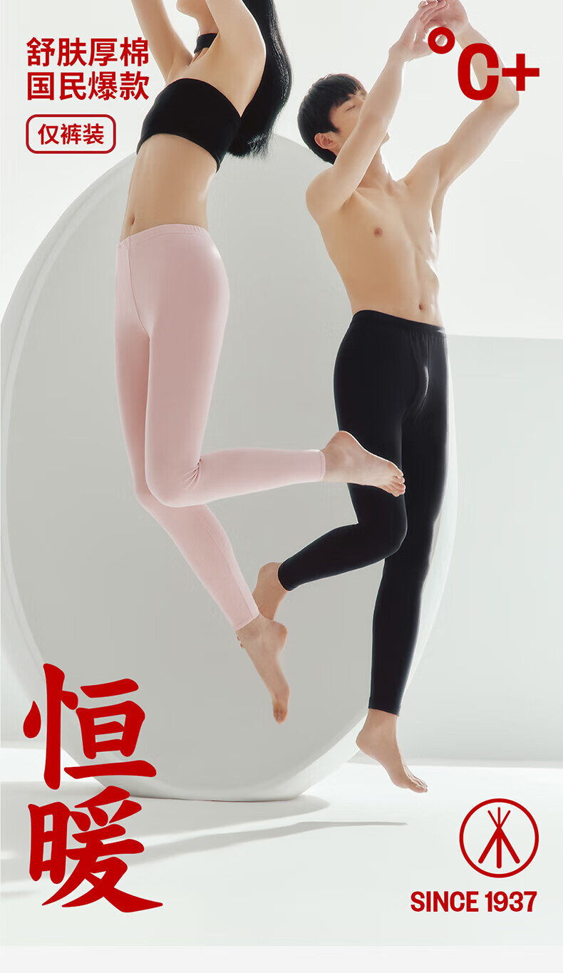 三枪女士单裤纯棉中厚长裤秋裤透气打底裤女弹力厚款中老年全棉保暖裤 裸粉【100%纯棉】 2XL (180) 【推荐140-160斤】