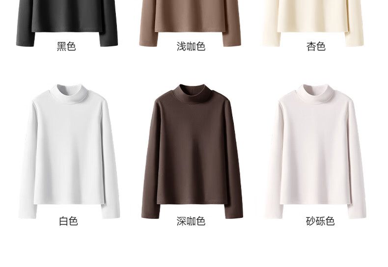 班尼路S&K系列打底衫女装秋冬季新款半高领加绒保暖修身上衣服百搭长袖4 杏#纯色 【加绒保暖】 XL