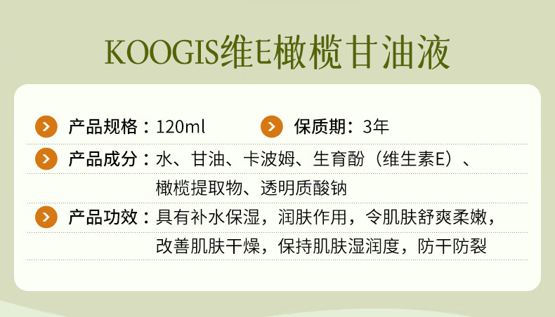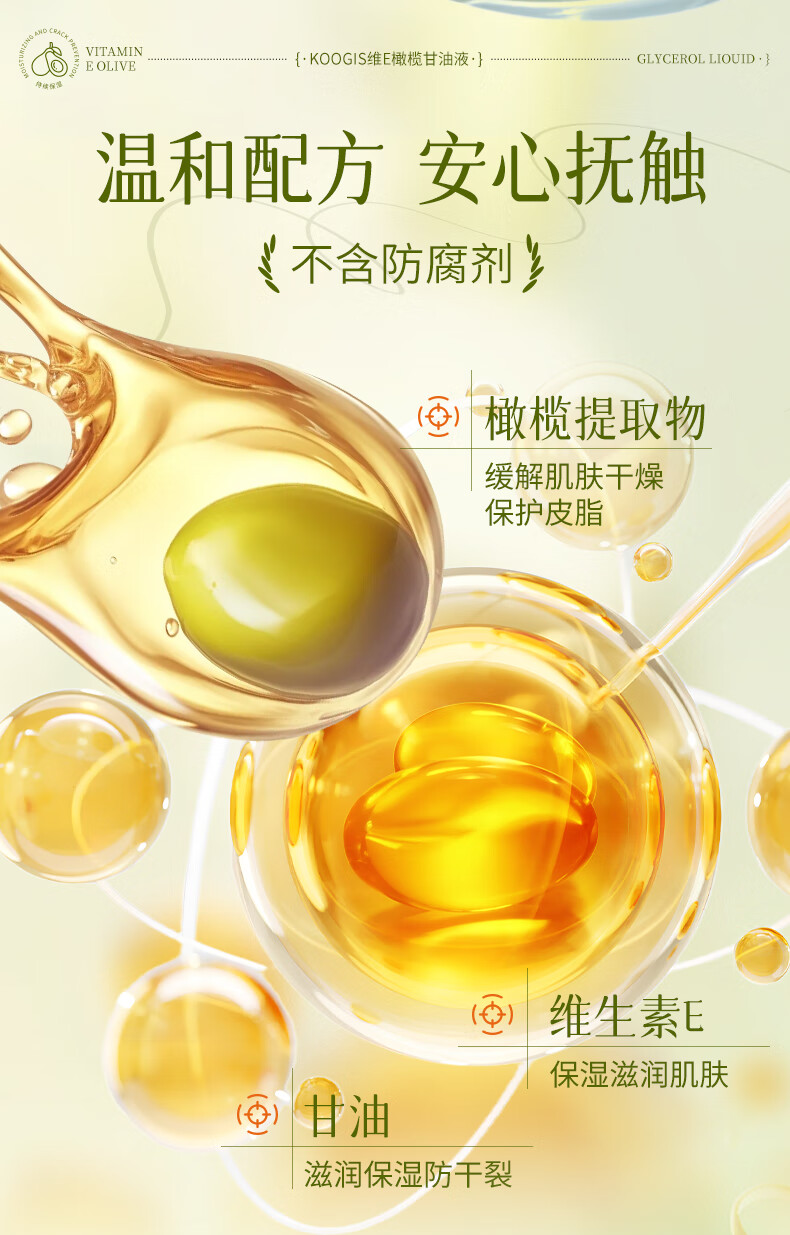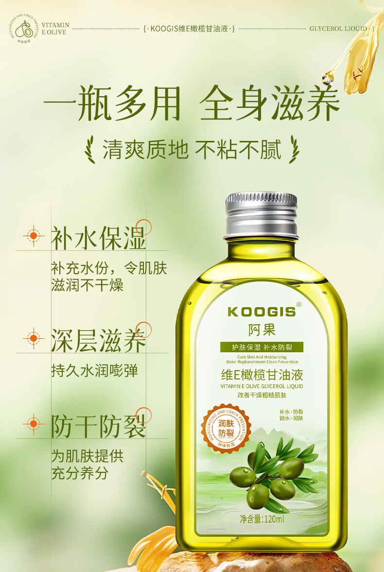 KOOGIS维生素e橄榄护肤甘油纯脸部补水保湿滋润防干裂身体乳按摩精油