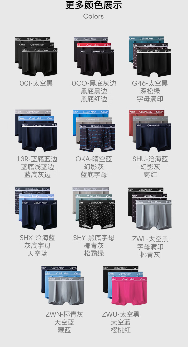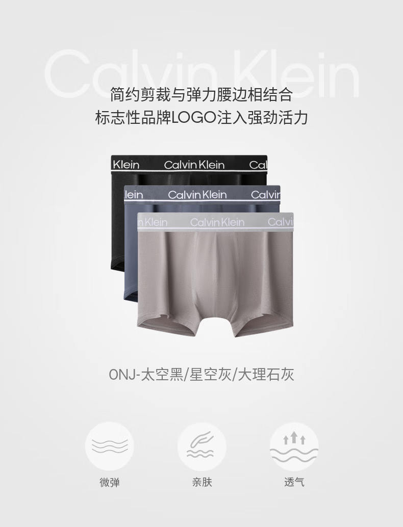 Calvin Klein内衣【新年礼物】男士本命年新年红三条装ck轻薄高弹低腰内裤男 0NJ-太空黑/星空灰/大理石灰 3条 L