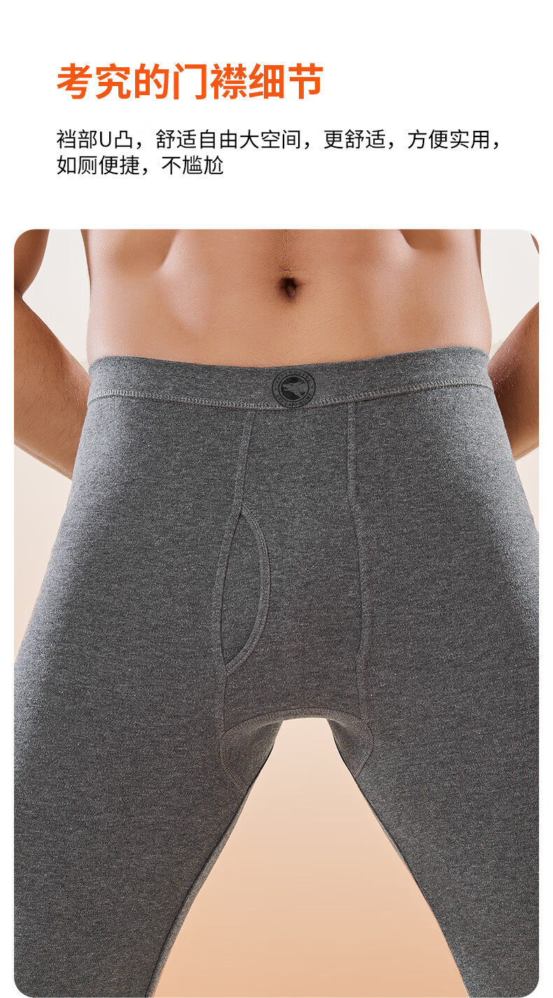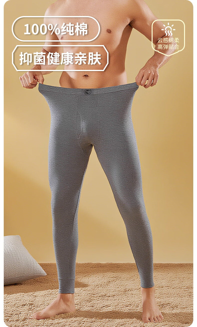 七匹狼男士秋裤男100%纯棉秋裤薄款单裤打底裤抗菌秋冬棉毛裤保暖线裤