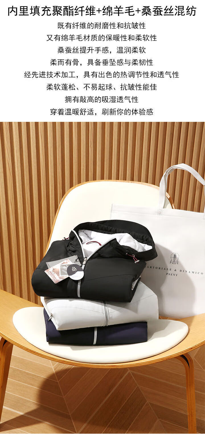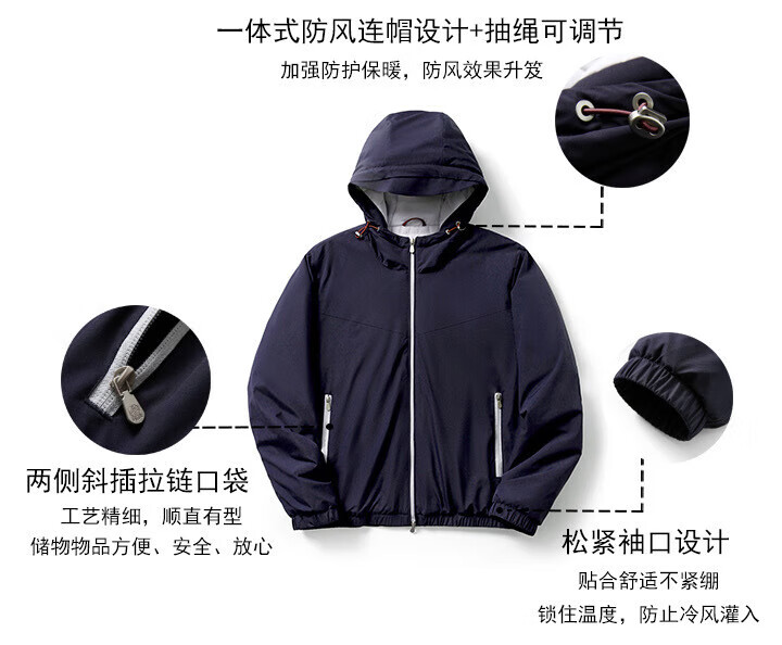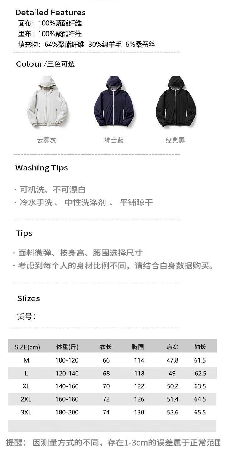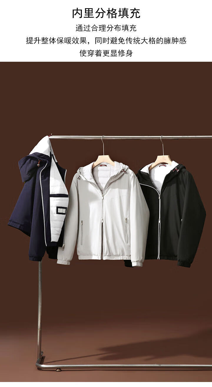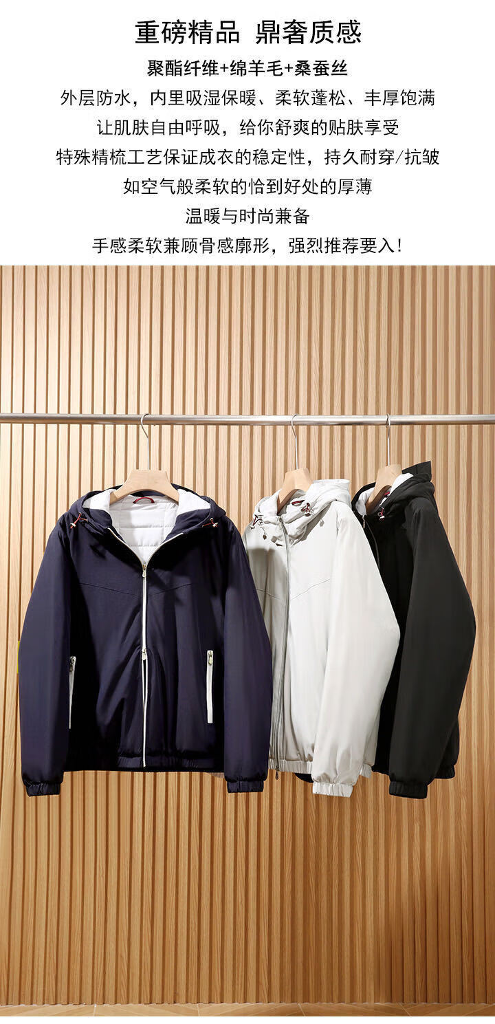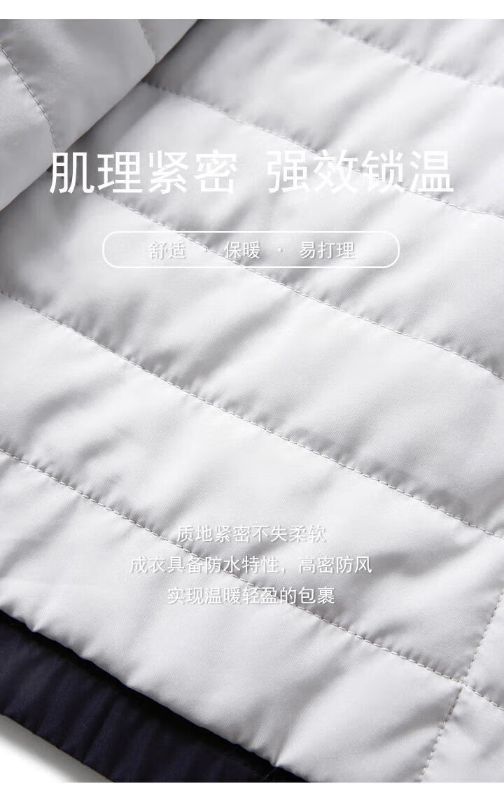 轻暖牛货 绵羊毛桑蚕丝填充秋冬男士防风轻薄保暖棉夹克连帽外套 1610绅士蓝 2XL 【建议体重155-170斤】
