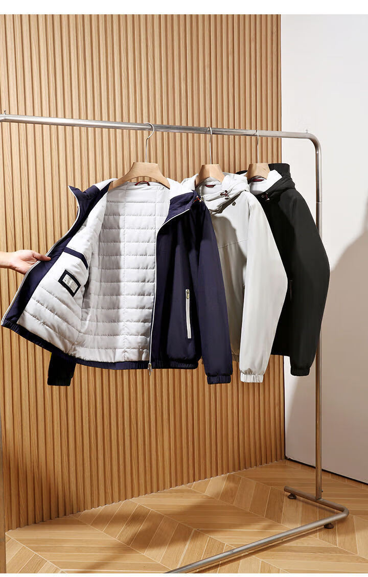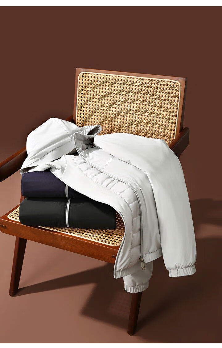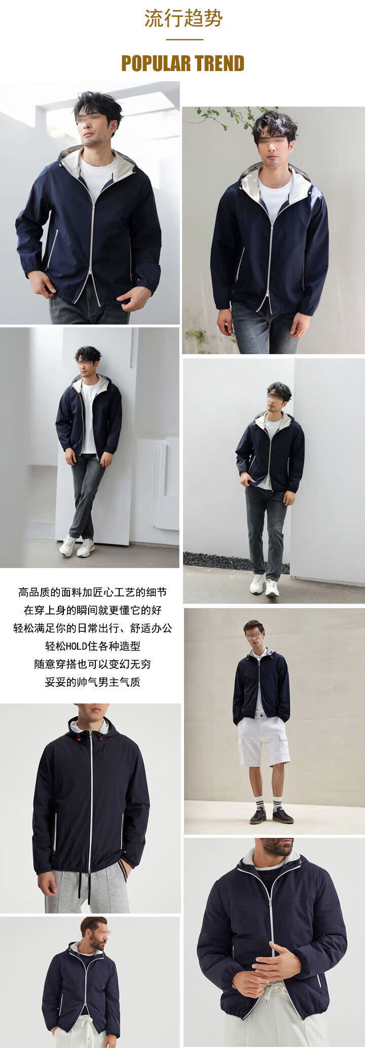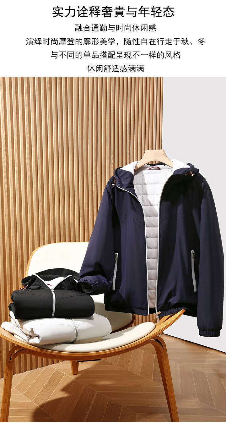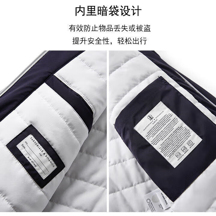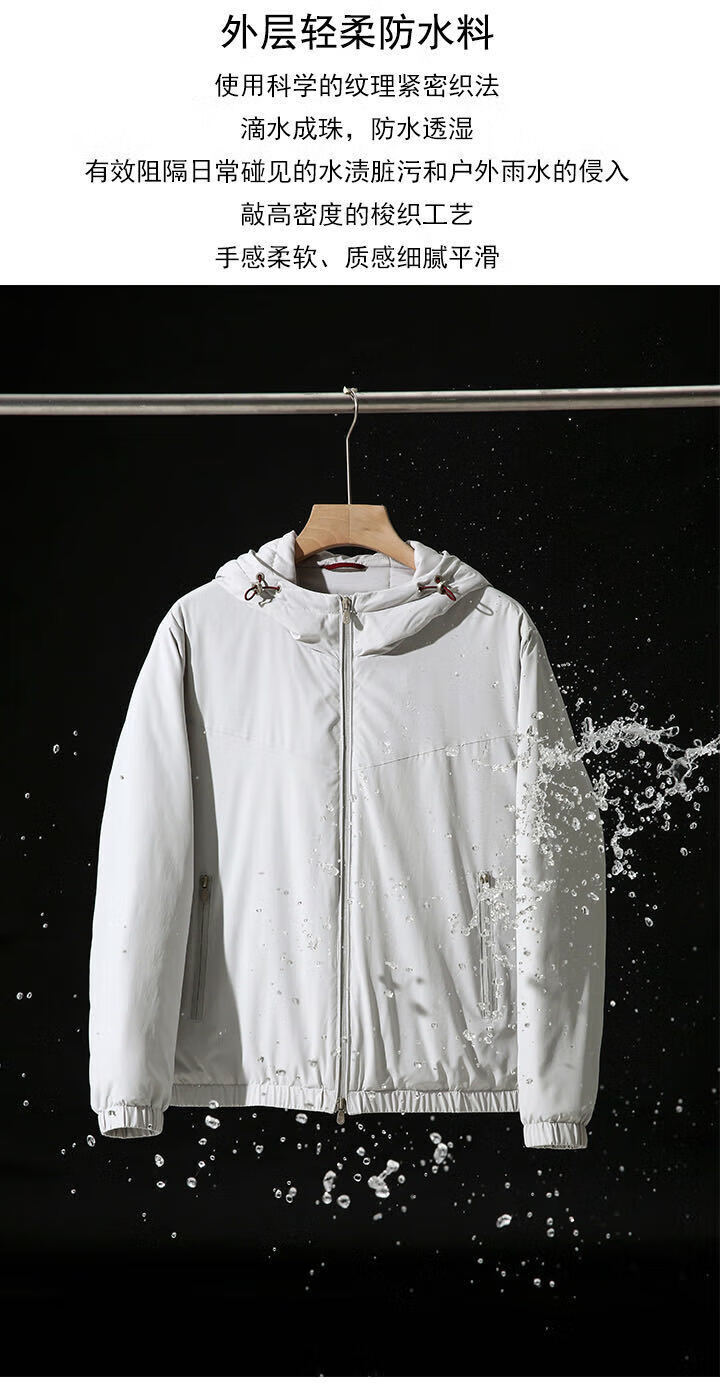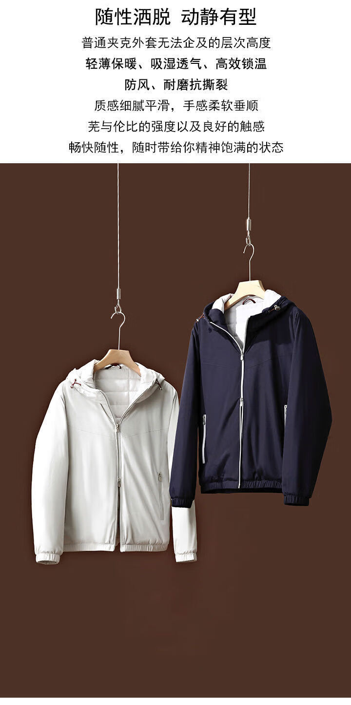 轻暖牛货 绵羊毛桑蚕丝填充秋冬男士防风轻薄保暖棉夹克连帽外套 1610绅士蓝 2XL 【建议体重155-170斤】