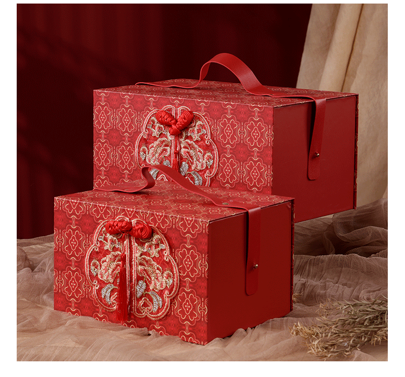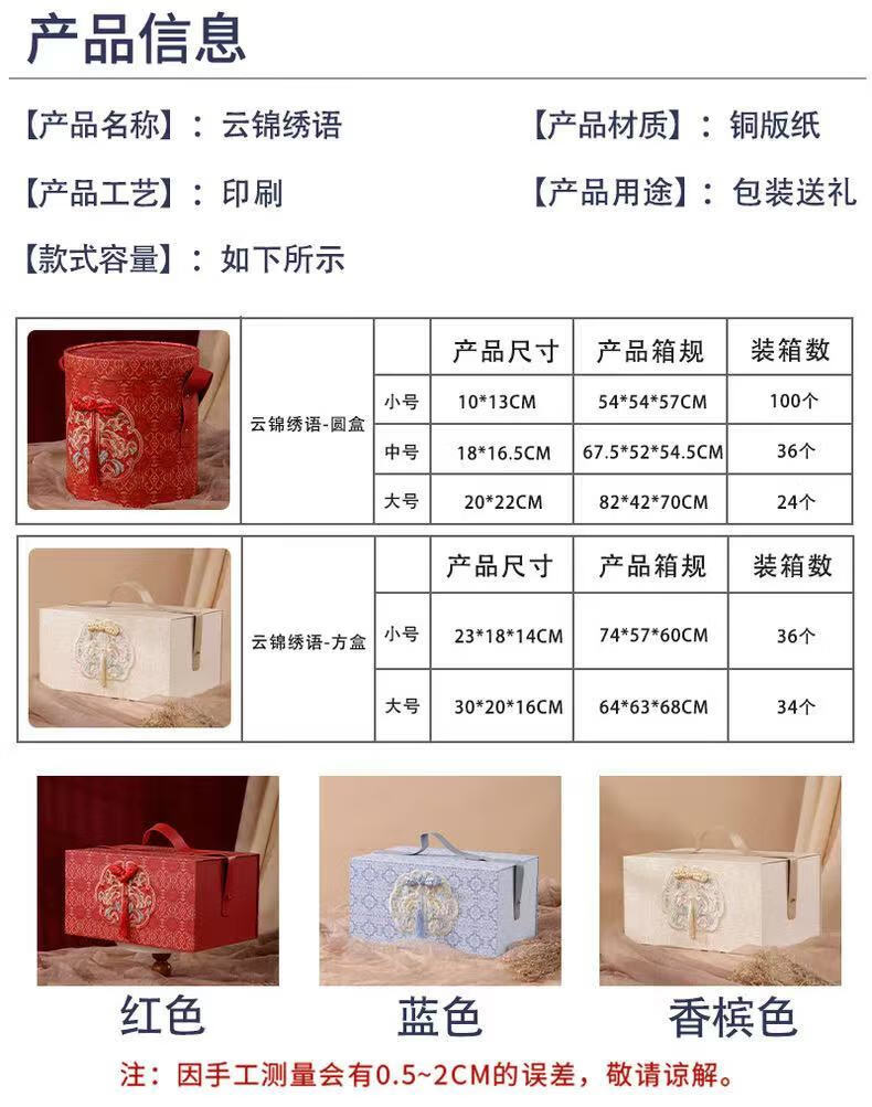 维诺亚礼盒空盒子结婚喜糖盒伴手礼盒生日礼物盒新款礼品包装盒手提 圆盒大号-红色 20*22cm 礼盒 +贺卡