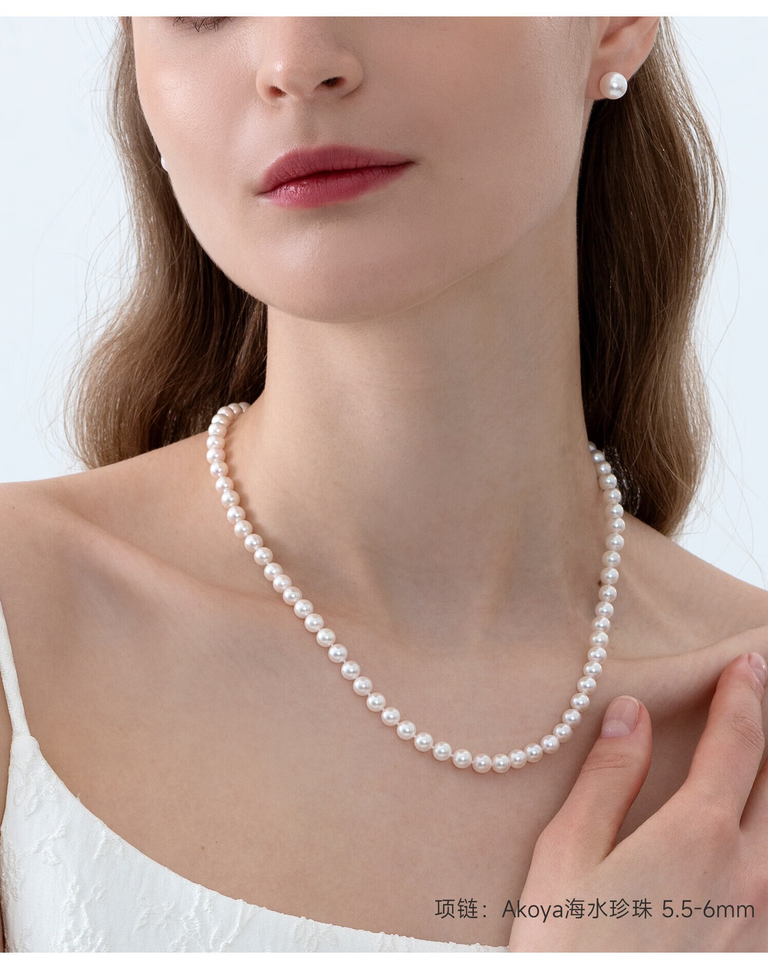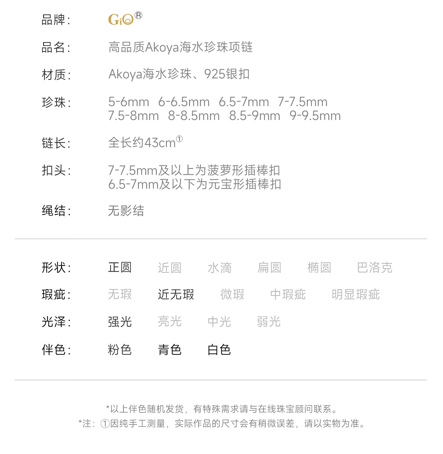 GiO珠宝 Akoya天然海水珍珠项链高级感新年礼物送老婆送妈妈 GUILD花珠18K金扣 6.5-7mm