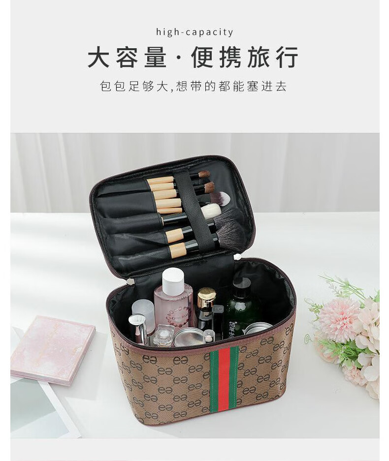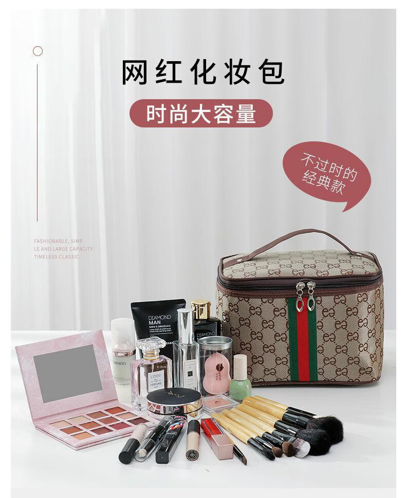 大容量化妆包牛津布高颜值简约便携式旅行手提多功能收纳化妆包 浅灰色
