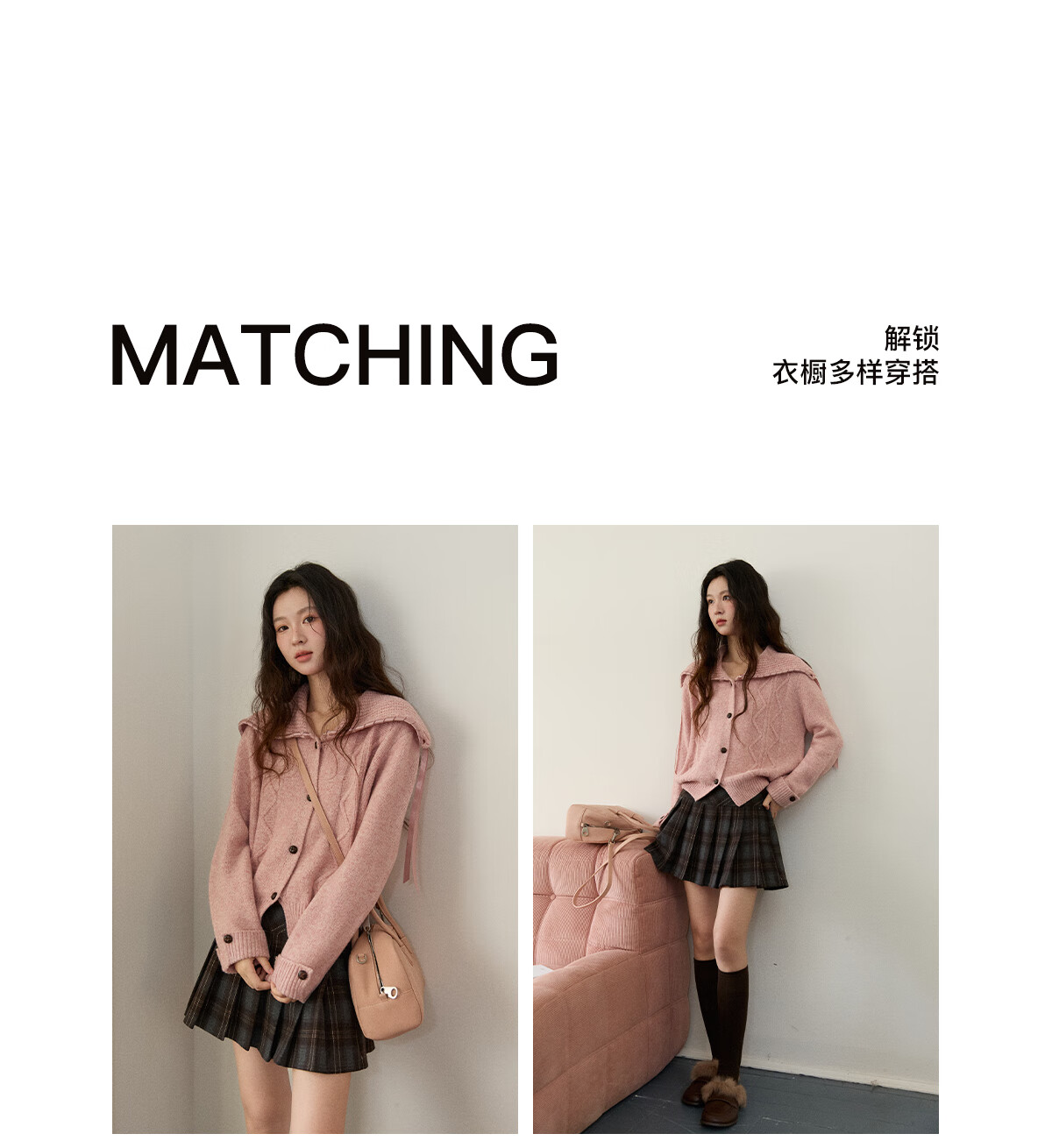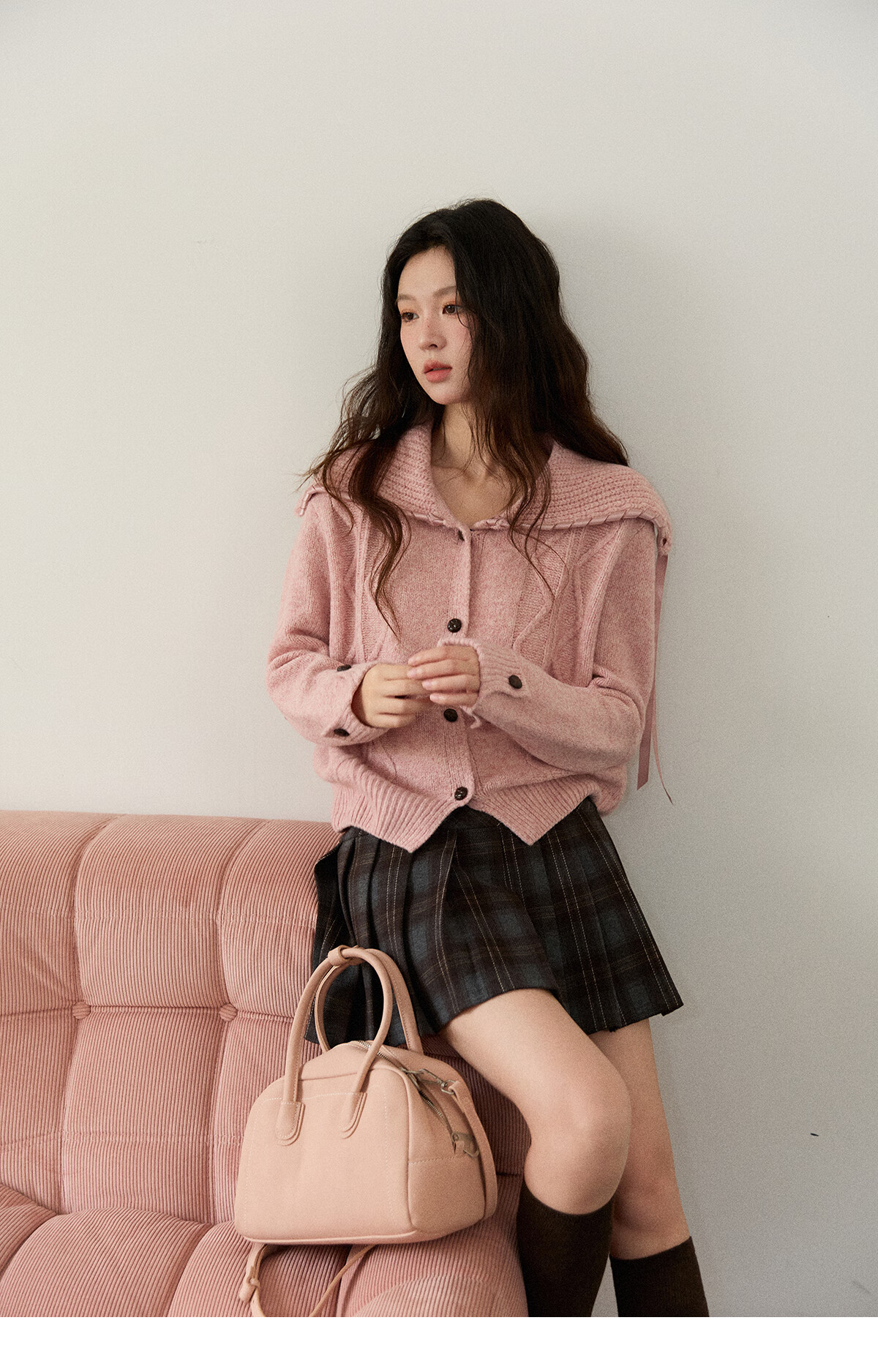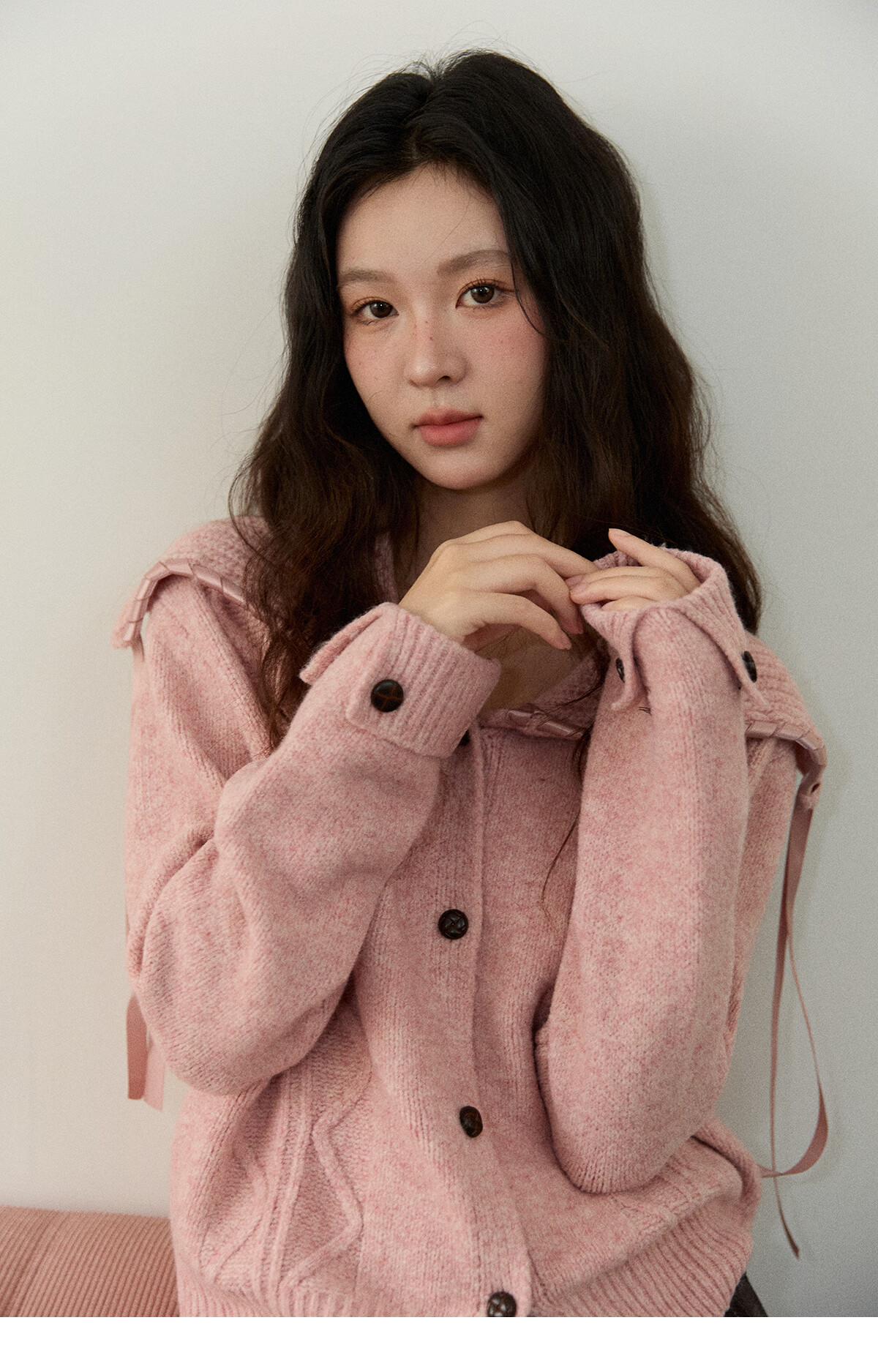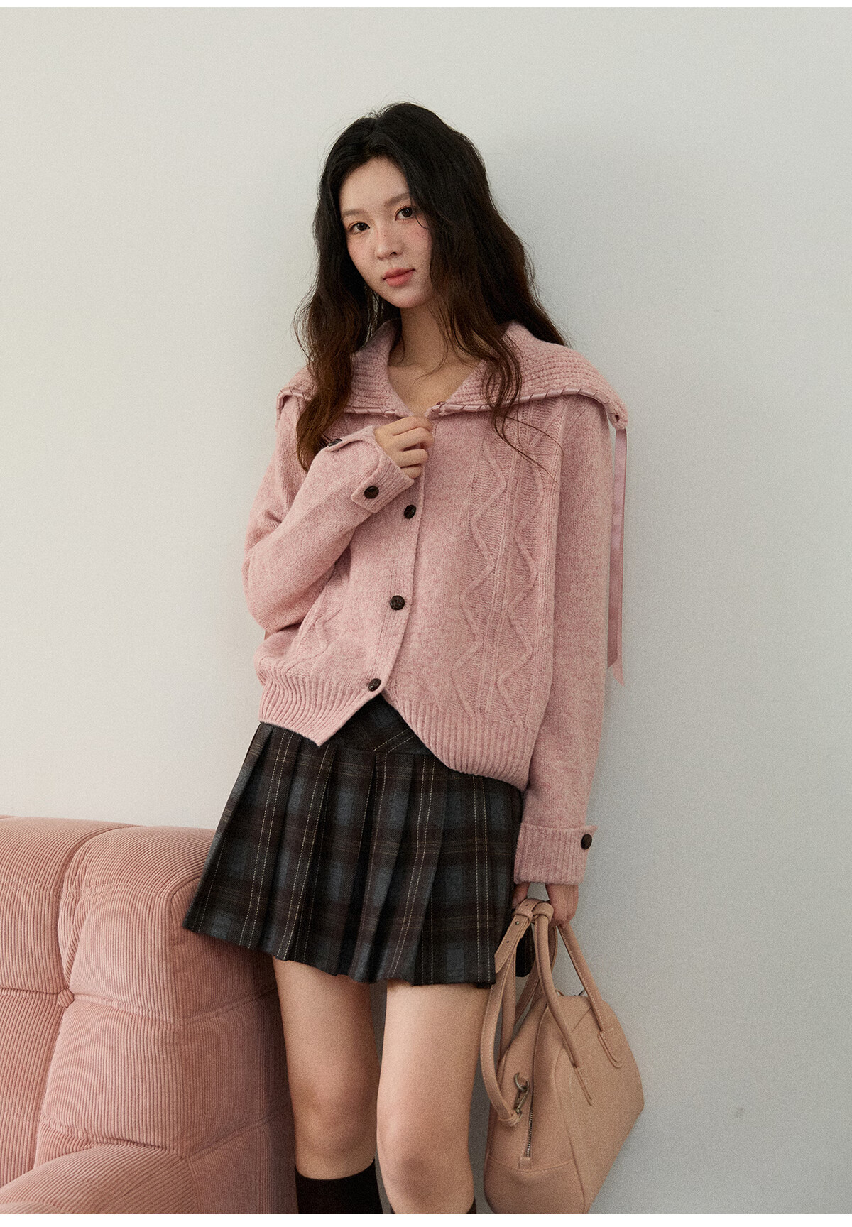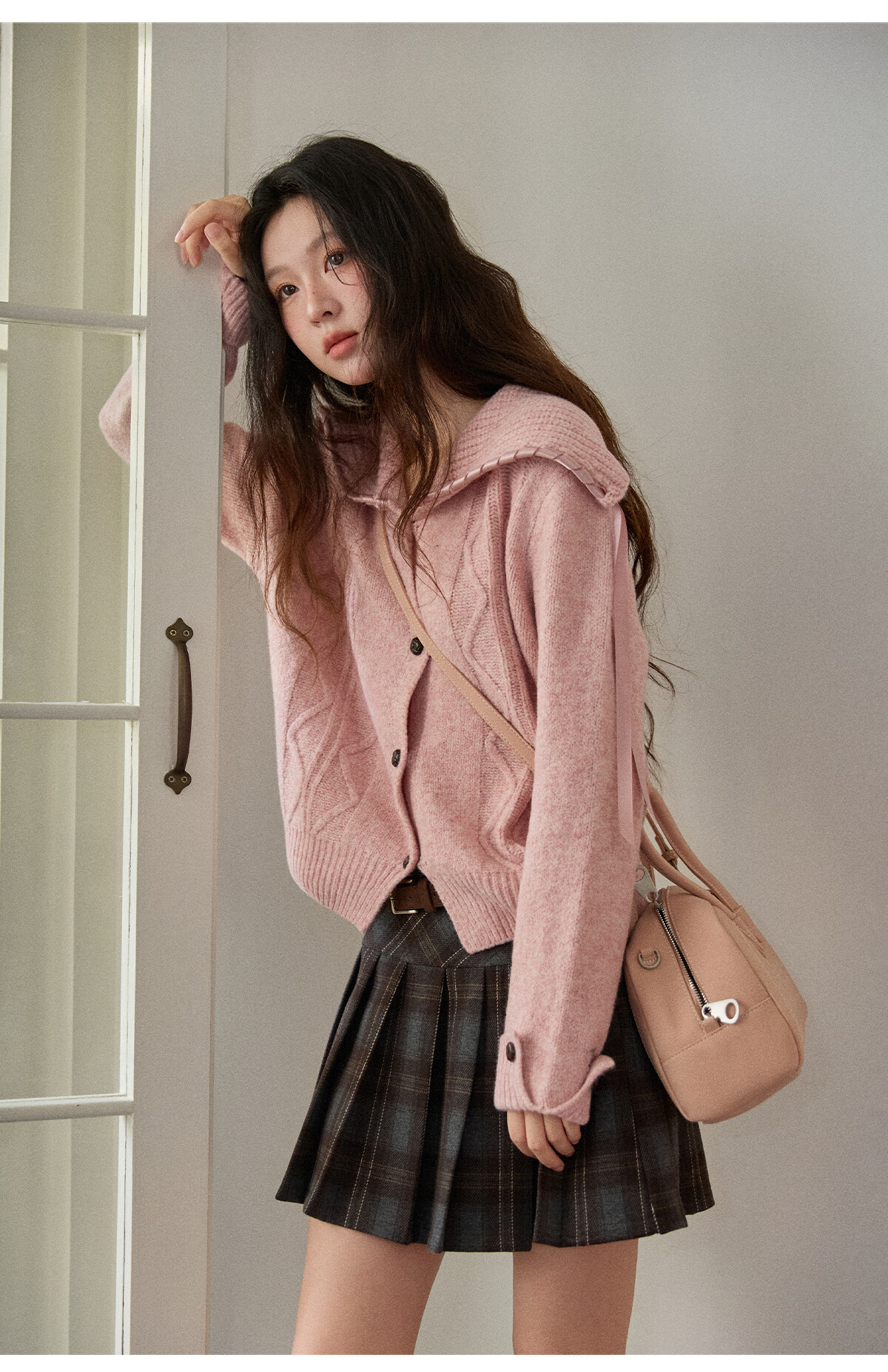 谜秀新年礼遇季大翻领麻花针织开衫秋2025冬复古纽扣宽松慵懒毛衣外套 粉紫色 粉色 M