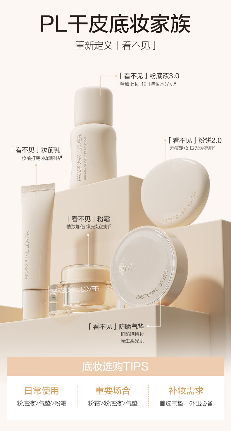 恋火(Passional Lover)【会员试用】PL看不见防晒气垫霜 全色号试色卡小样彩妆小样试用