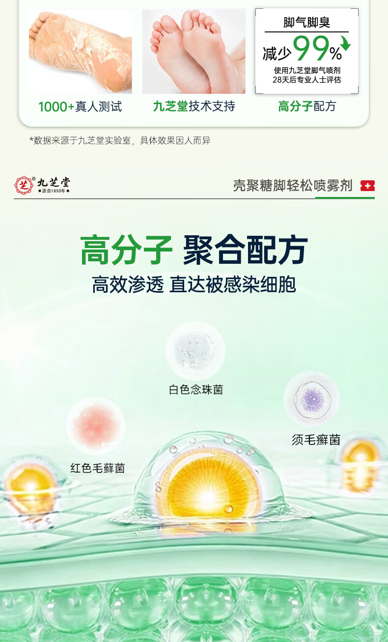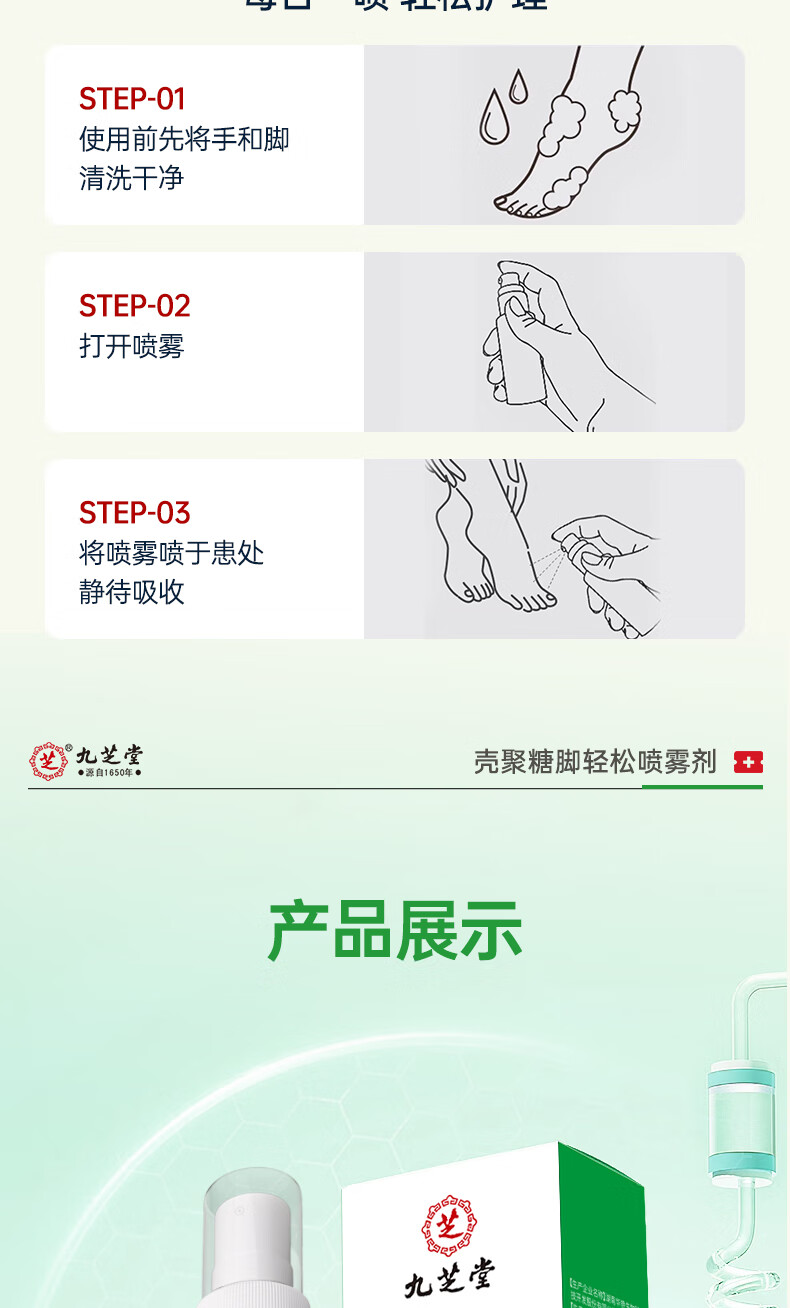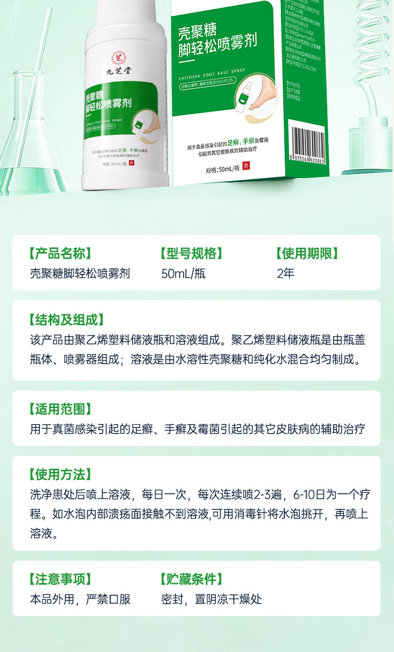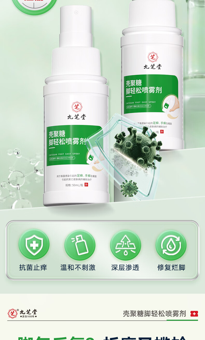 九芝堂壳聚糖脚轻松喷雾剂 脚气止痒脱皮真菌感染杀菌50mL/瓶 1瓶