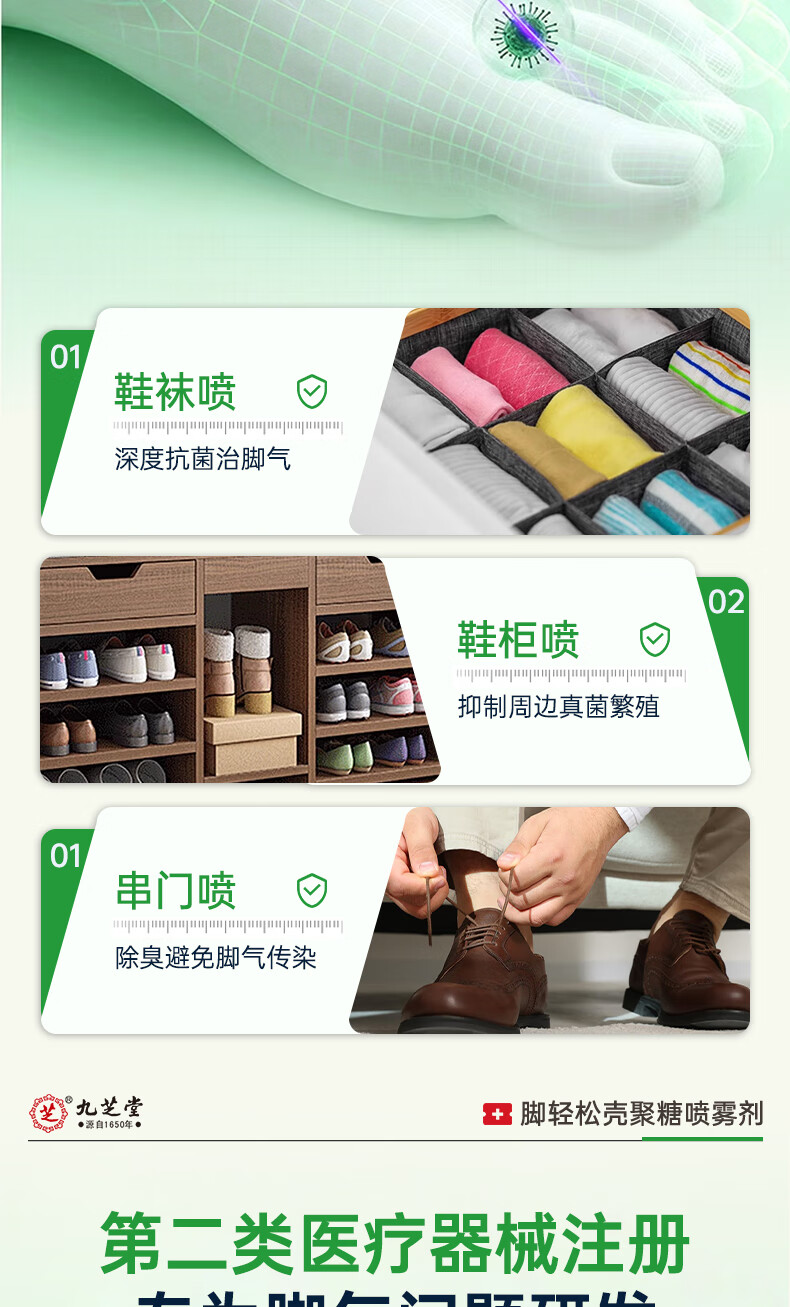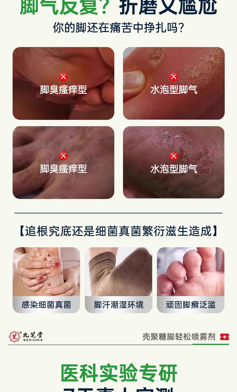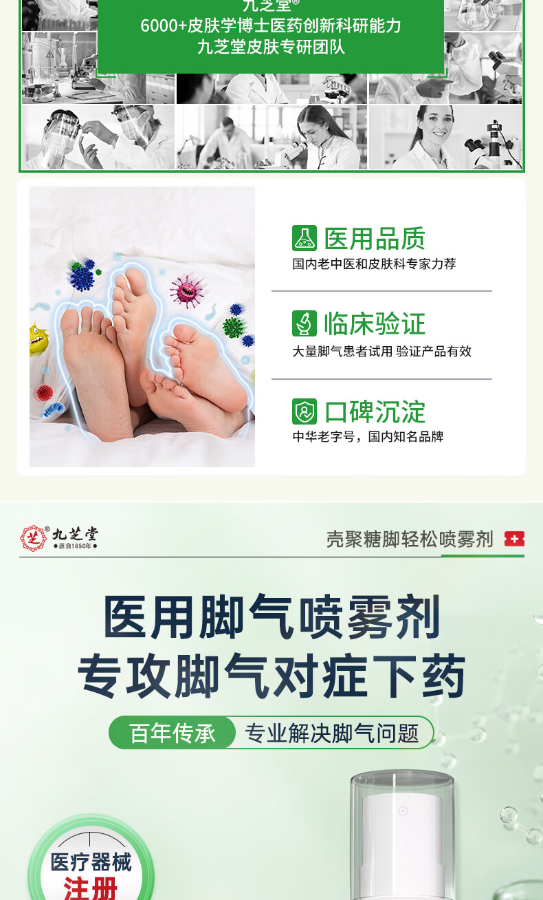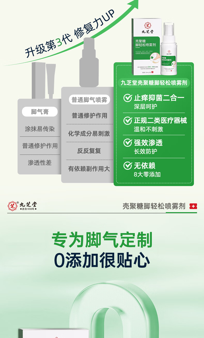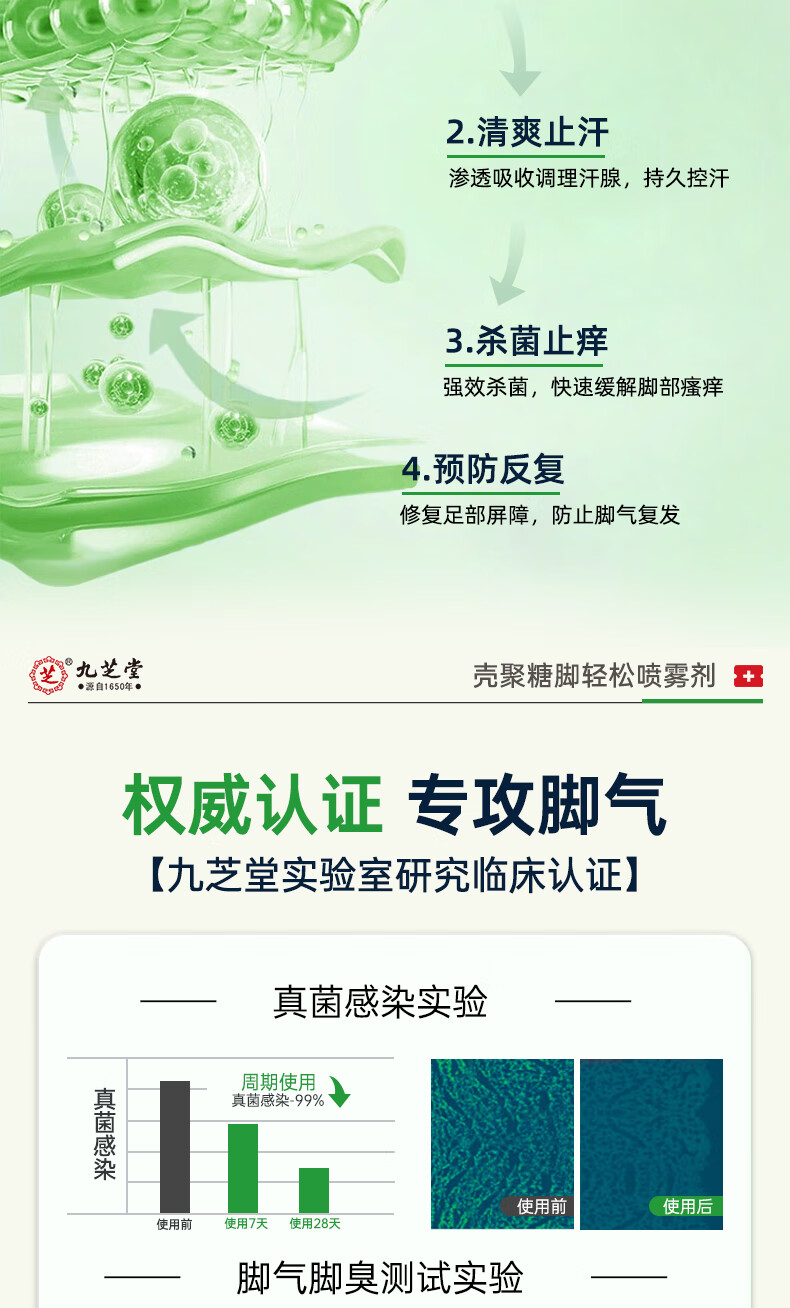 九芝堂壳聚糖脚轻松喷雾剂 脚气止痒脱皮真菌感染杀菌50mL/瓶 1瓶