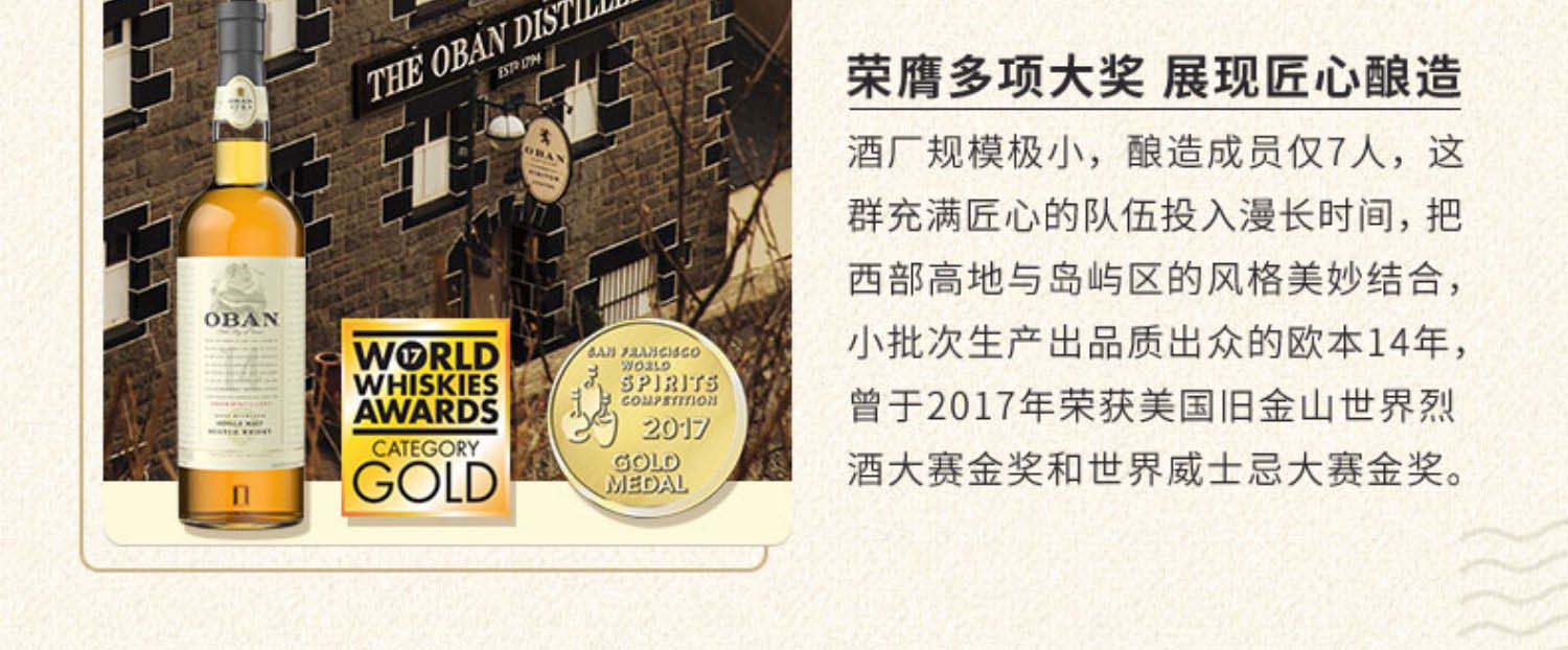 欧本(Oban)14年 单一麦芽威士忌700ml 高地产区进口洋酒