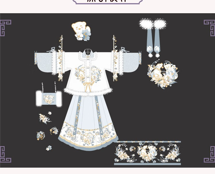 佰惠子 冬季汉服女加厚冬款【白绒熊熊】方领半壁短袄马面裙仙气套装 外袄+里衣+下裙+毛领 S