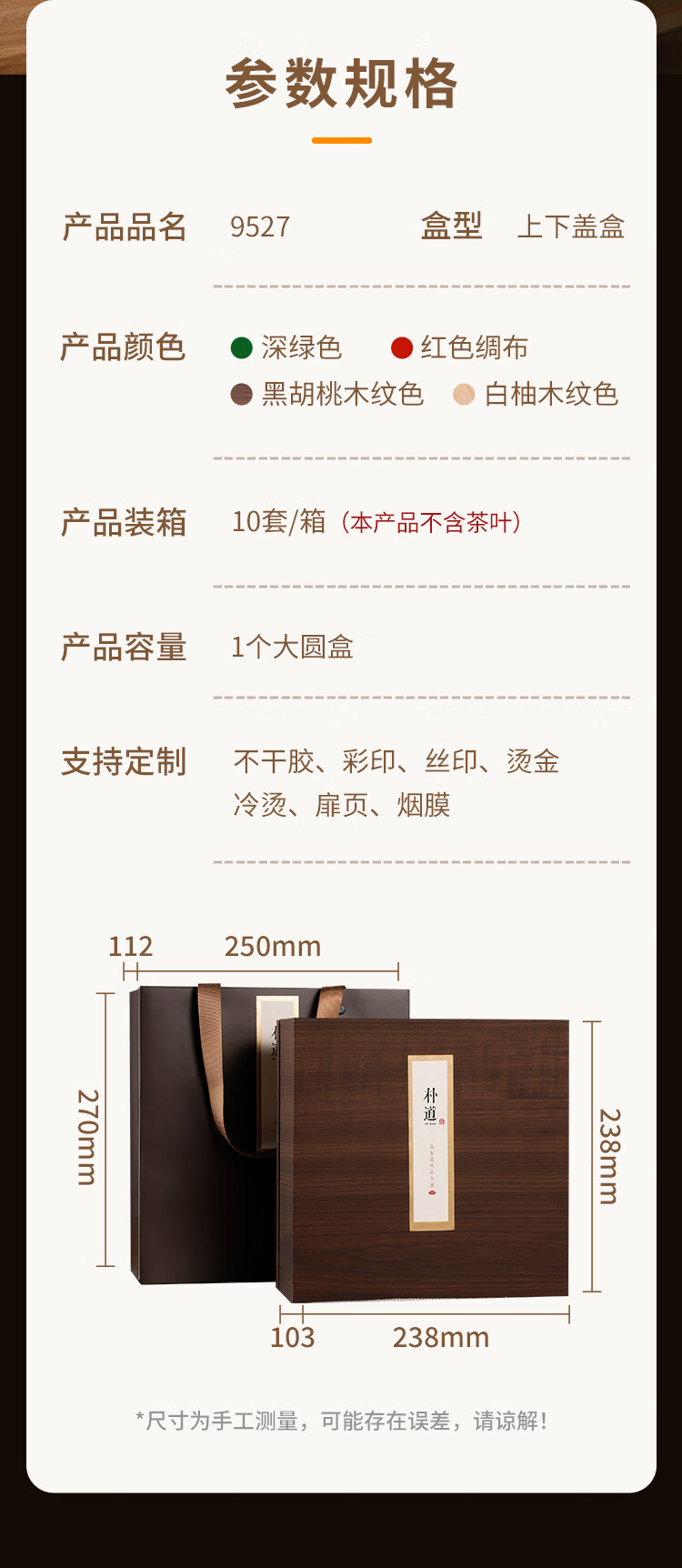 创京懿选陈皮包装盒空礼盒新会陈皮包装盒空礼盒150g定制陈皮干滋补品燕窝 9527-黑胡桃木纹-空白盒-1大圆盒 版面可定制