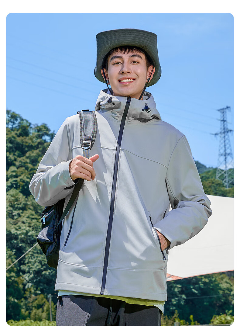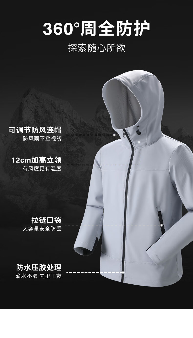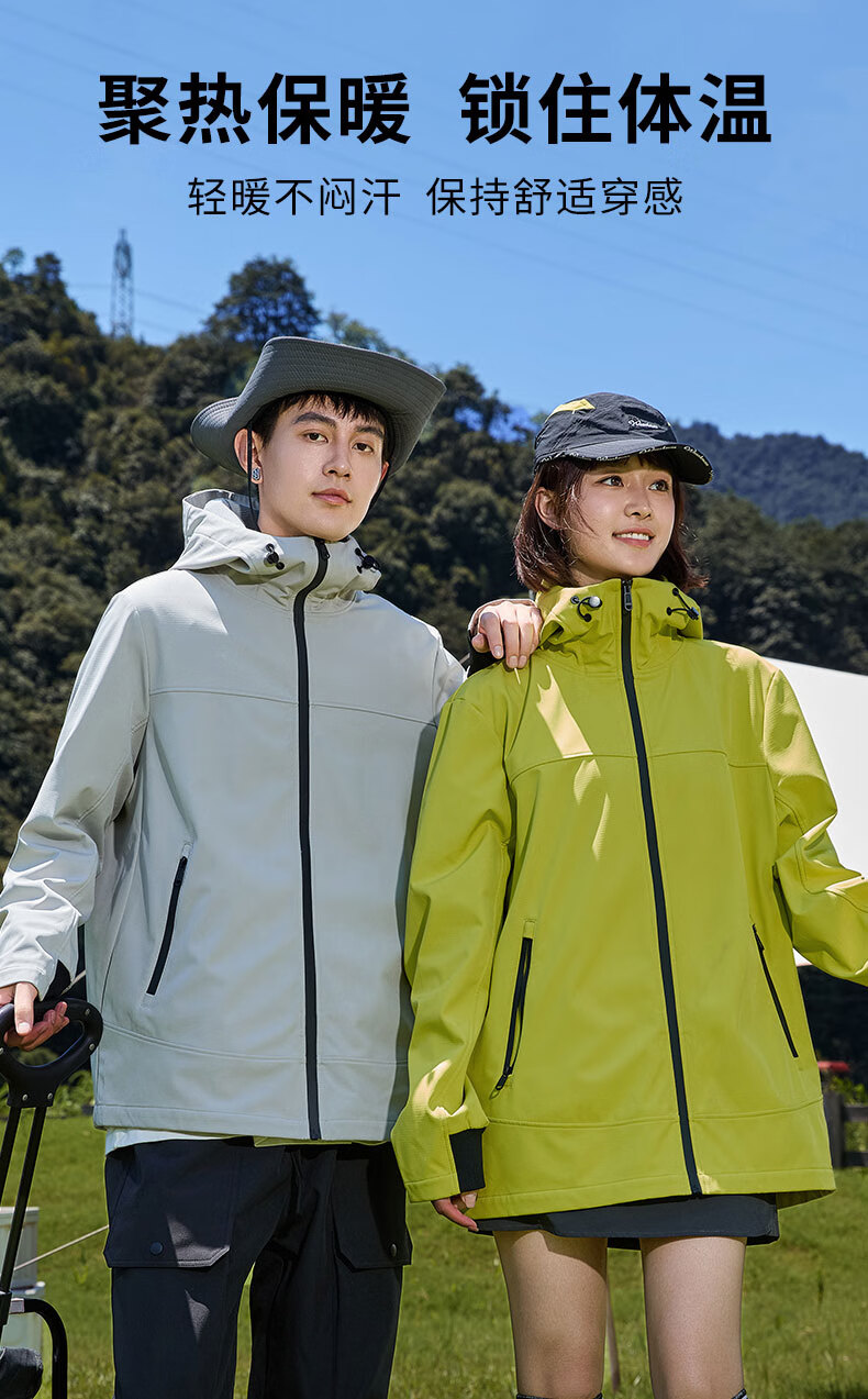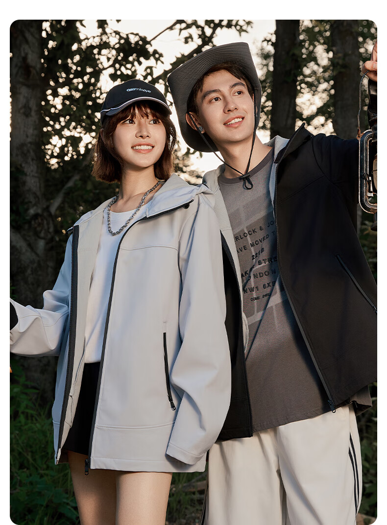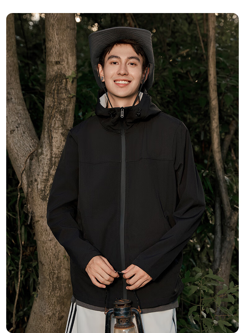 班尼路S&K系列秋冬季冲锋夹克男士舒适透气纯色系户外旅行三效合一外套 【防风性】-黑#纯色 3XL