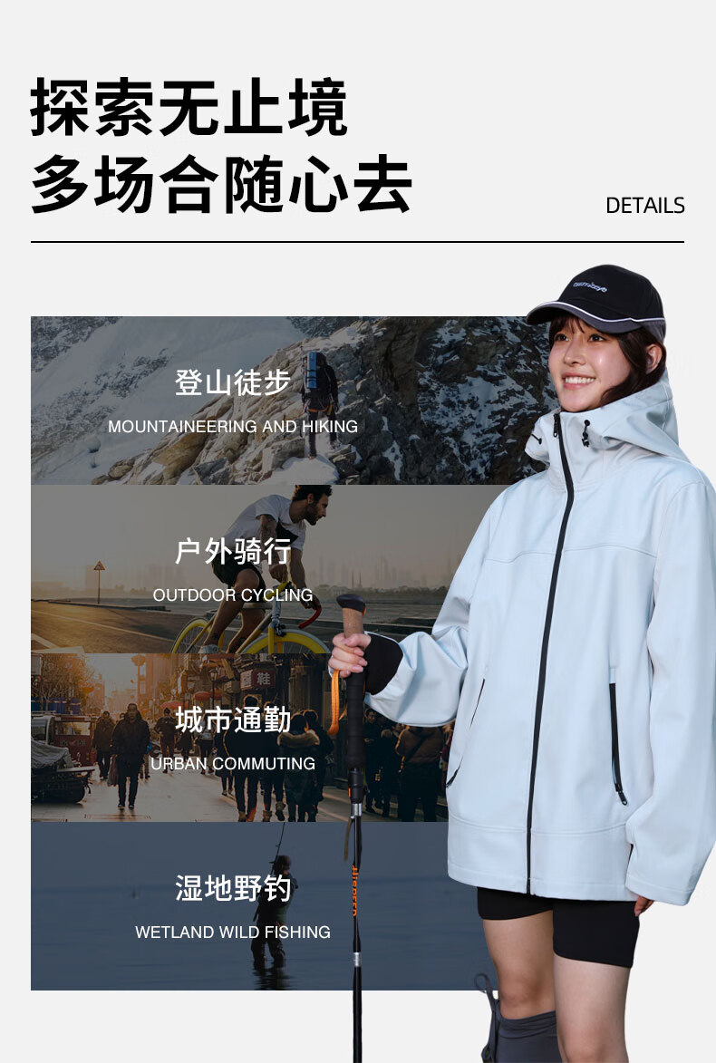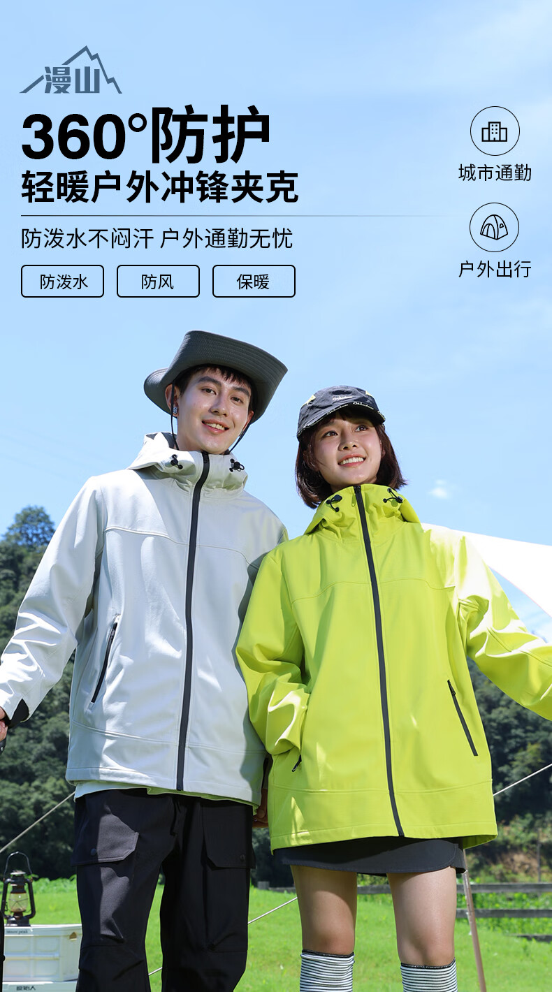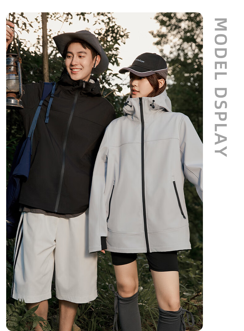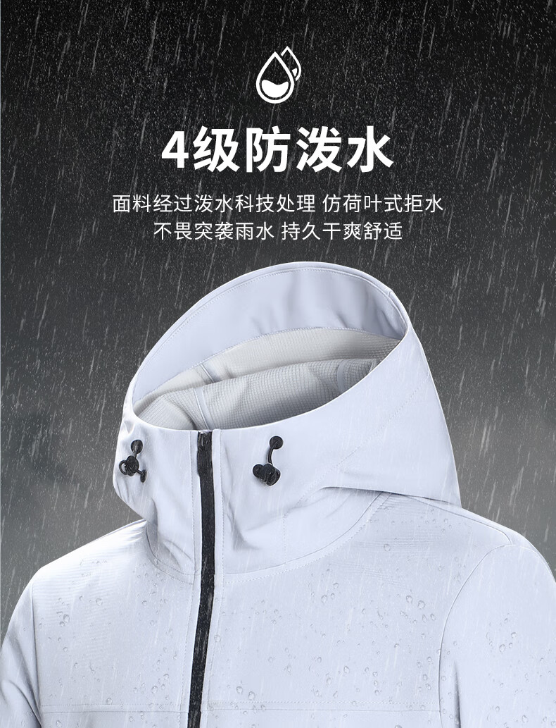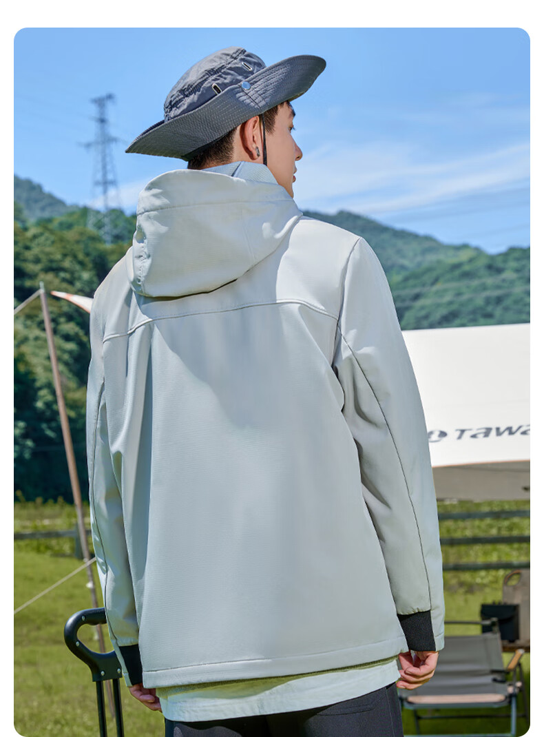 班尼路S&K系列秋冬季冲锋夹克男士舒适透气纯色系户外旅行三效合一外套 【防风性】-黑#纯色 3XL