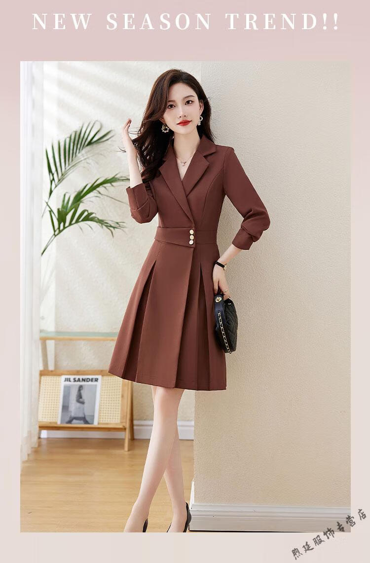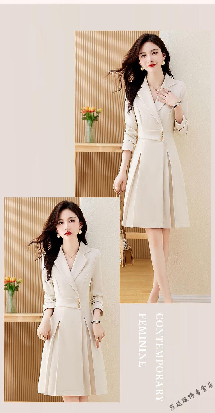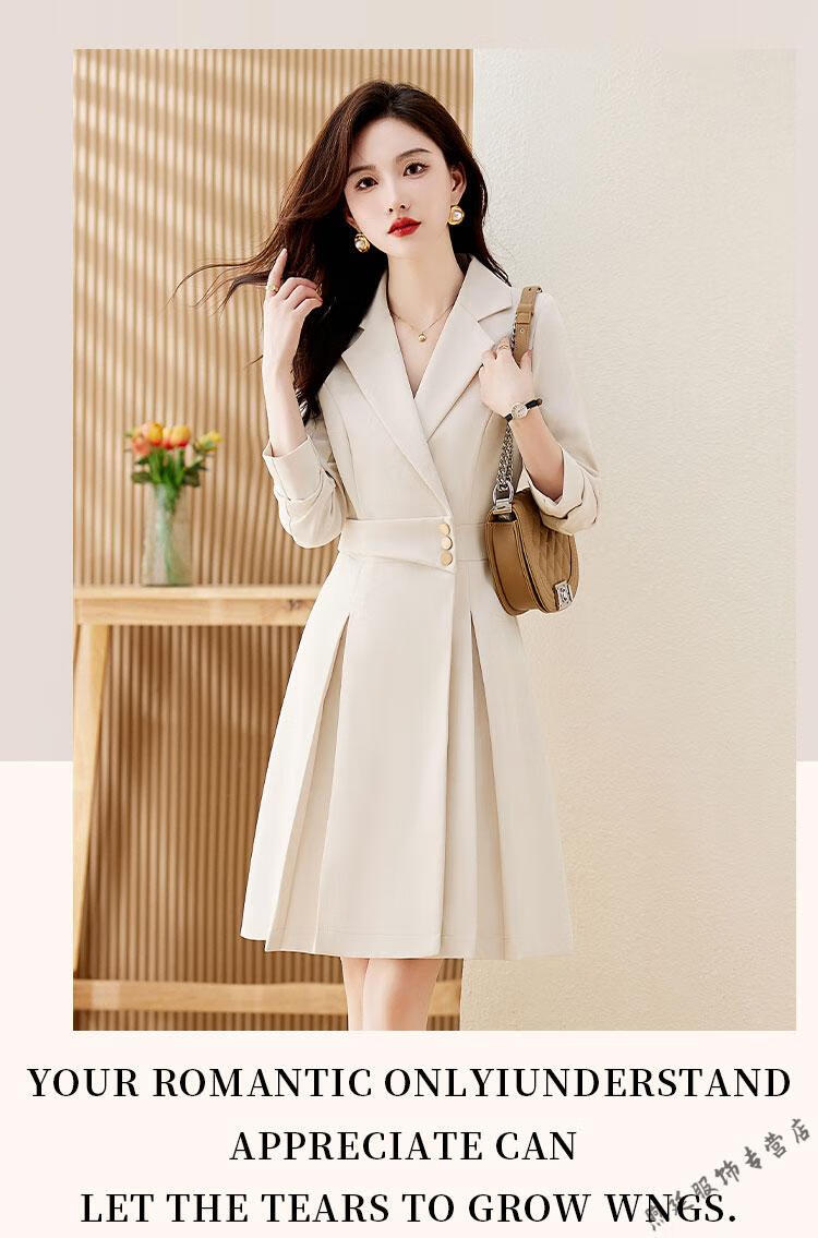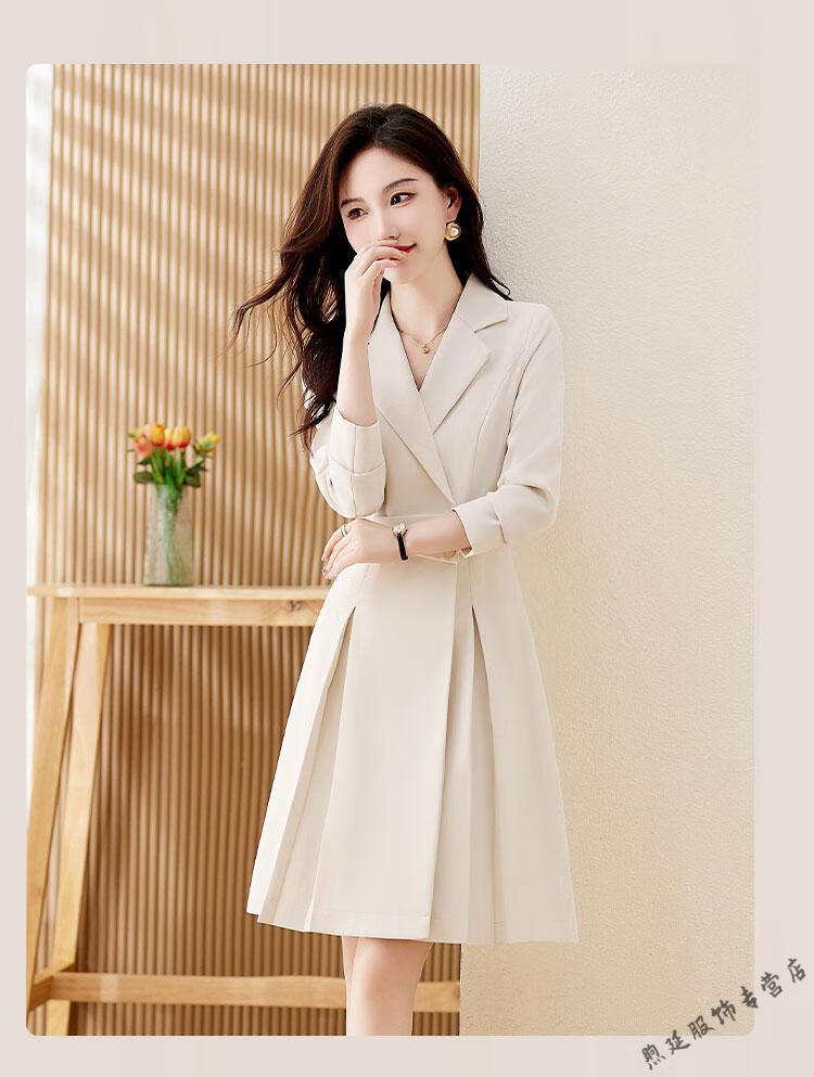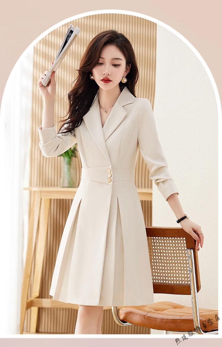 啄木鸟(TUCANO)西装连衣裙女小个子春秋款感气质名媛长袖修身职业装裙子25新款 米色 M