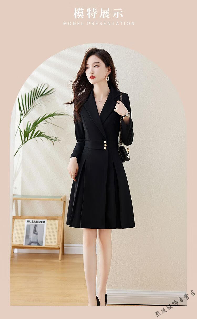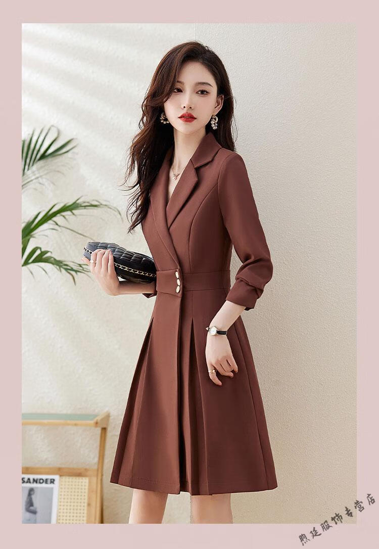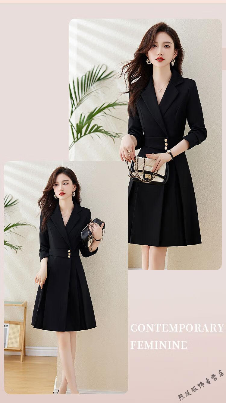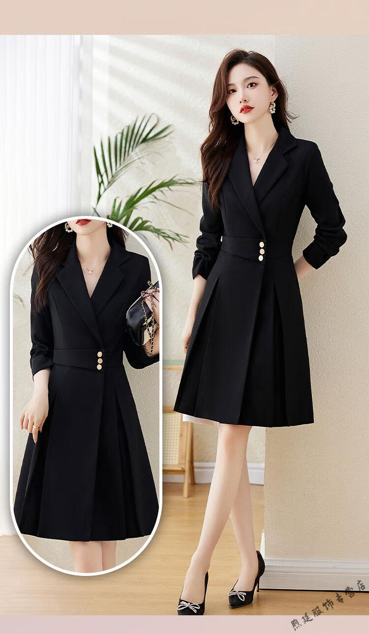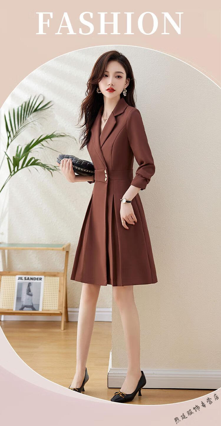 啄木鸟(TUCANO)西装连衣裙女小个子春秋款感气质名媛长袖修身职业装裙子25新款 米色 M